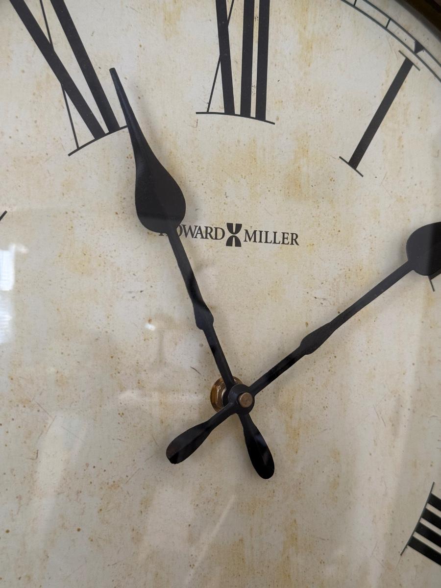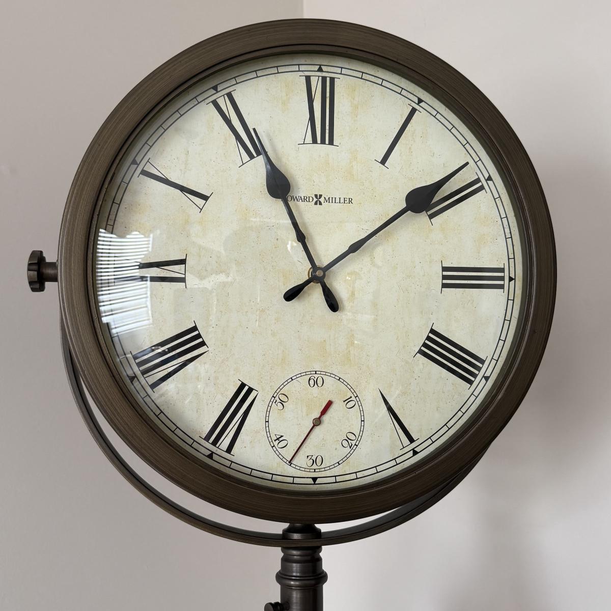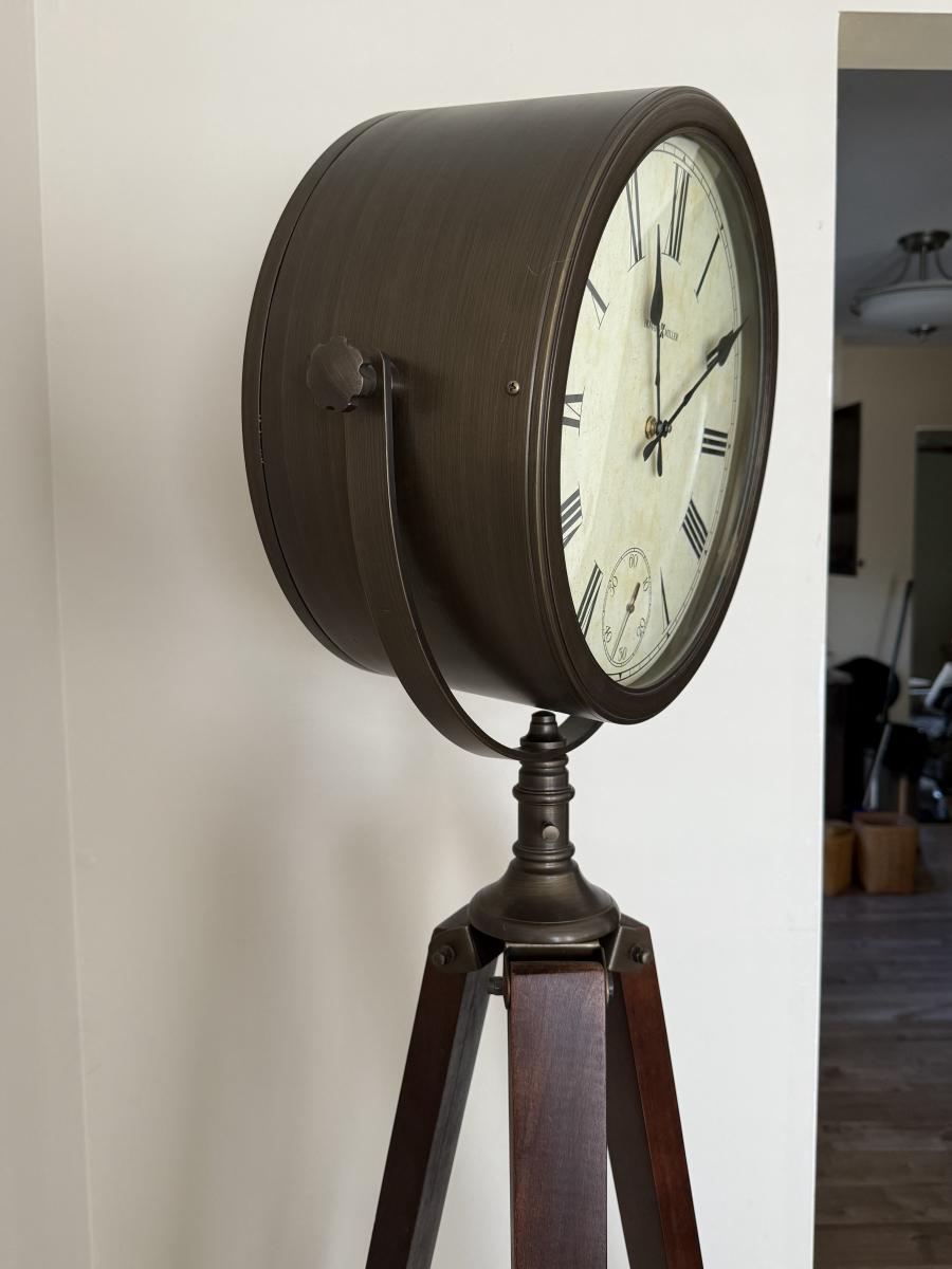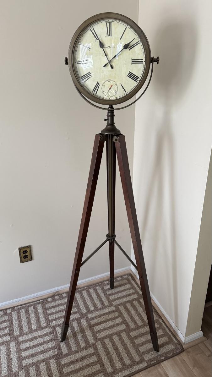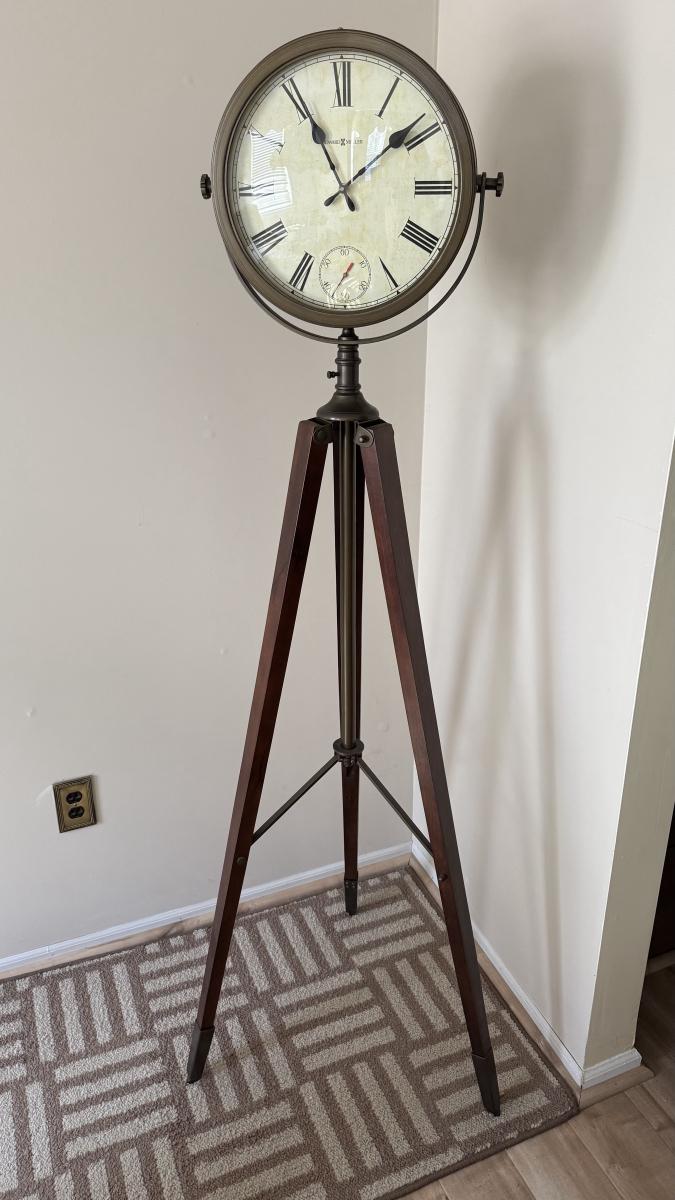 LOT 19D: Howard Miller Surveyor Rustic Cherry Tripod Floor Clock w/ Original Box (70.5")