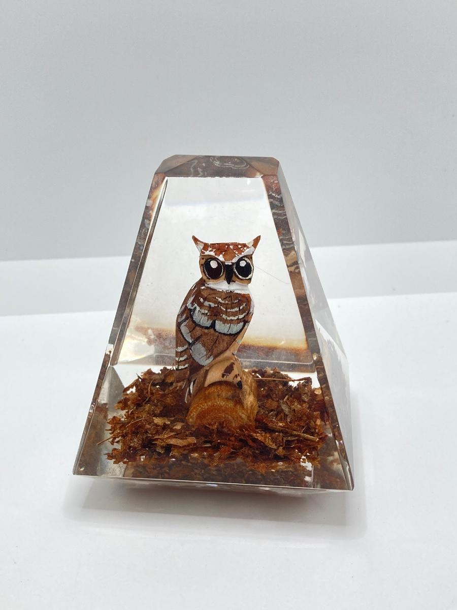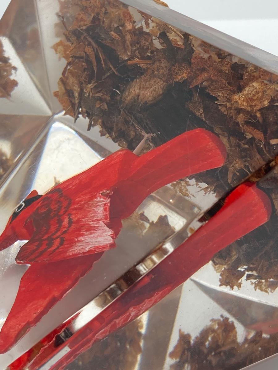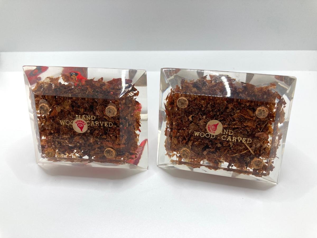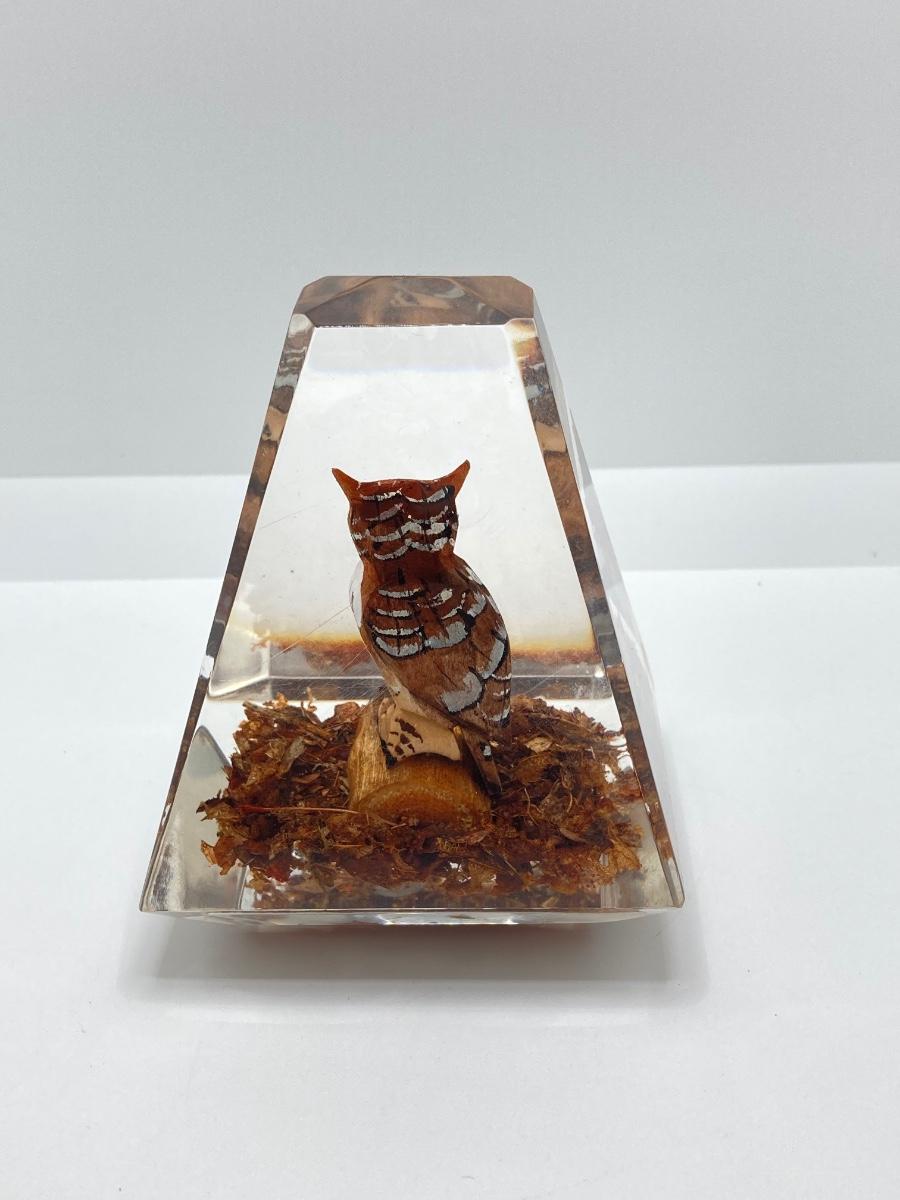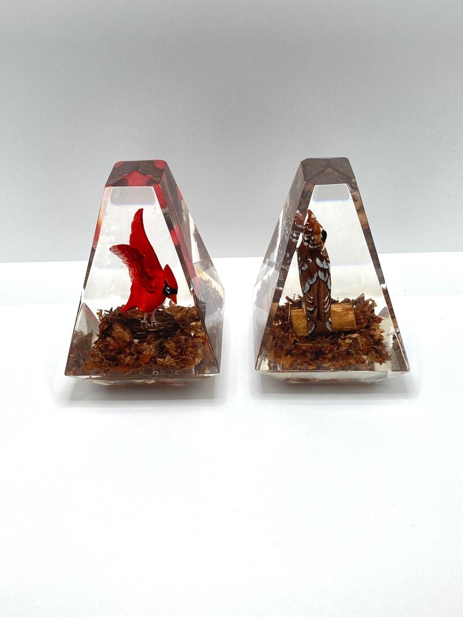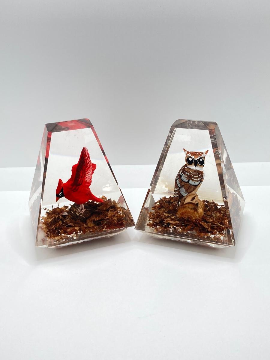 LOT 45K: Hand Carved Wooden Cardinal and Owl Lucite (Made in Canada) Paperweights