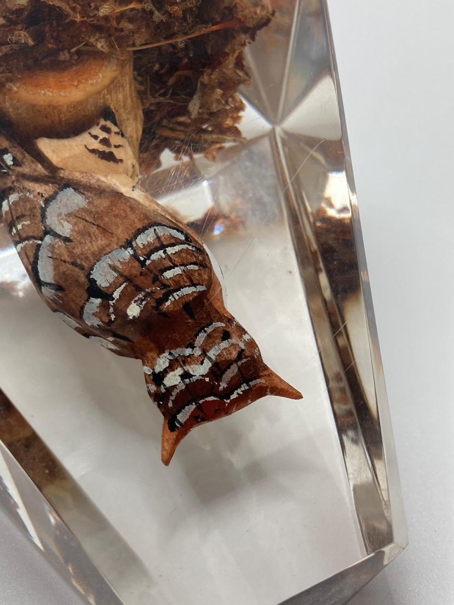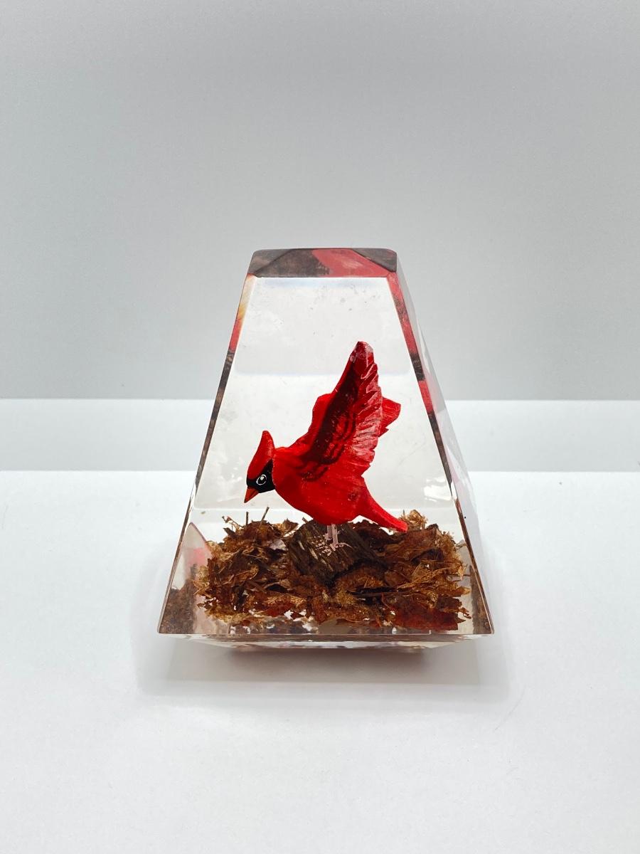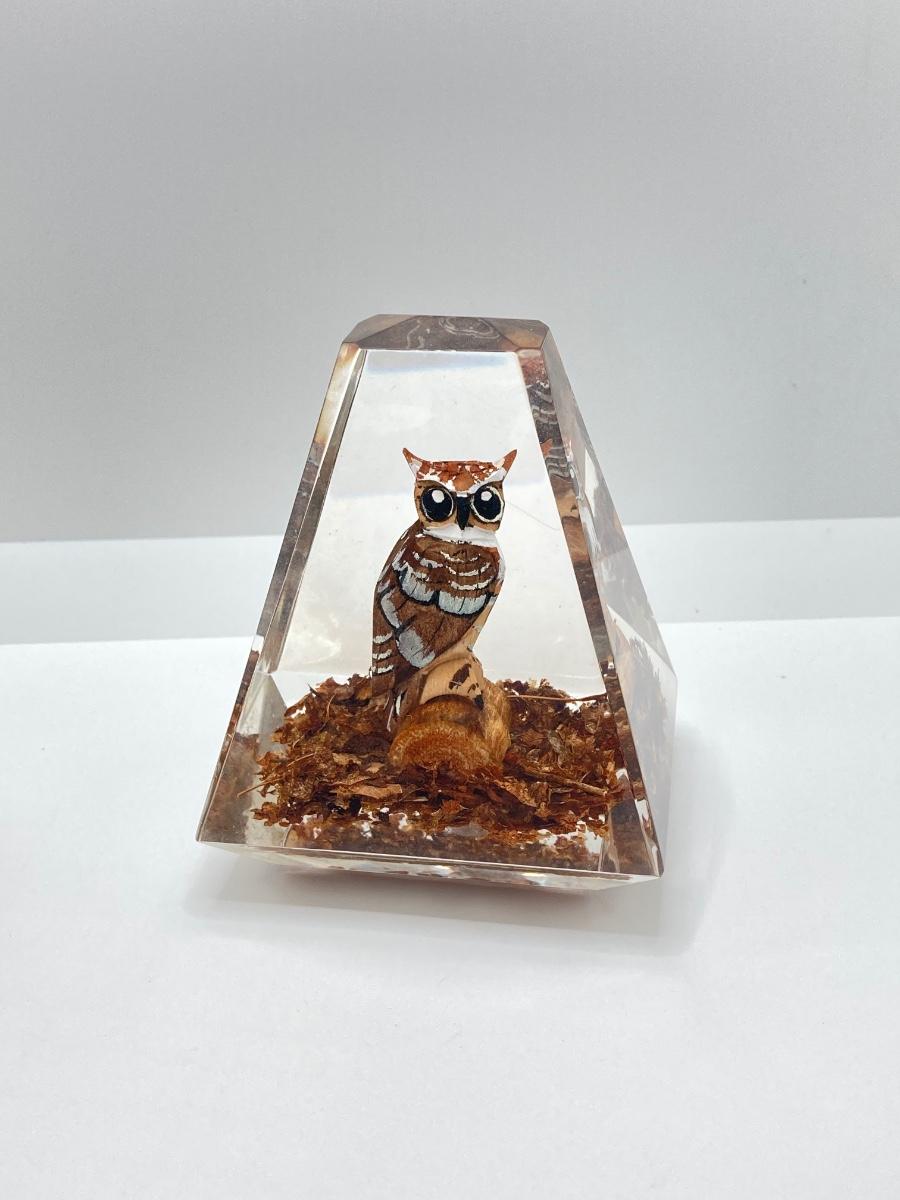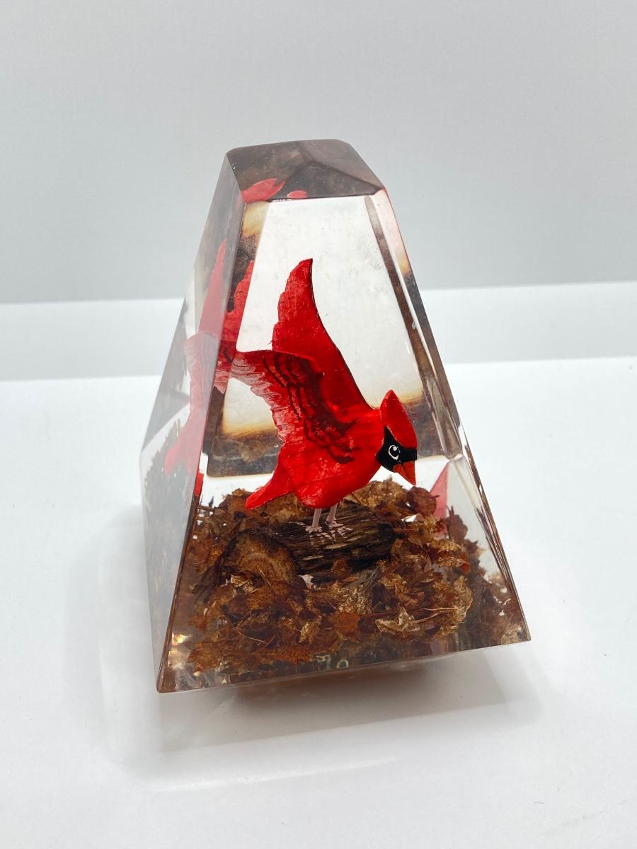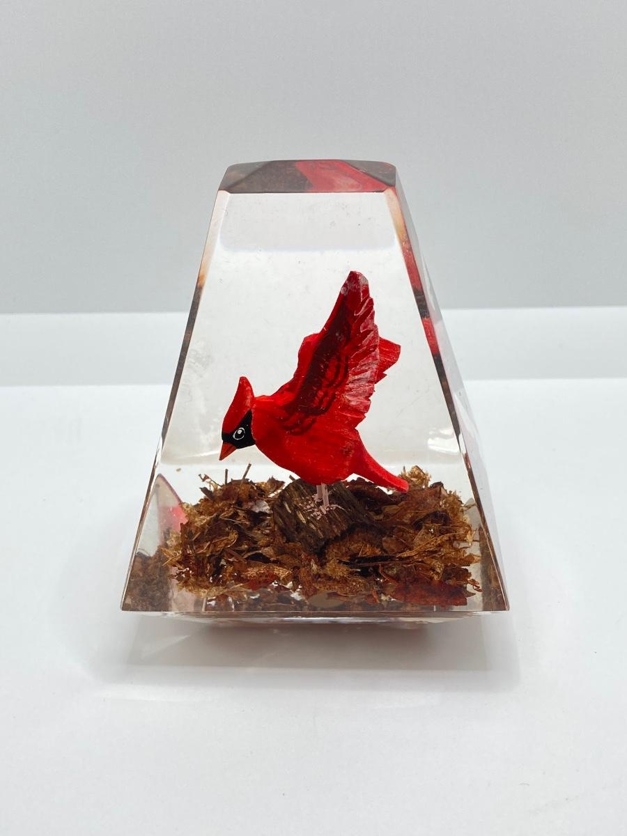 LOT 45K: Hand Carved Wooden Cardinal and Owl Lucite (Made in Canada) Paperweights