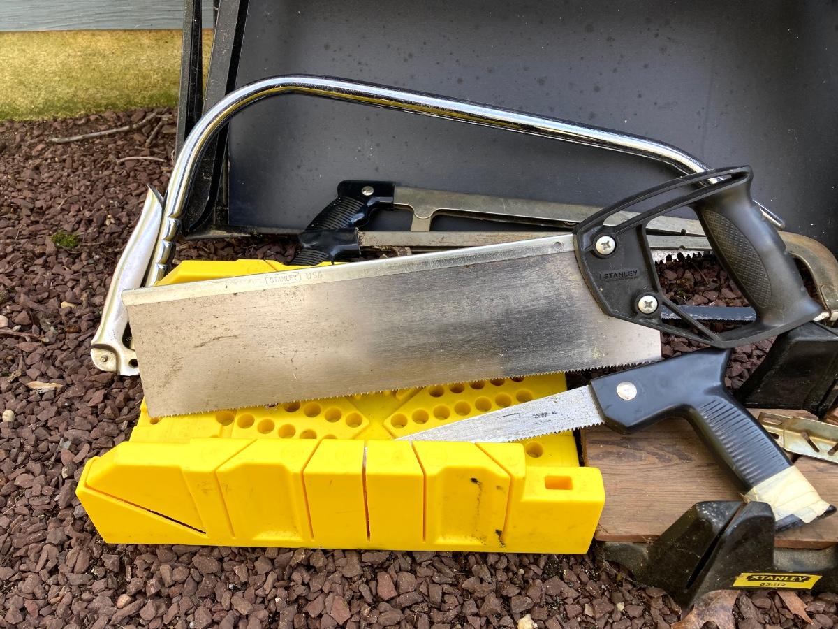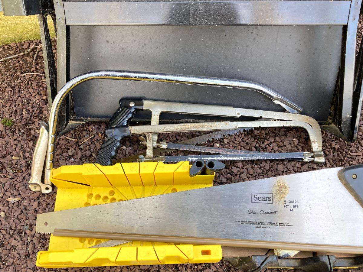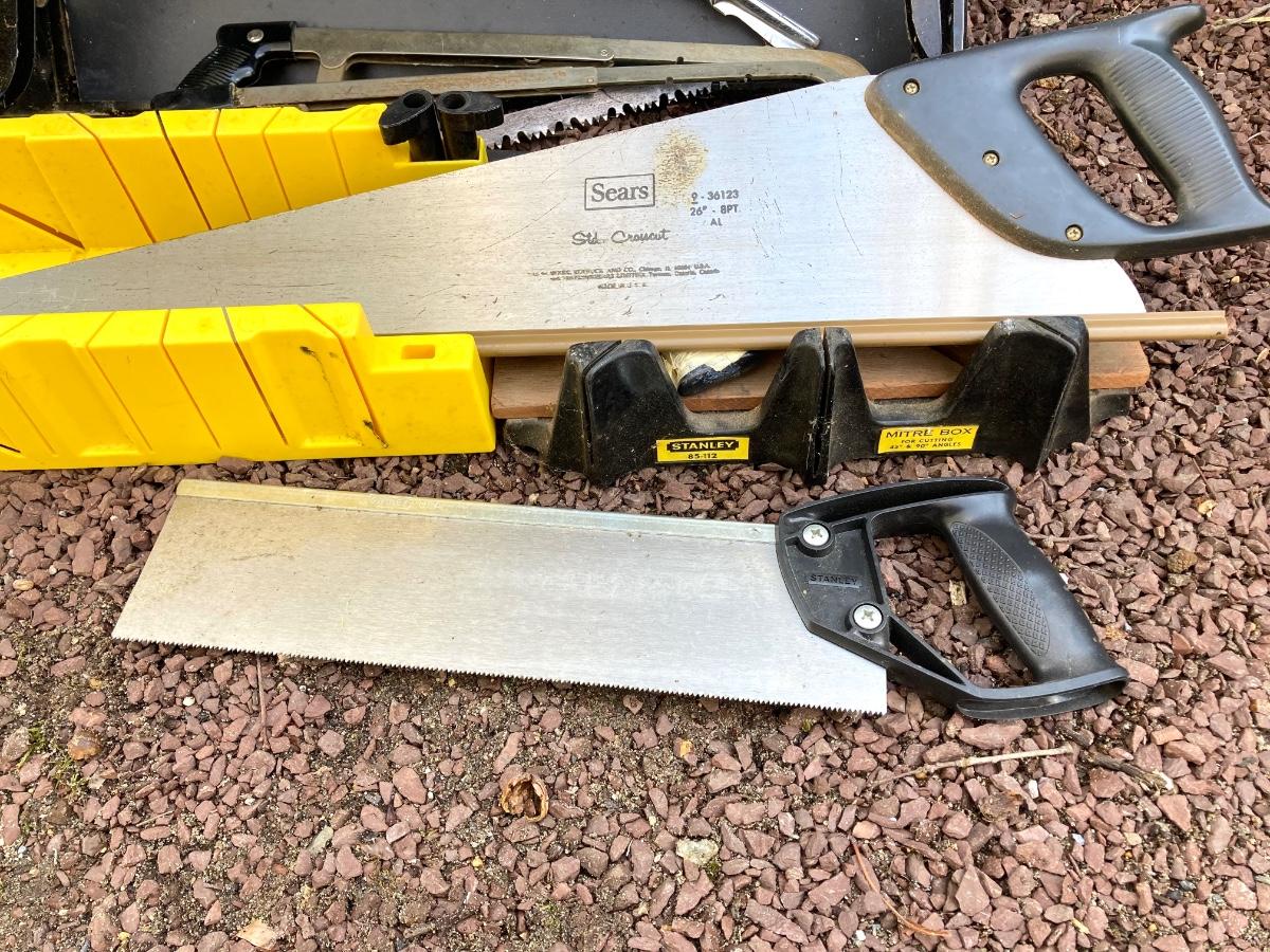LOT 47G: Black & Decker 400 Workmate Work Bench, Miter Boxes and Assorted Hand Saws