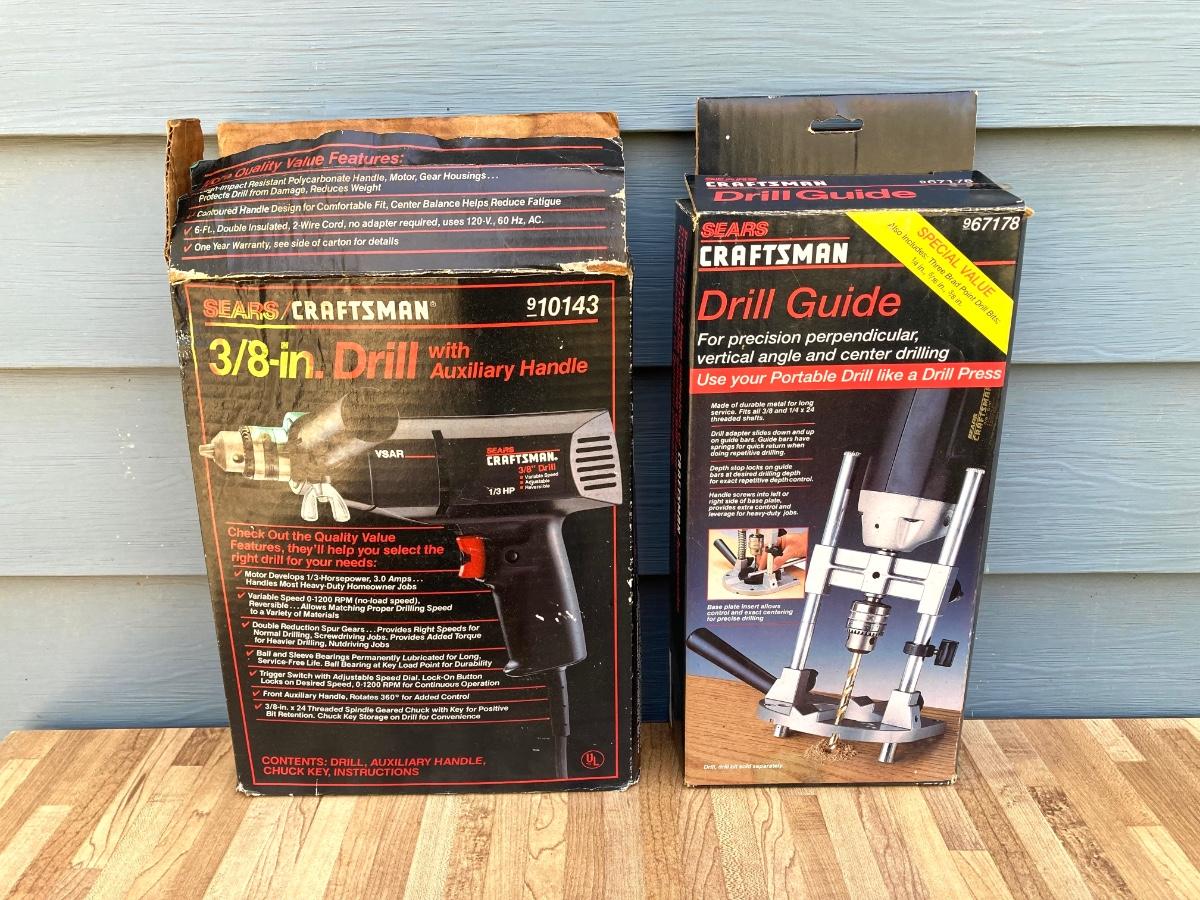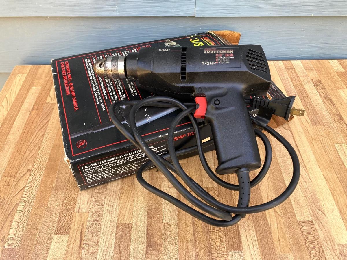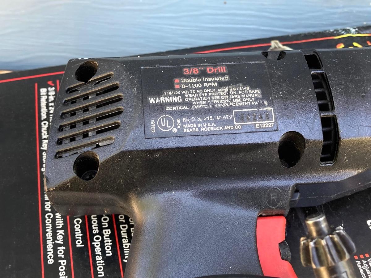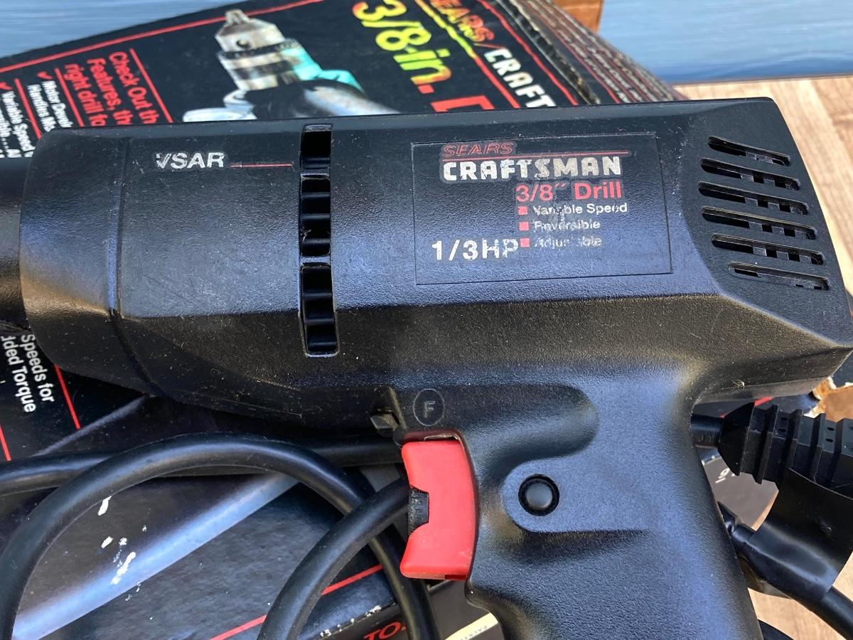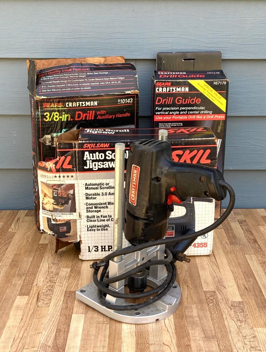 LOT 55G: Craftsman Electric Drill Model # 315.11441, Sear, Roebuck & Co 3/8" Drill, Drill Guide and Skil Auto Scroll Jig Saw 4355