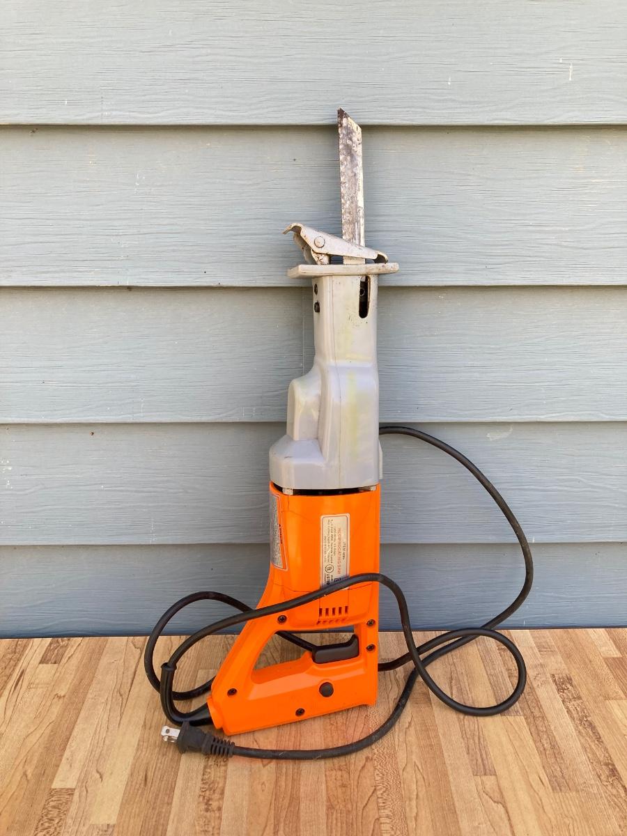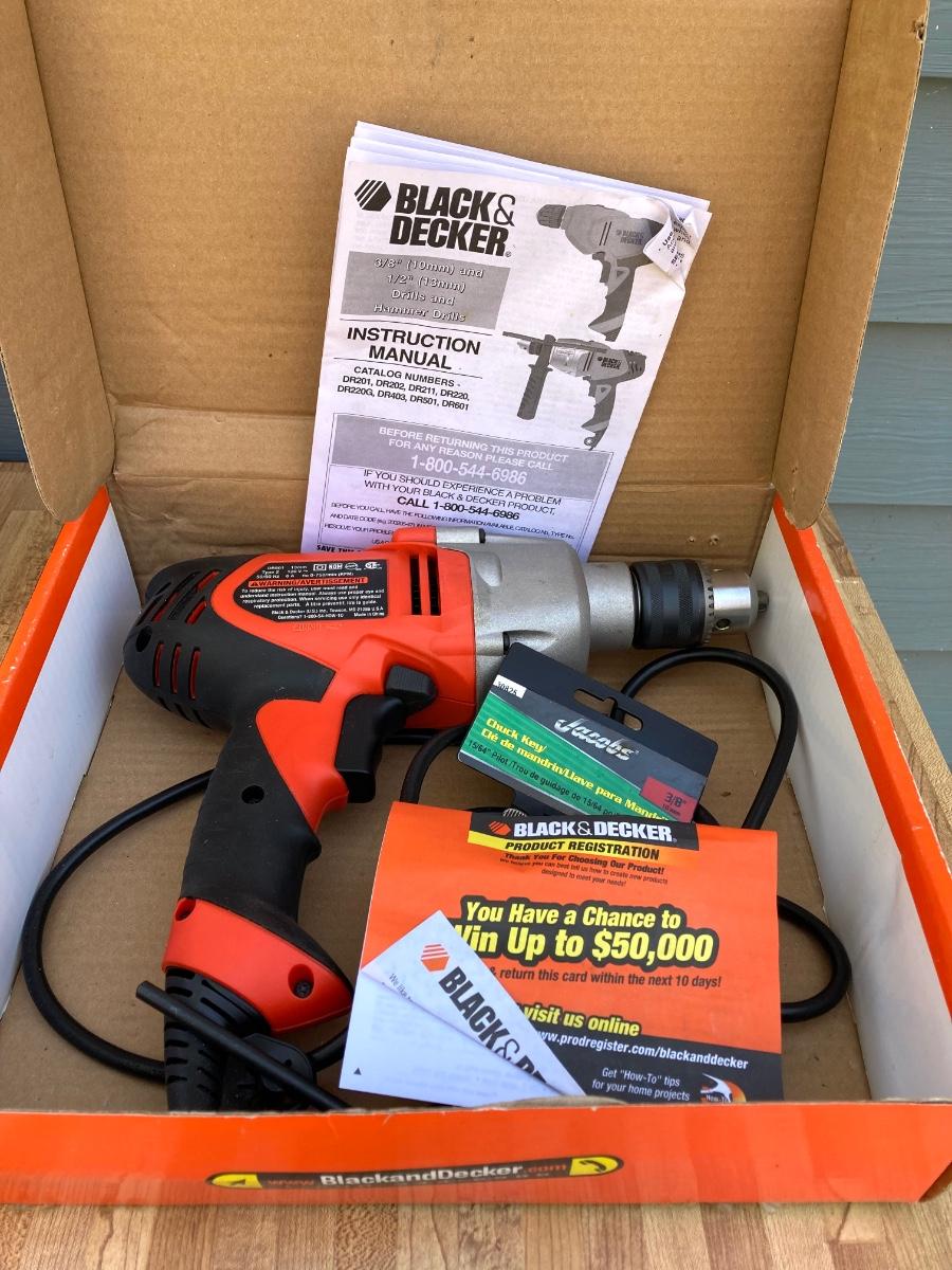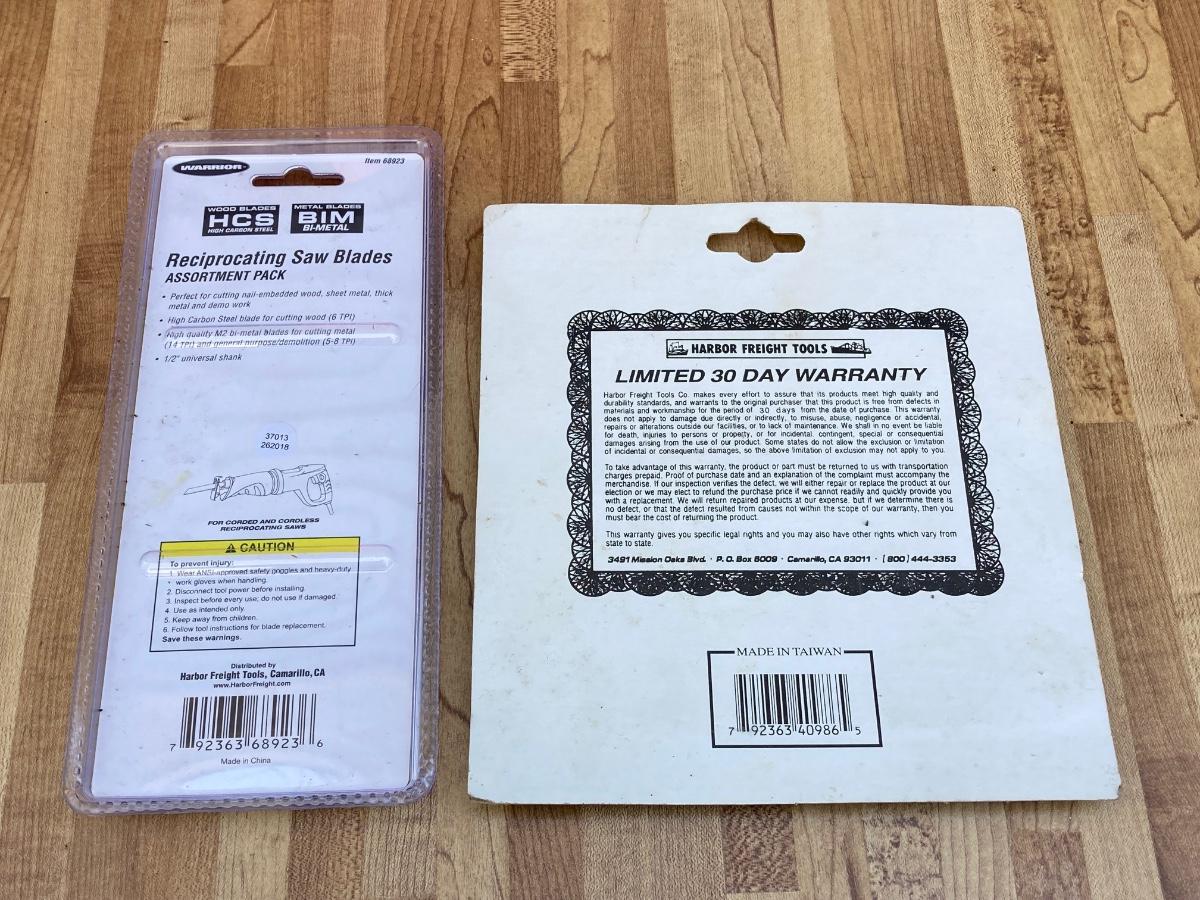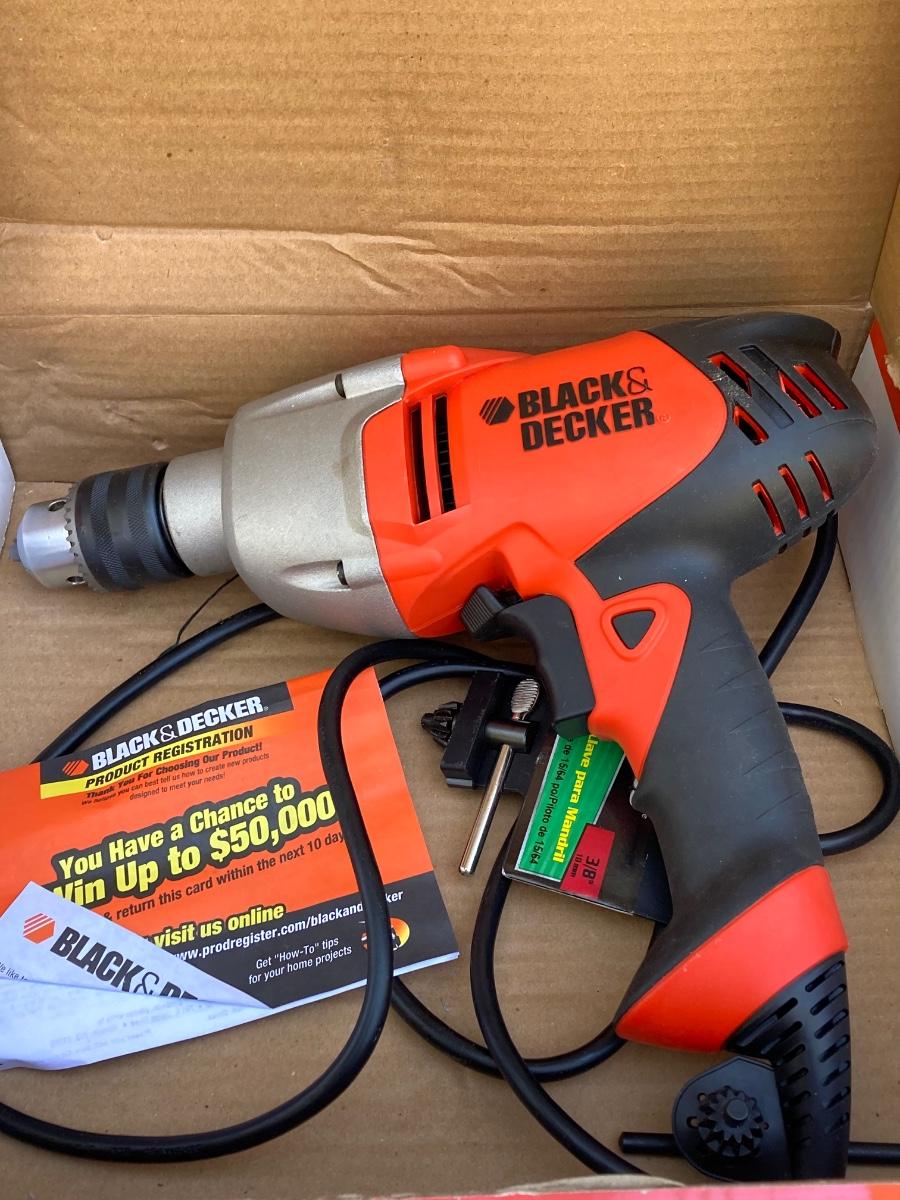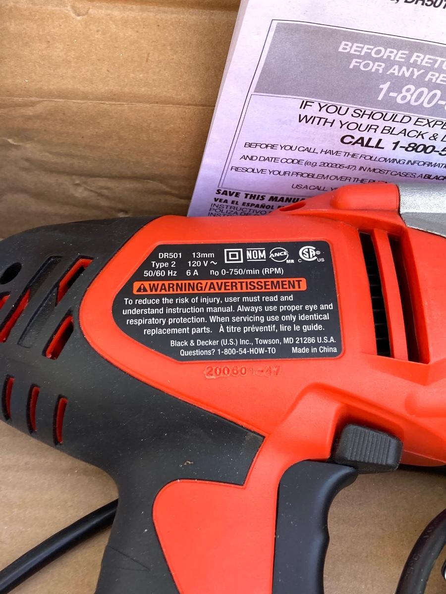 LOT 59G: Black & Decker Drill / Driver DR501 in Original Box, Chicago Reciprocating Saw Item 4095 and Packages of Saw Blades