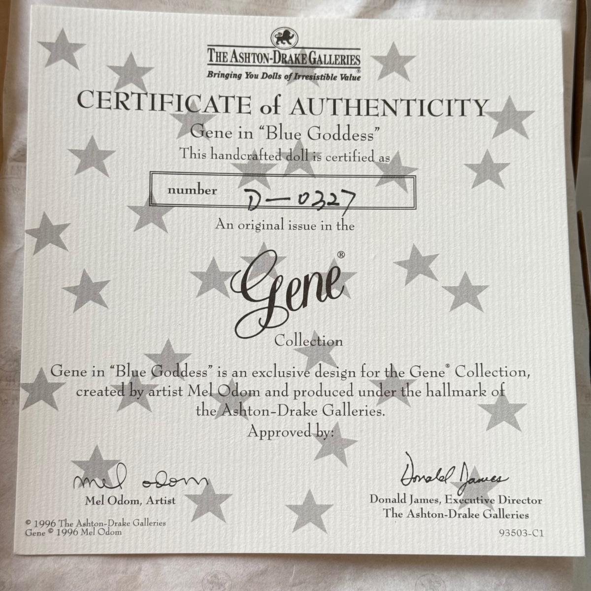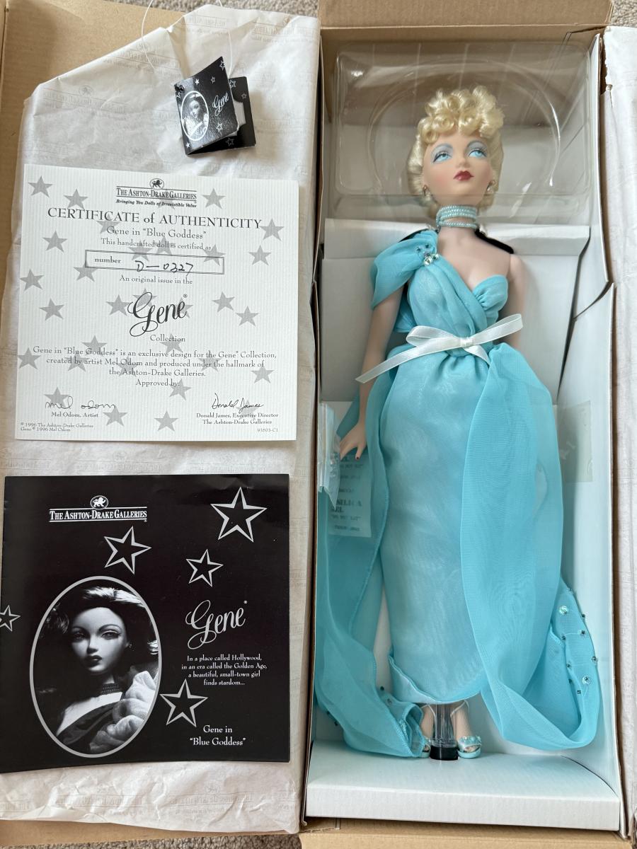LOT 64L: Ashton-Drake Galleries Mel Odom Gene "Blue Goddess" Doll w/ COA & Box (D-0327)