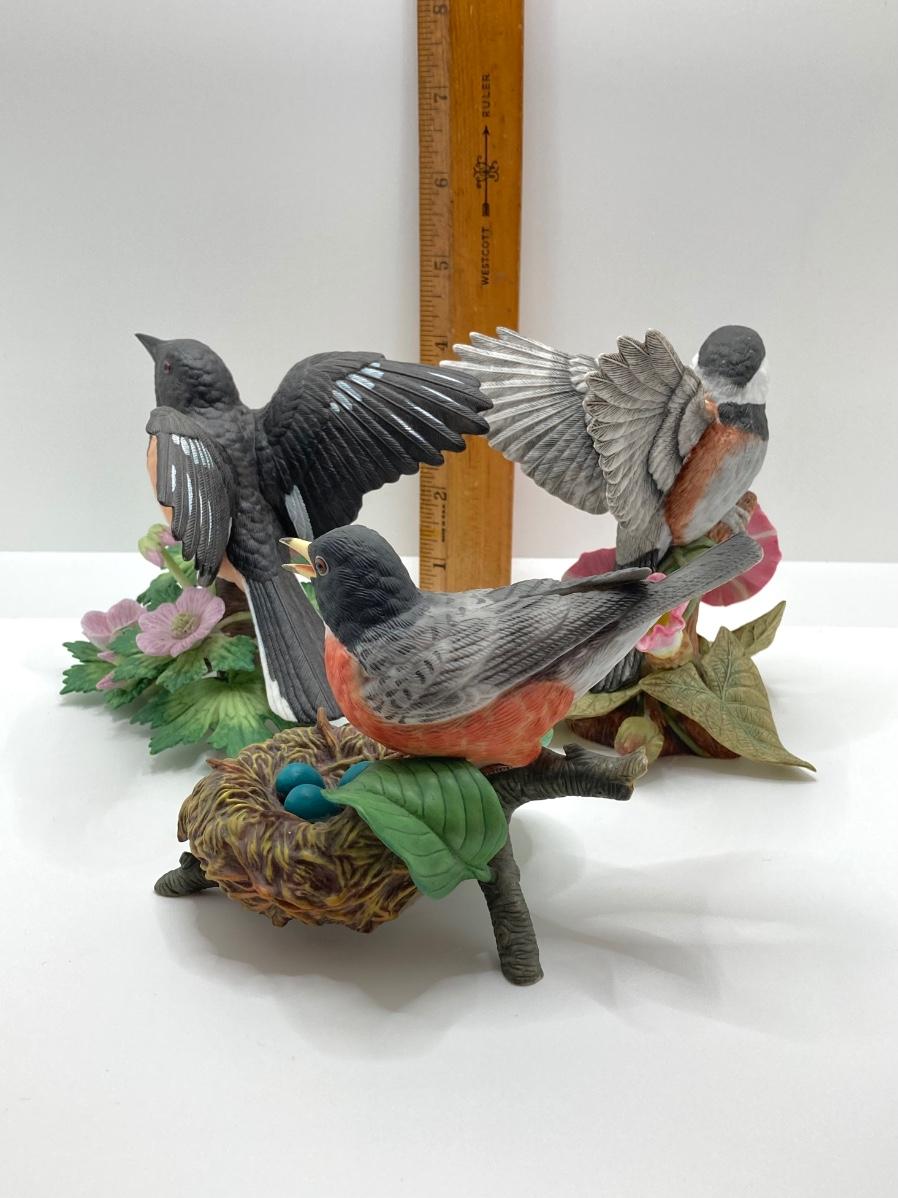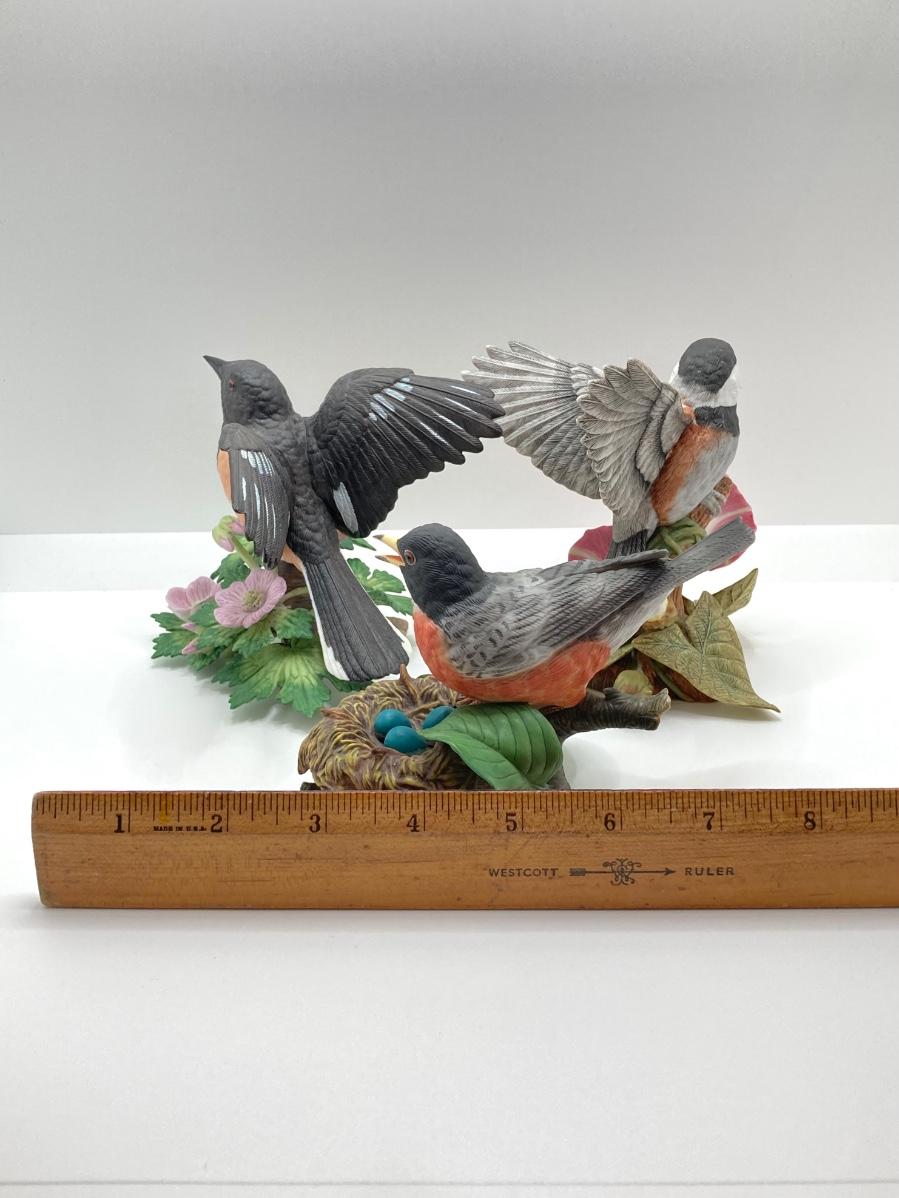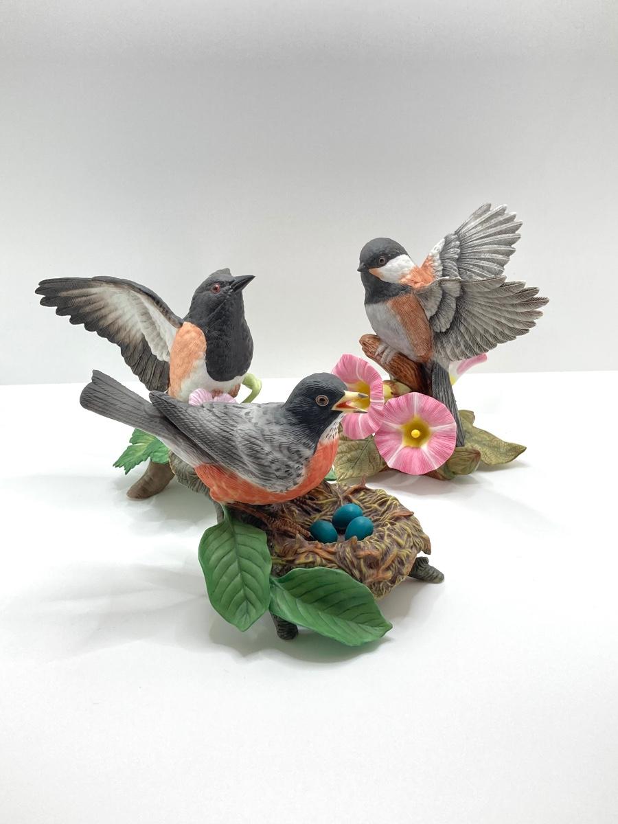 LOT 79K: American Robin, Rufous-sided Towhee and Chestnut-backed Chickadee Lenox Fine Porcelain Bird Figurine Collection