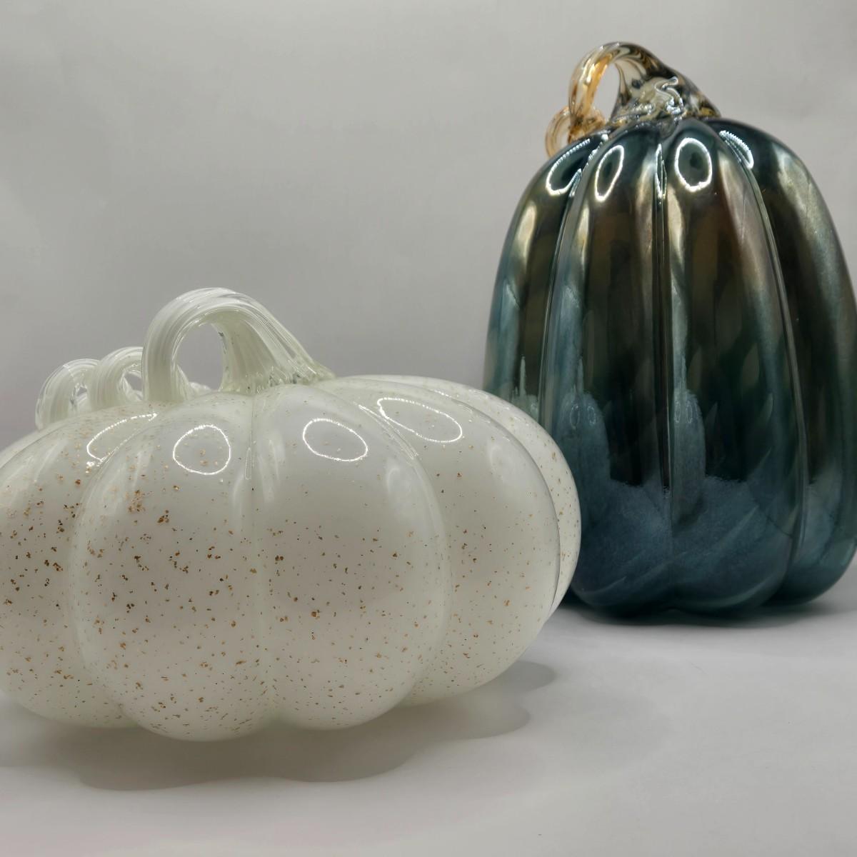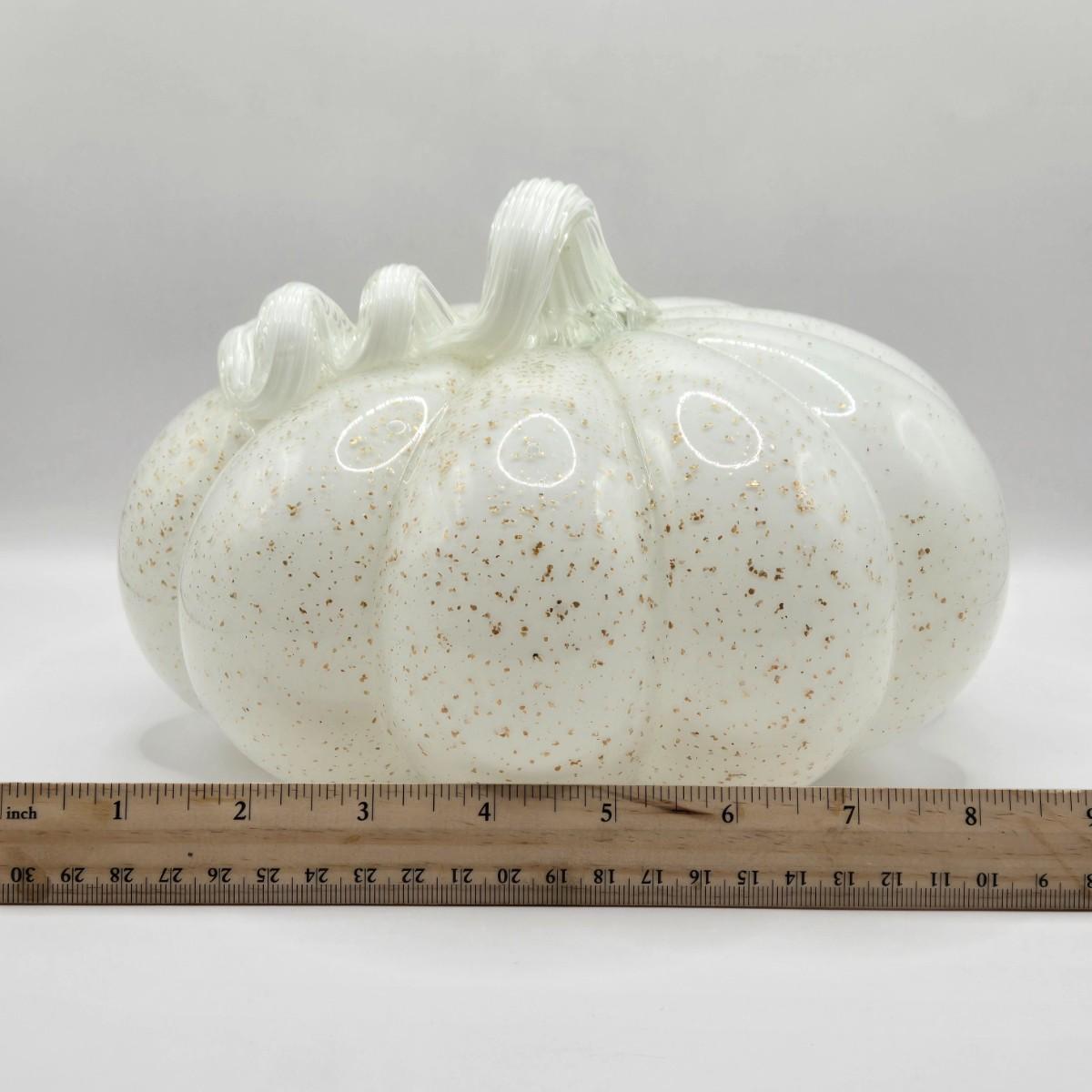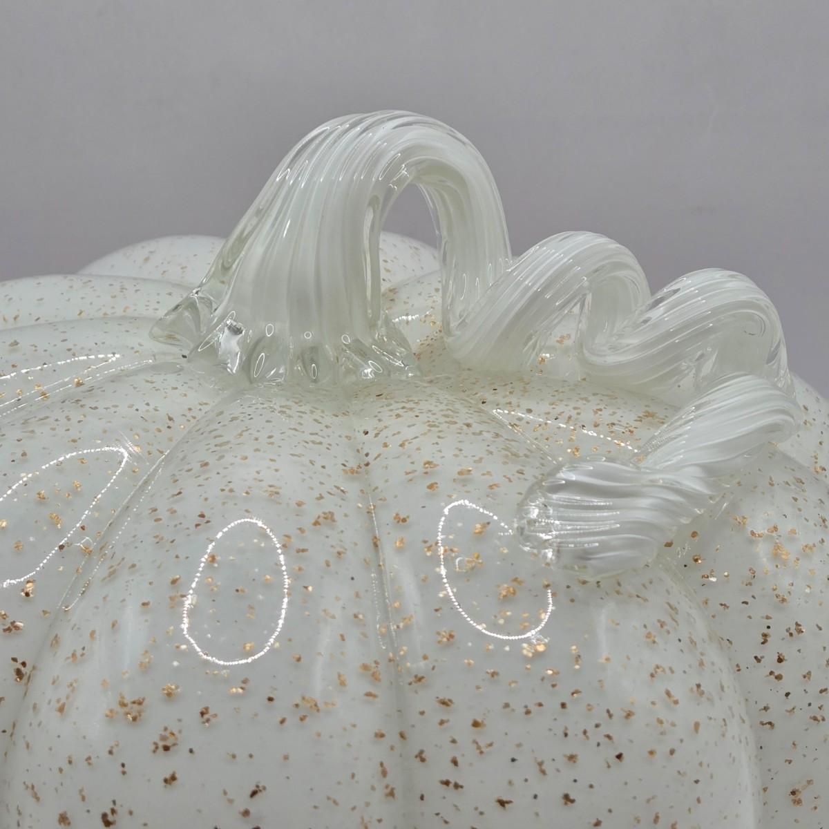 LOT 106K: White Glass Pumpkin with Golden Glitter & Teal, Multi Colored Pumpkin