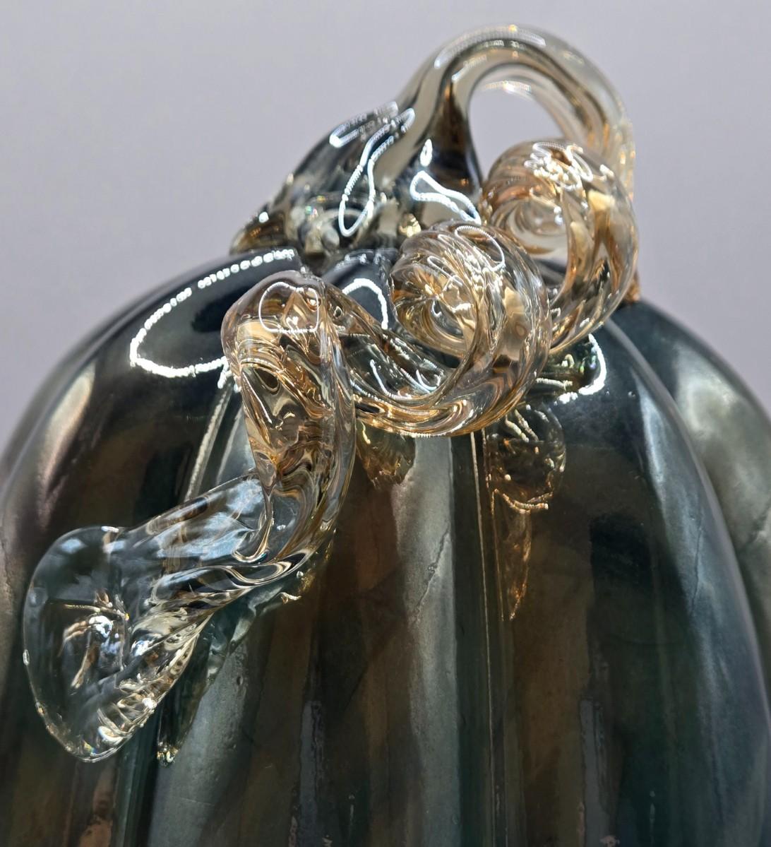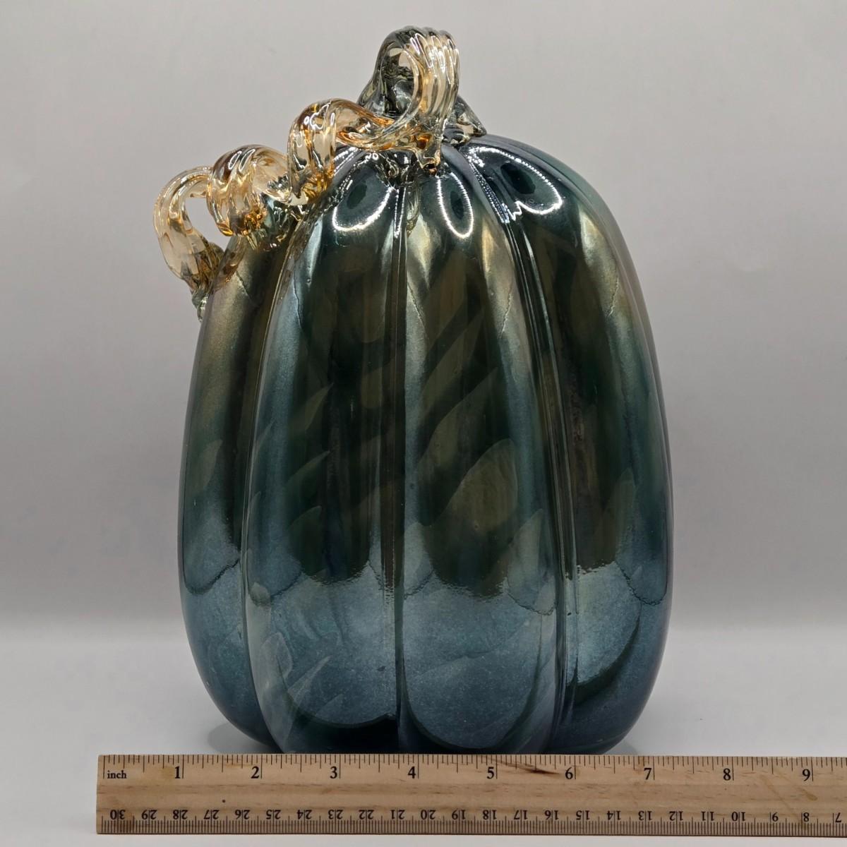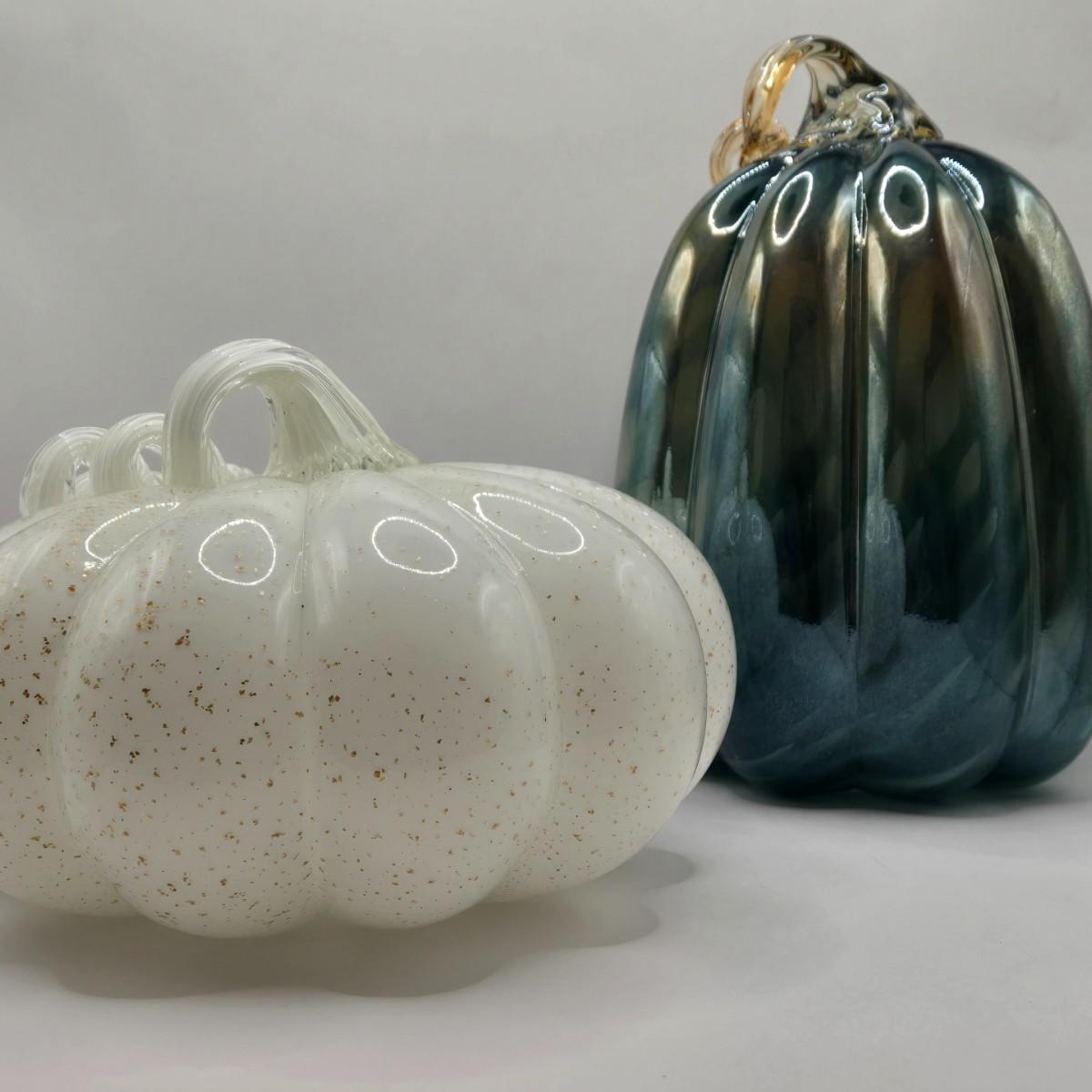 LOT 106K: White Glass Pumpkin with Golden Glitter & Teal, Multi Colored Pumpkin