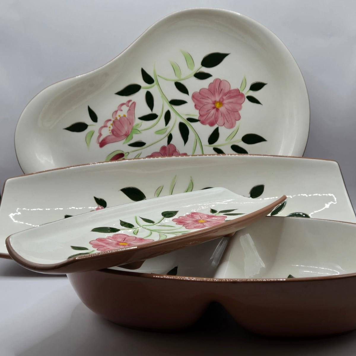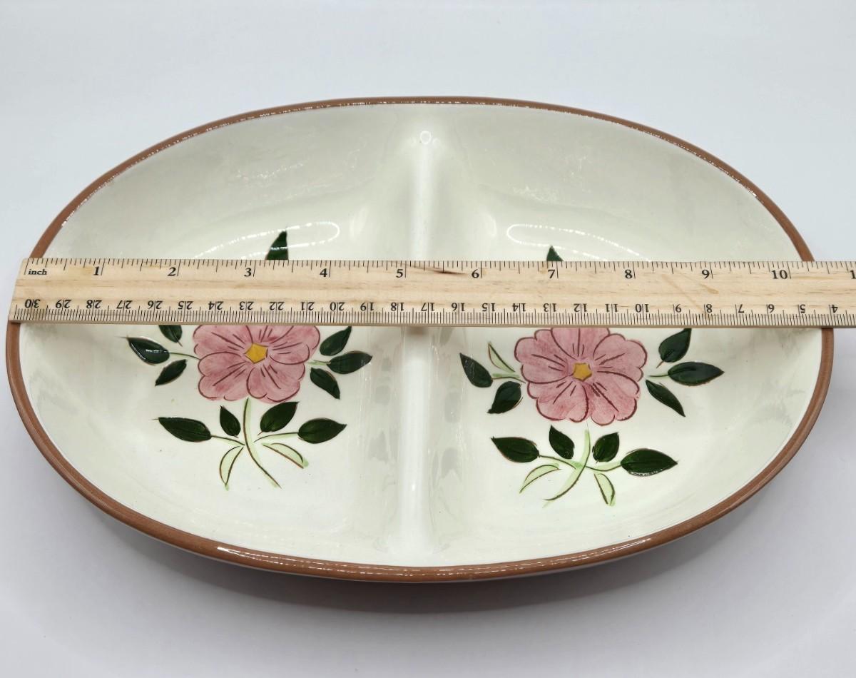 LOT 112K: Stangl Pottery Wild Rose Serving Platter, Divided Serving Bowl, & Two Cracker/ Cheese Trays