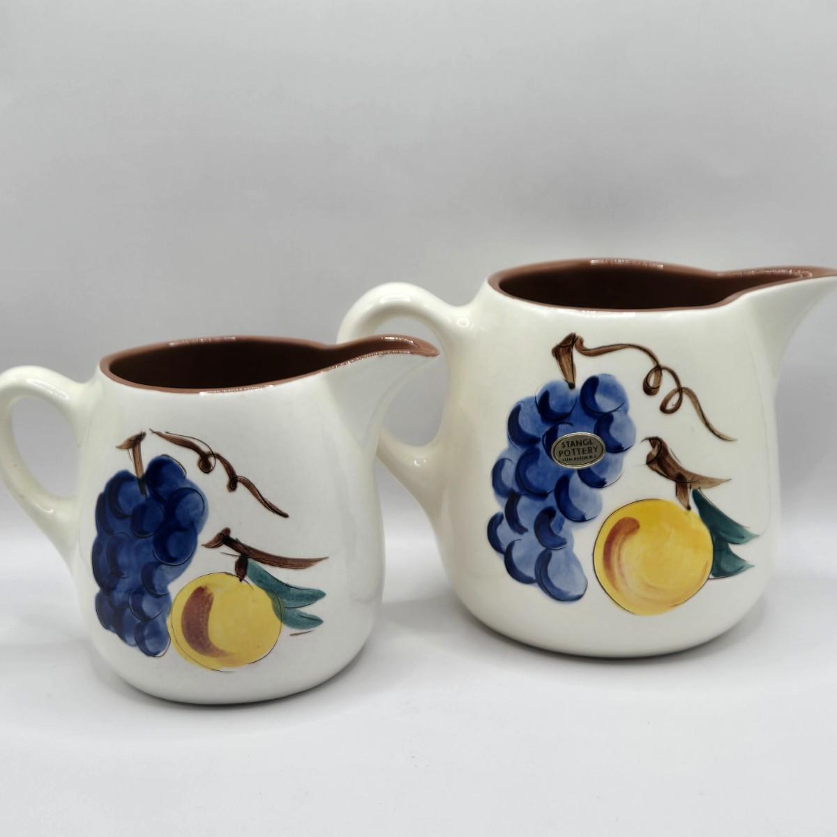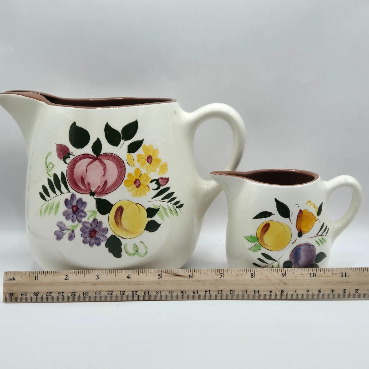 LOT 115K: Stangl Fruit and Flowers Pitchers and Divided Serving Bowl & 2 Fruit Pitchers