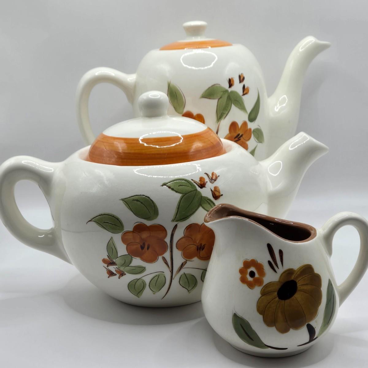 LOT 116K: Two Vintage Stangl Pottery Bittersweet Pitchers & Small First Love Pitcher