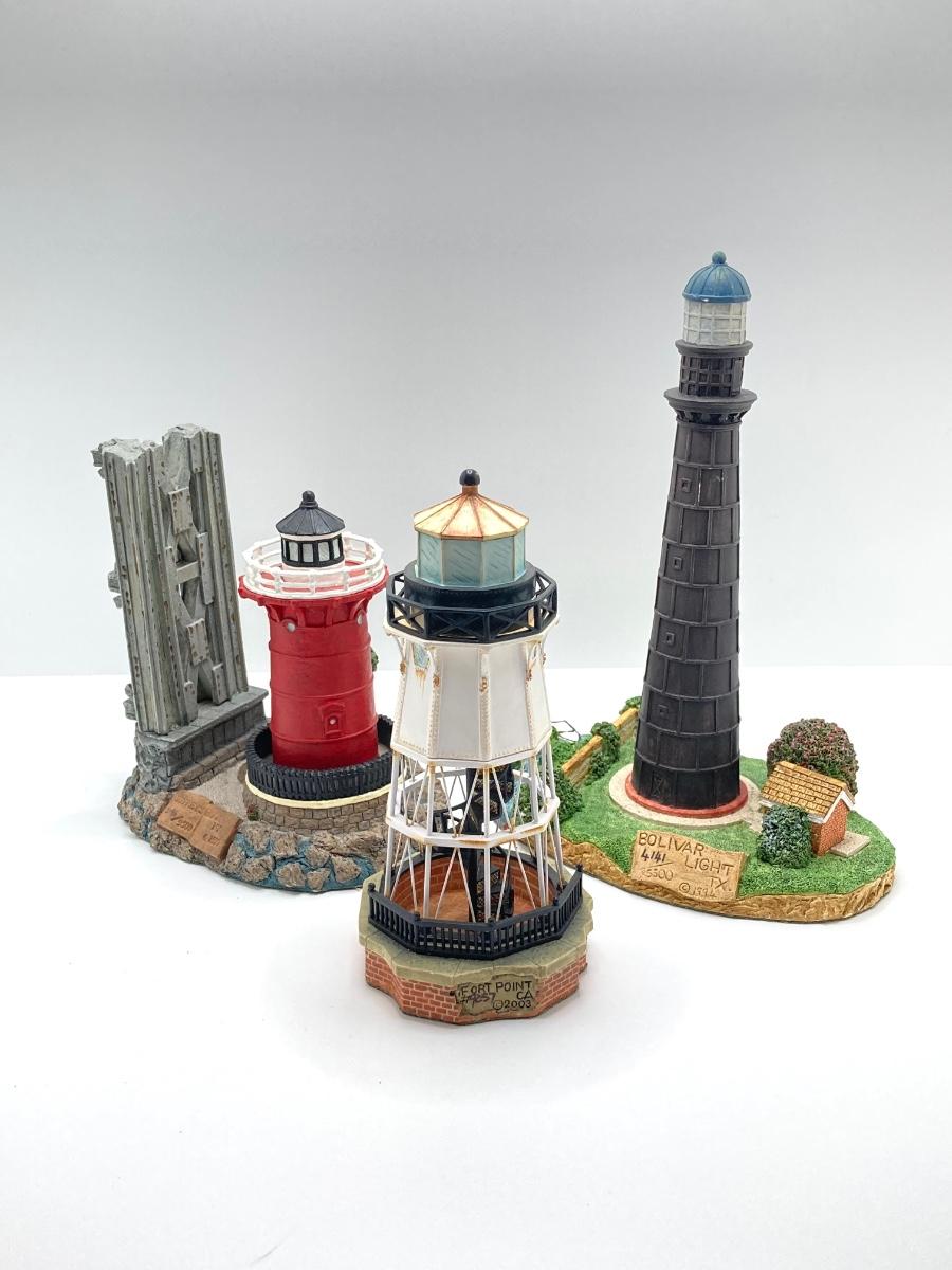 LOT 122K: Collection of Harbour Lights Lighthouses - Society Exclusive Fort Point California #541, Jeffrey's Hook New York #195 and Bolivar Texas #146