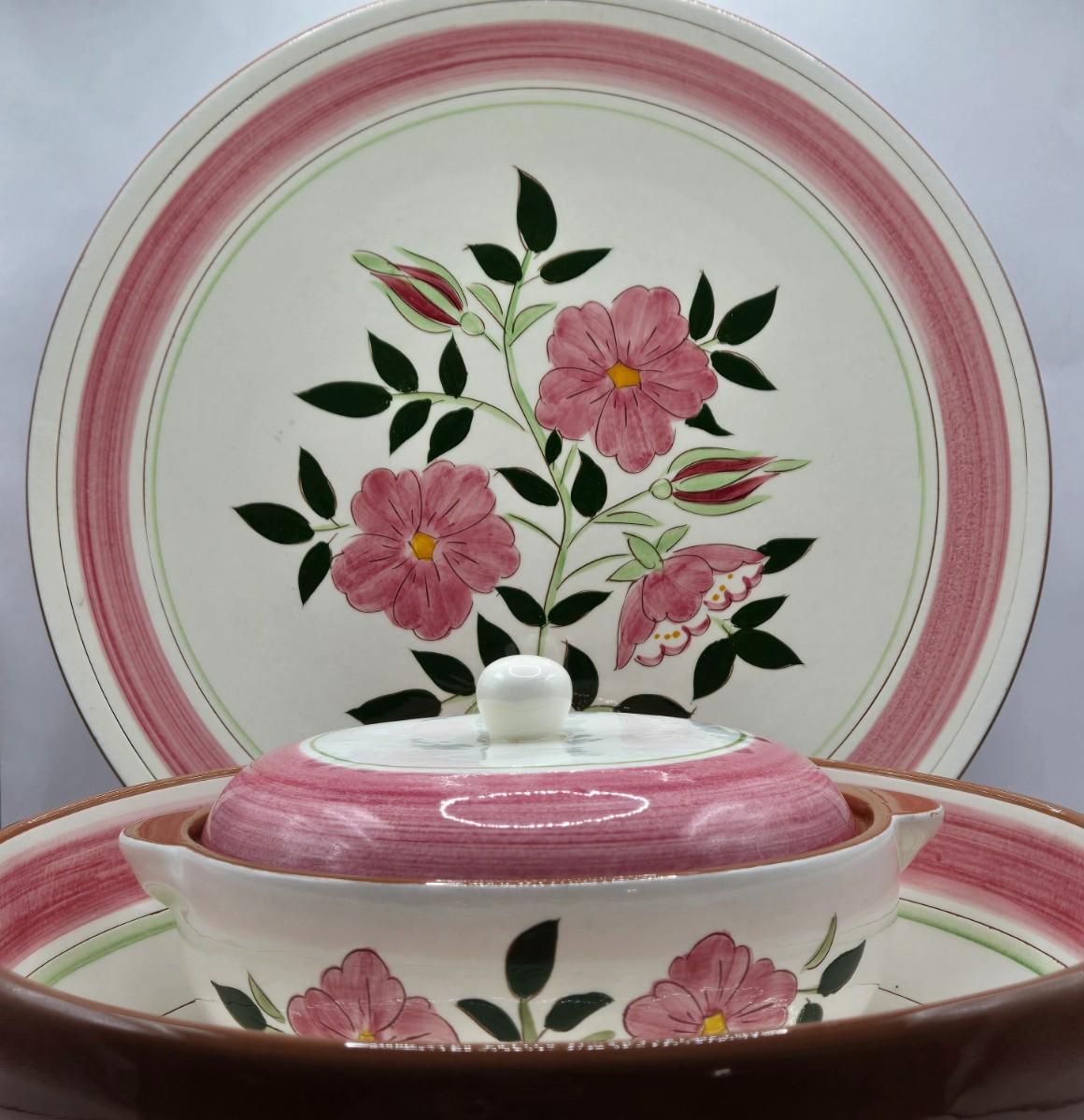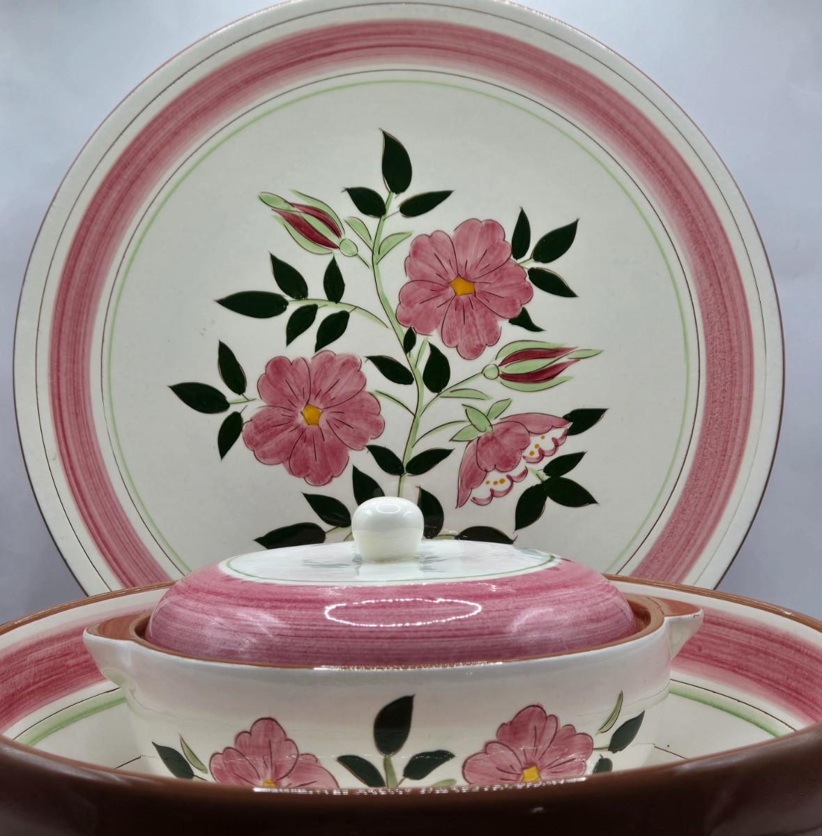 LOT 141K: Stangl Pottery Wild Rose Large Serving Platter, Large Serving Bowl, and Covered Bowl