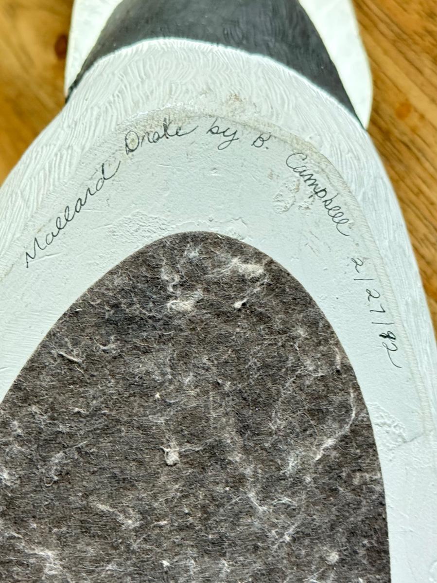 LOT 143K: 1992 Mallard Drake Hand Painted Wood Decoy Duck by B Campbell