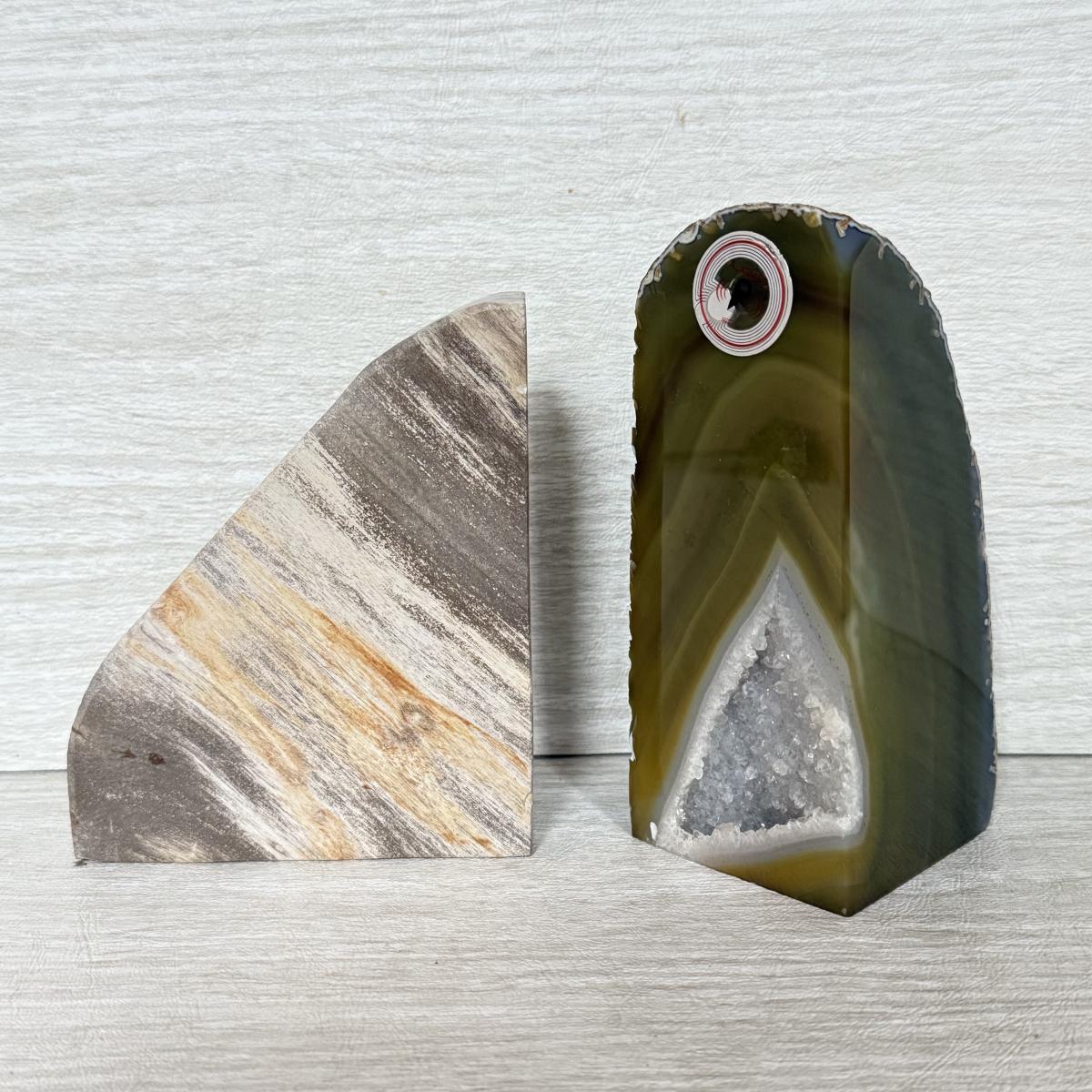 LOT 154L: Green Geode Bookends & Stone Bookends