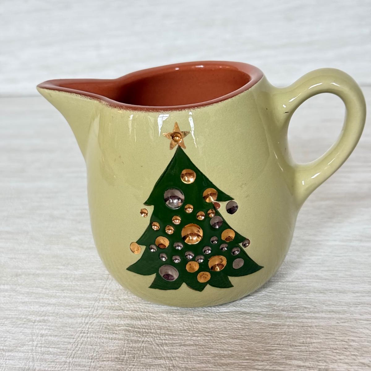 LOT 165K: Vintage Stangl Holiday Collection: Magnolia 14" Platter, Christmas Tree Cream Pitcher & Cranberry Saucer