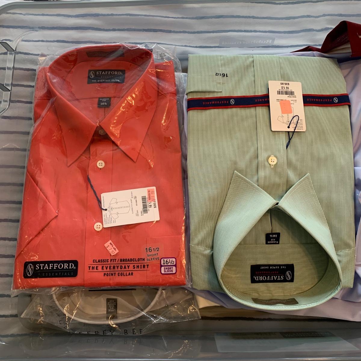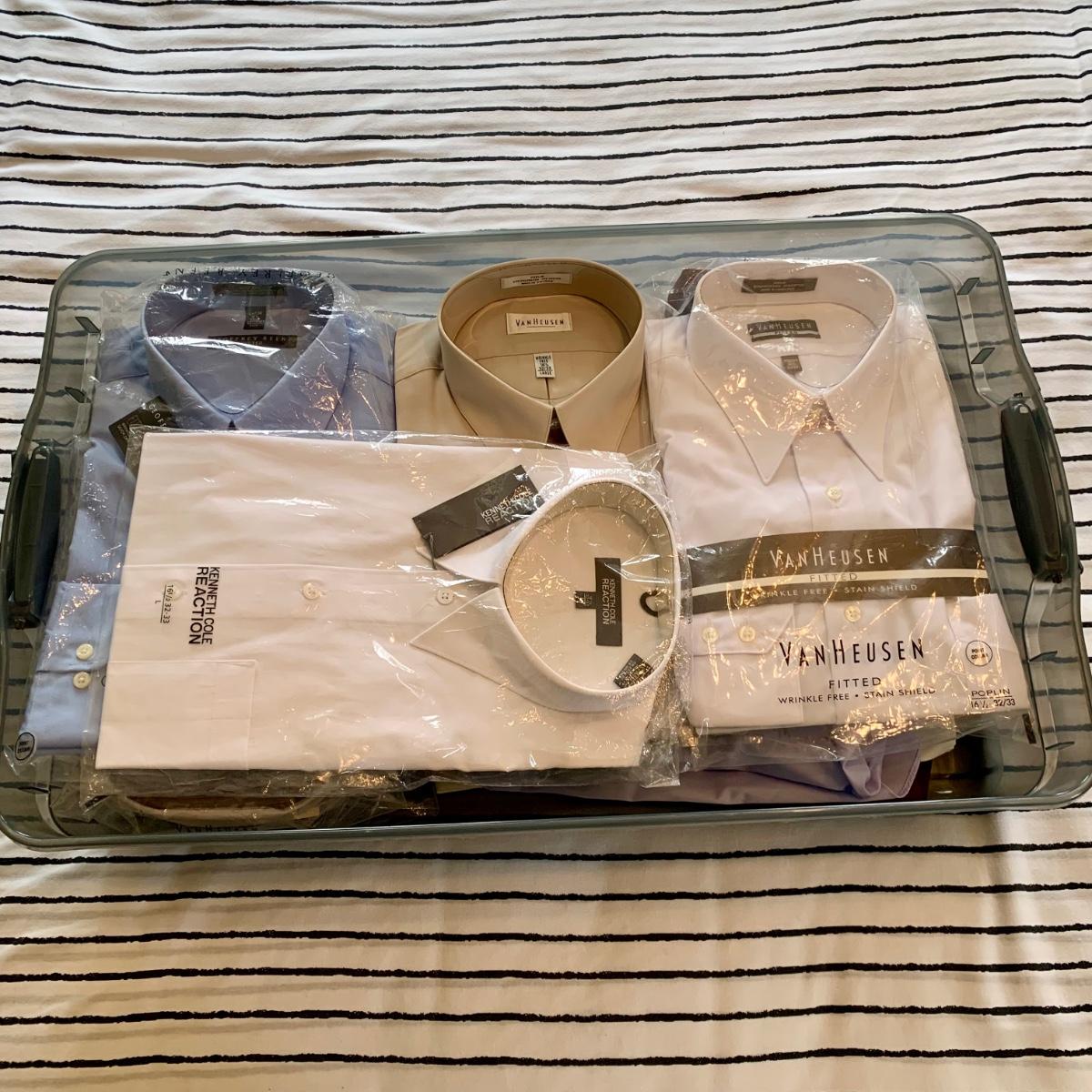 LOT 241 Z: Tote of Men's Dress Shirts (Some NIP); Geoffrey Beene, Stafford, Van Heusen, & More!