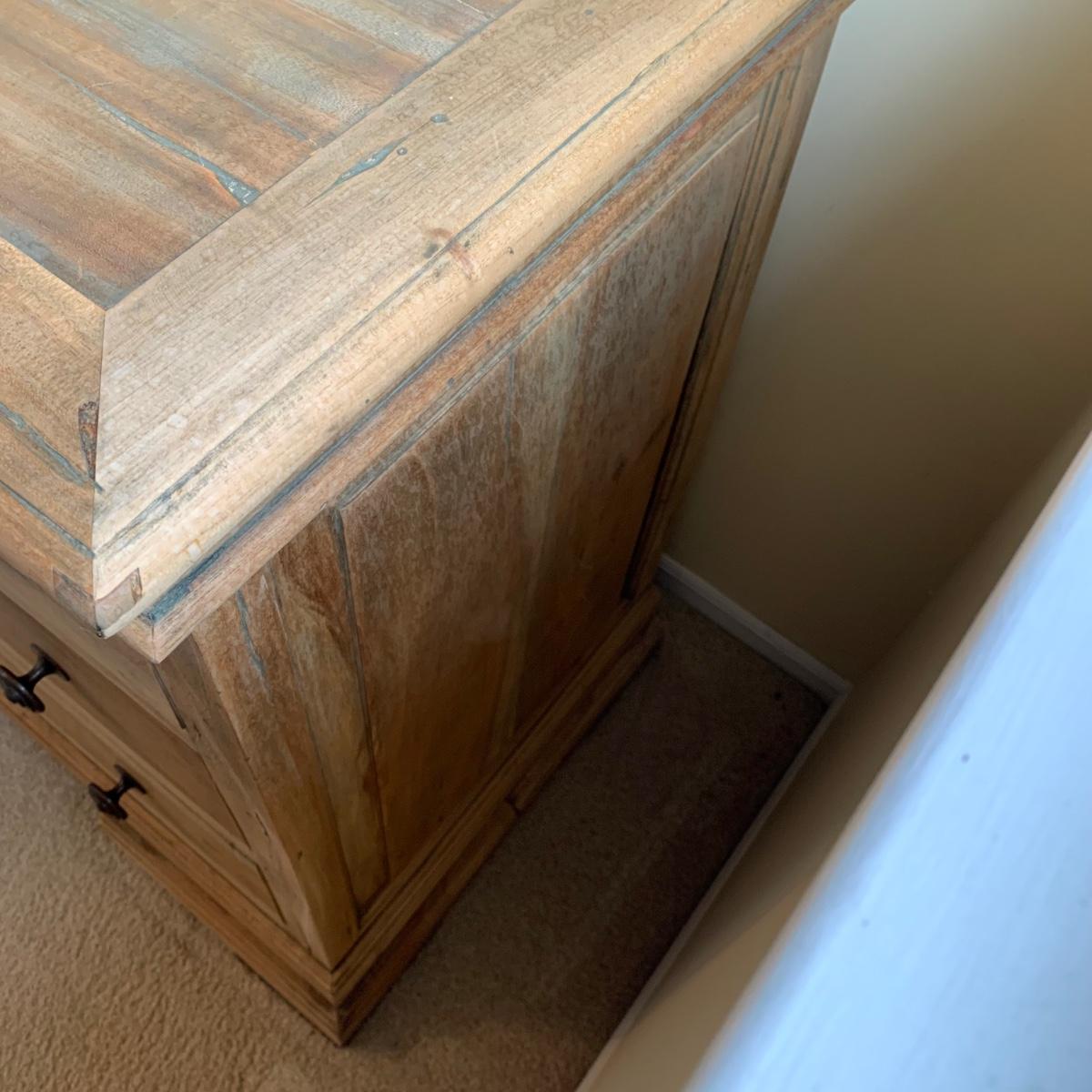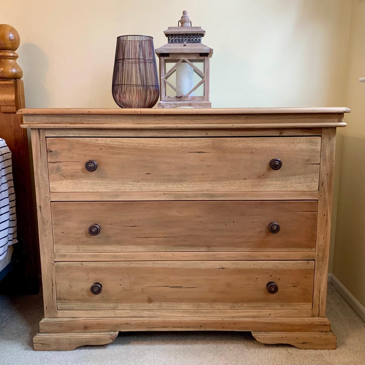 LOT 245 Z: Raw Wood 3 Drawer Dresser w/ Decor