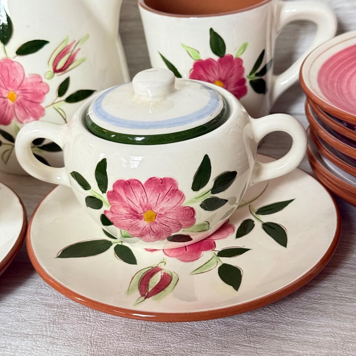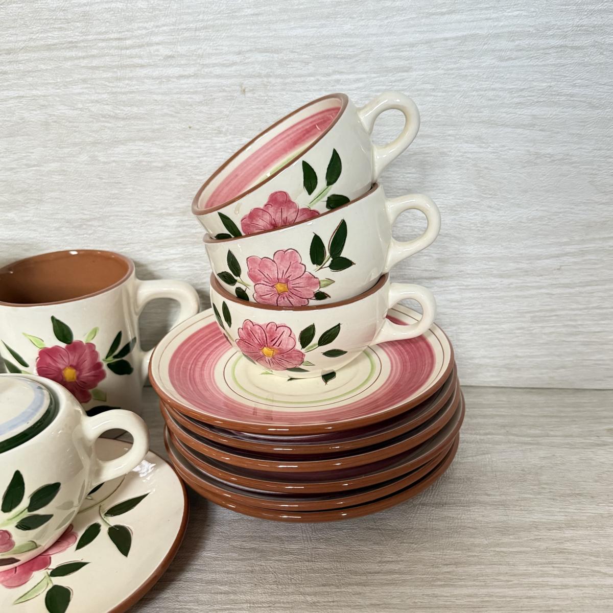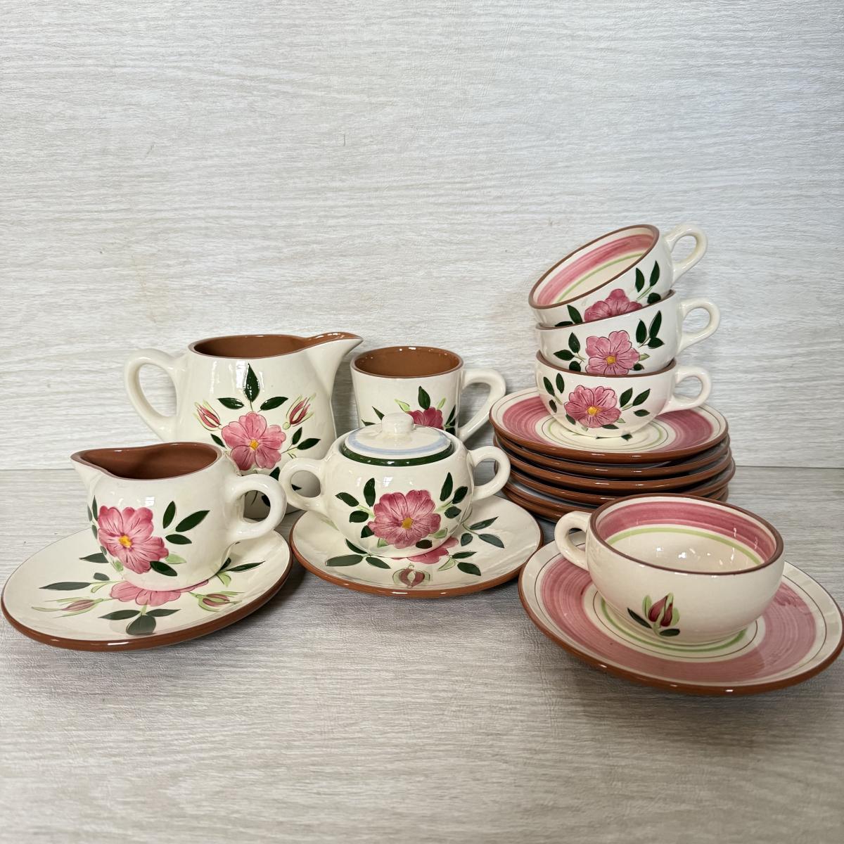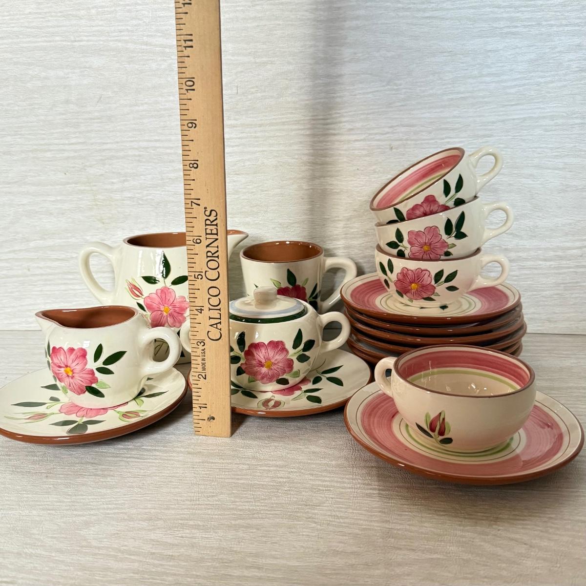 LOT 280: Vintage Stangl Wild Rose Tea Cups & Saucers w/ Sugar Bowl, Creamer & Pitcher