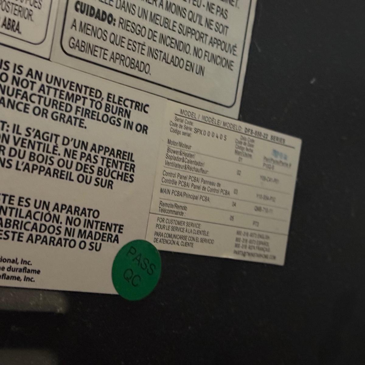 LOT 288F: Duracraft Corp. Air Heater Model CZ-308 & Duraflame Electric Fireplace Model DFS-550-22