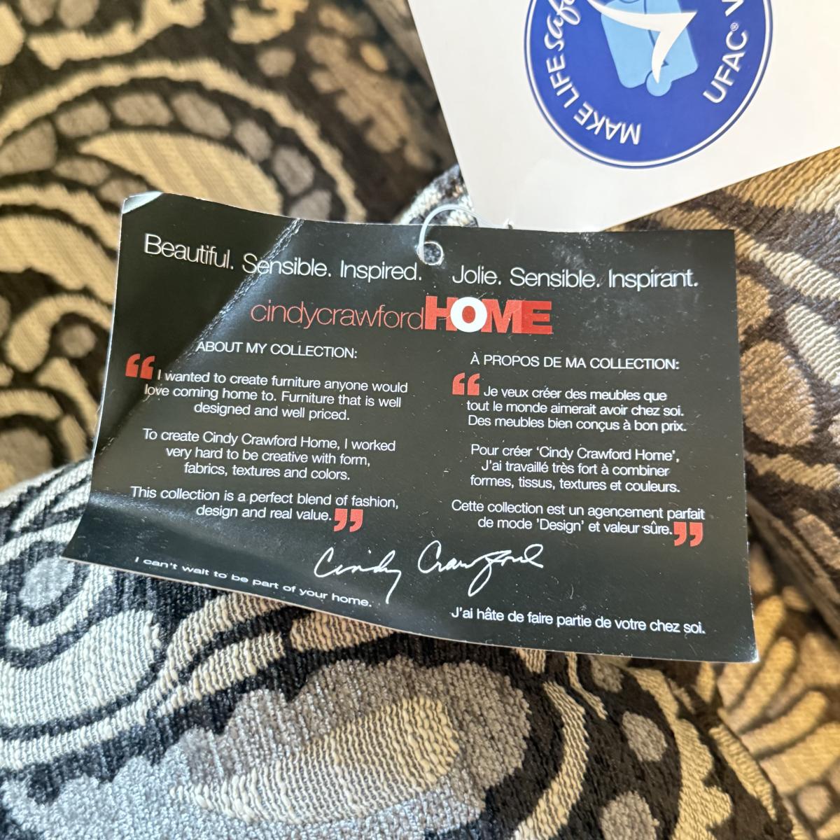 LOT 291F: Pair of Cindy Crawford at Home Paisley Armchairs w/ Rustic Wood Top End Table
