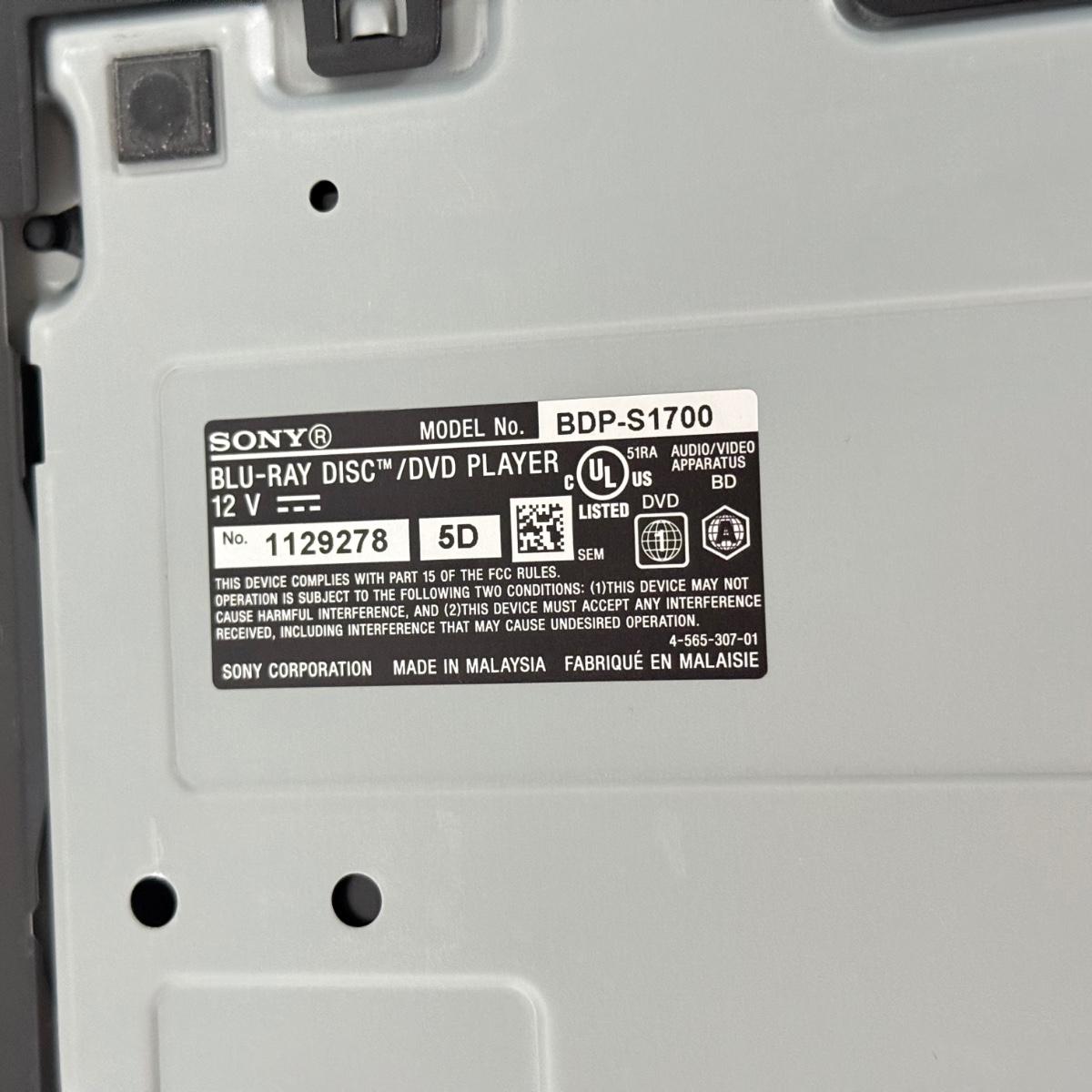 LOT 295F: Sony Blu-Ray/DVD Player Model BDP-S1700