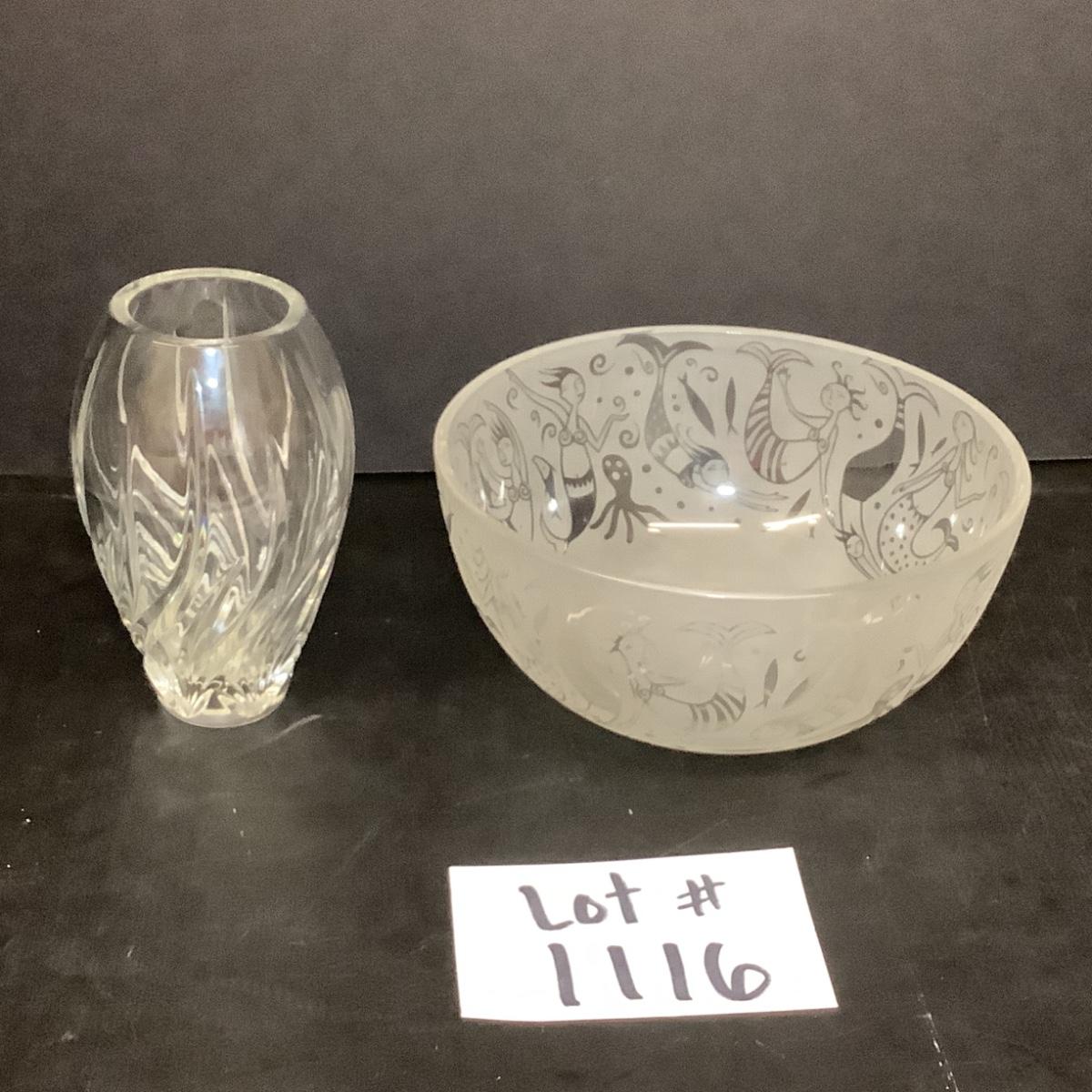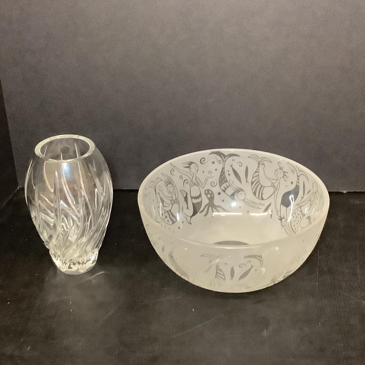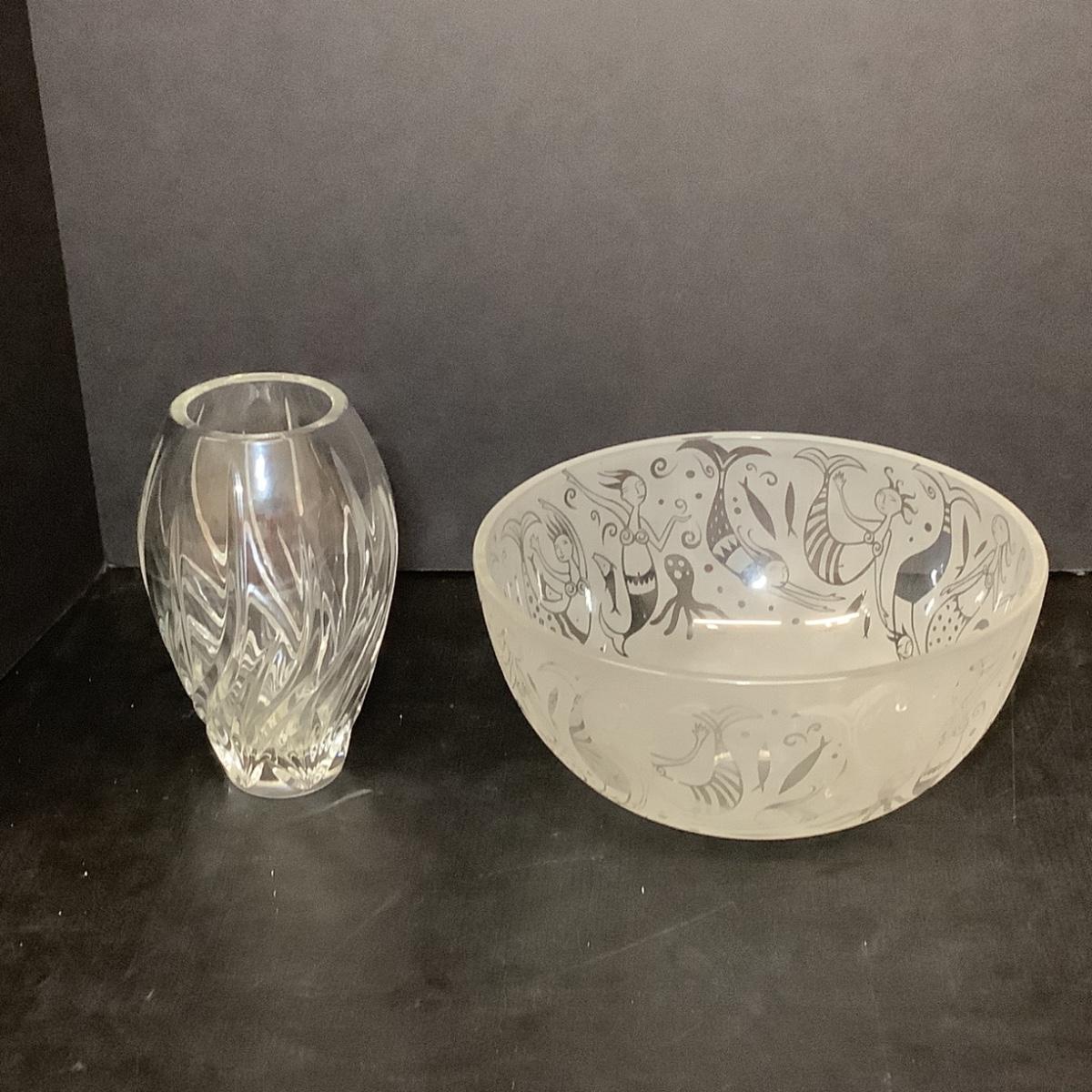 Lot 1116. Mermaid Bowl by Leandra Drum / Signed Crystal Vase