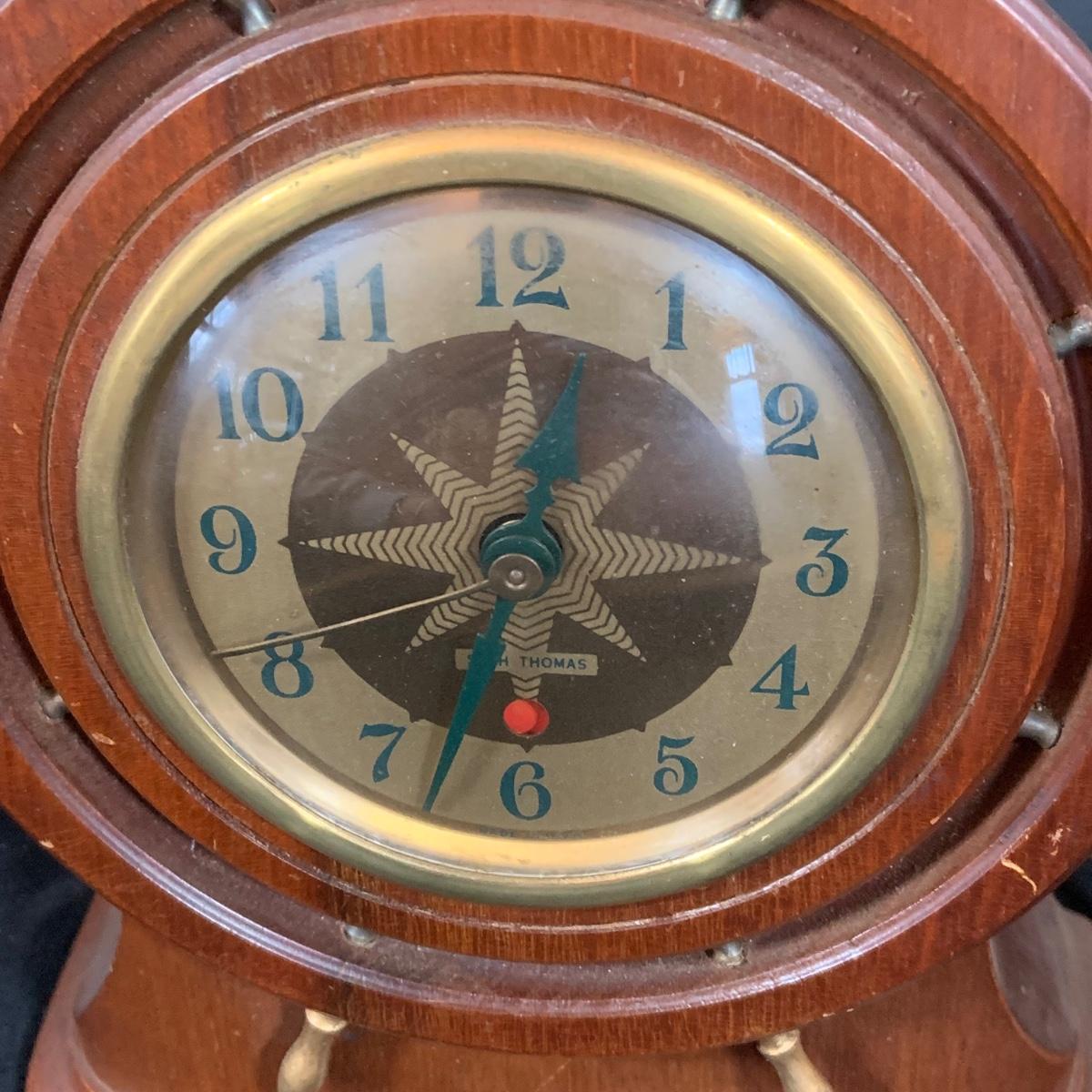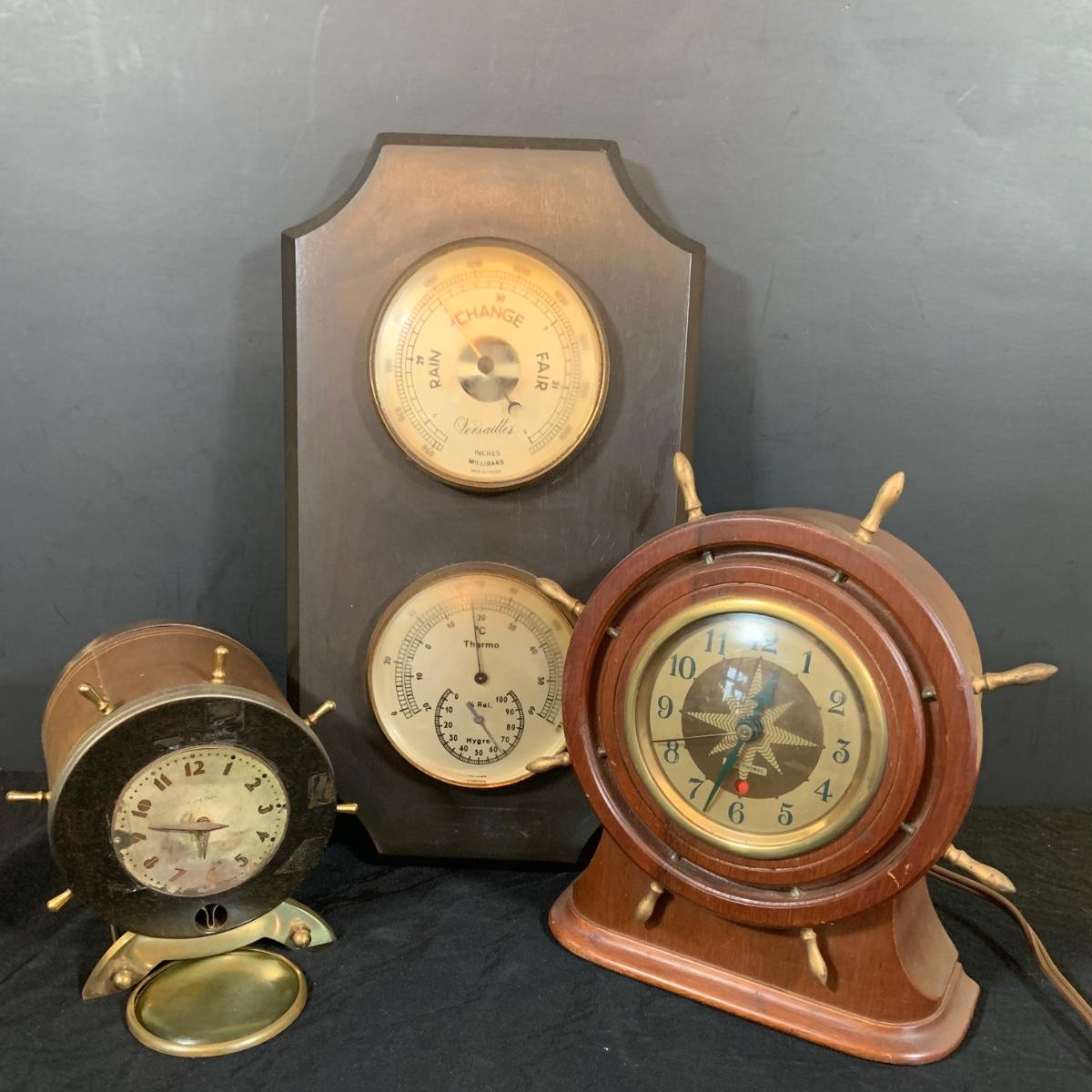 LOT 44 Seth Thomas Electric Ships Wheel Clock, a Park Sherman Cigarette Dispenser Ship’s Wheel Clock and a Versailles Barometer