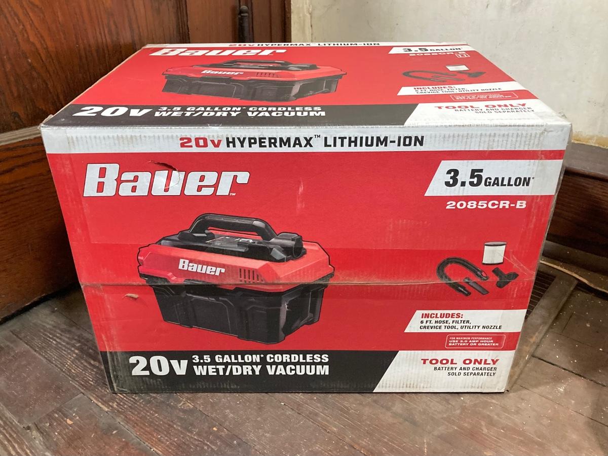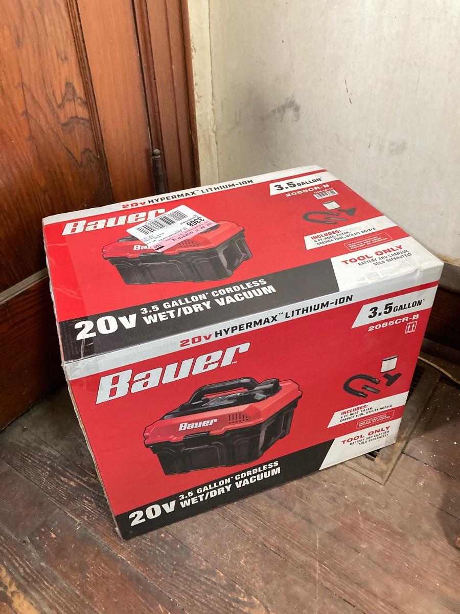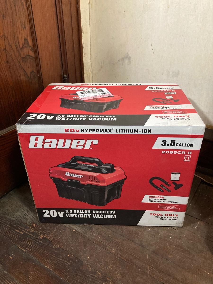 LOT 55: Bauer 3.5 Gallon Cordless Wet / Dry Vacuum with 20v Battery (New in Package)
