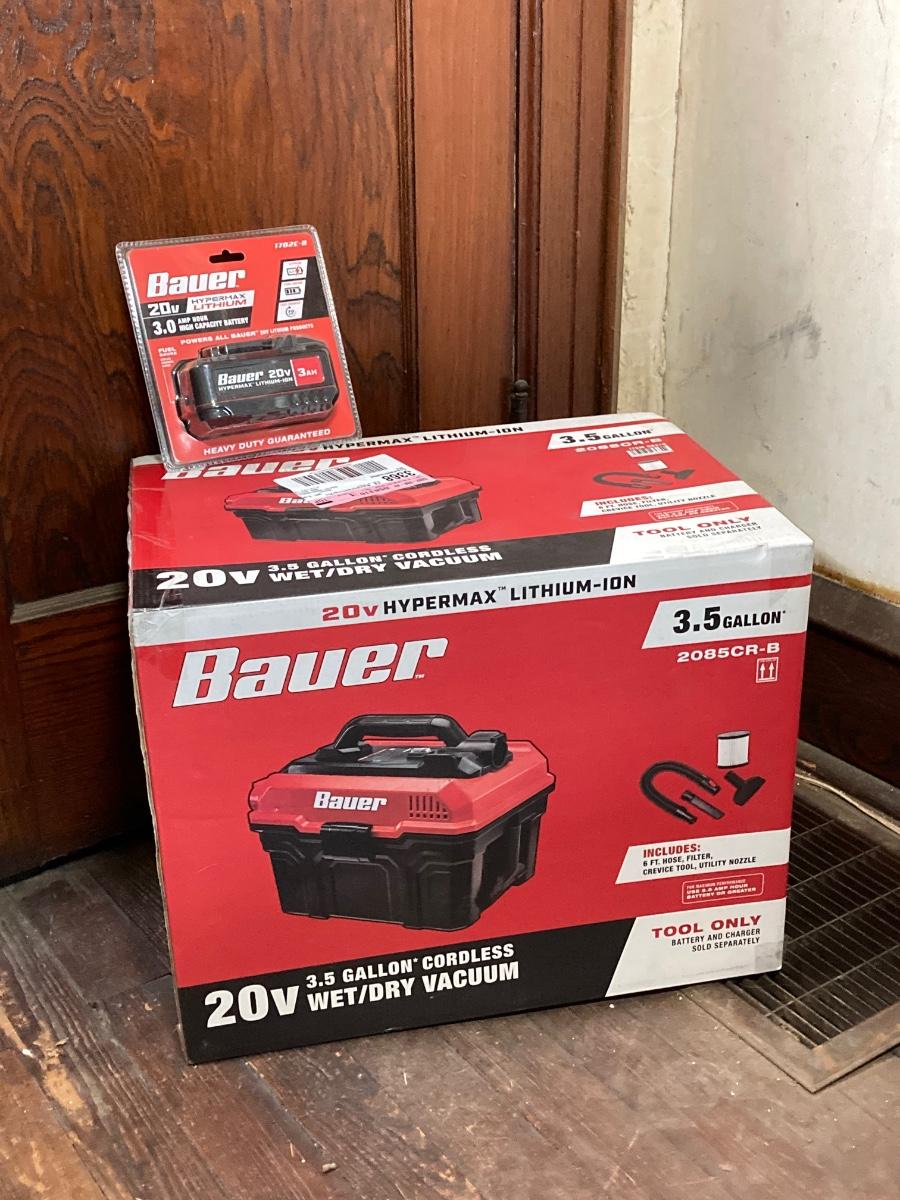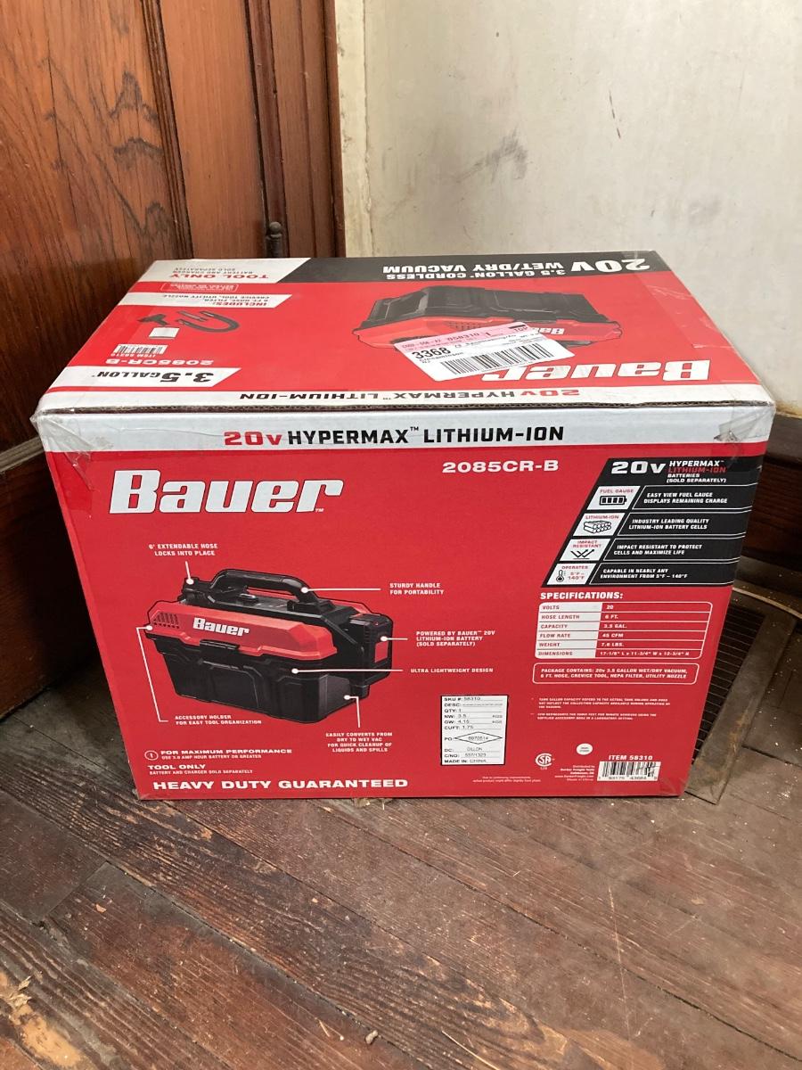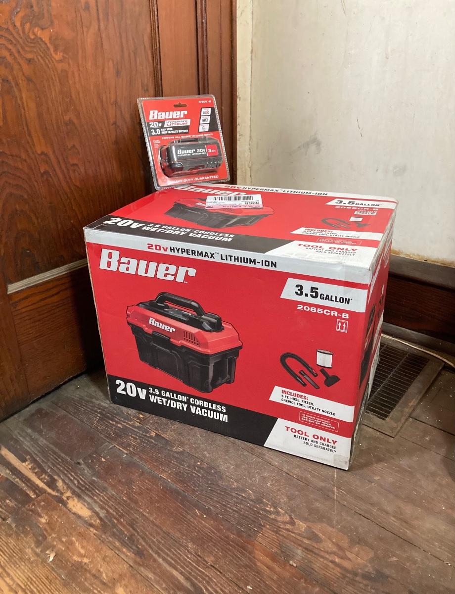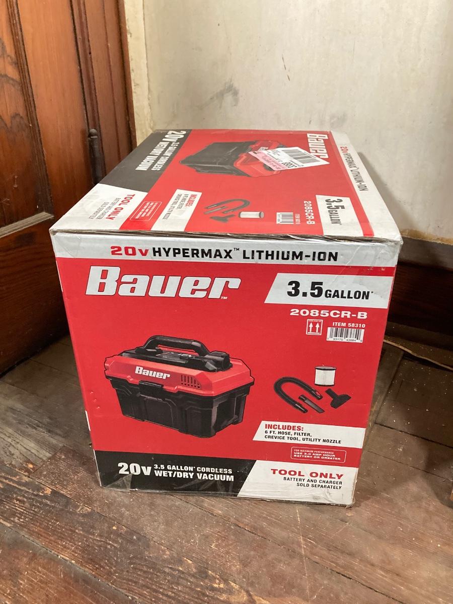 LOT 55: Bauer 3.5 Gallon Cordless Wet / Dry Vacuum with 20v Battery (New in Package)