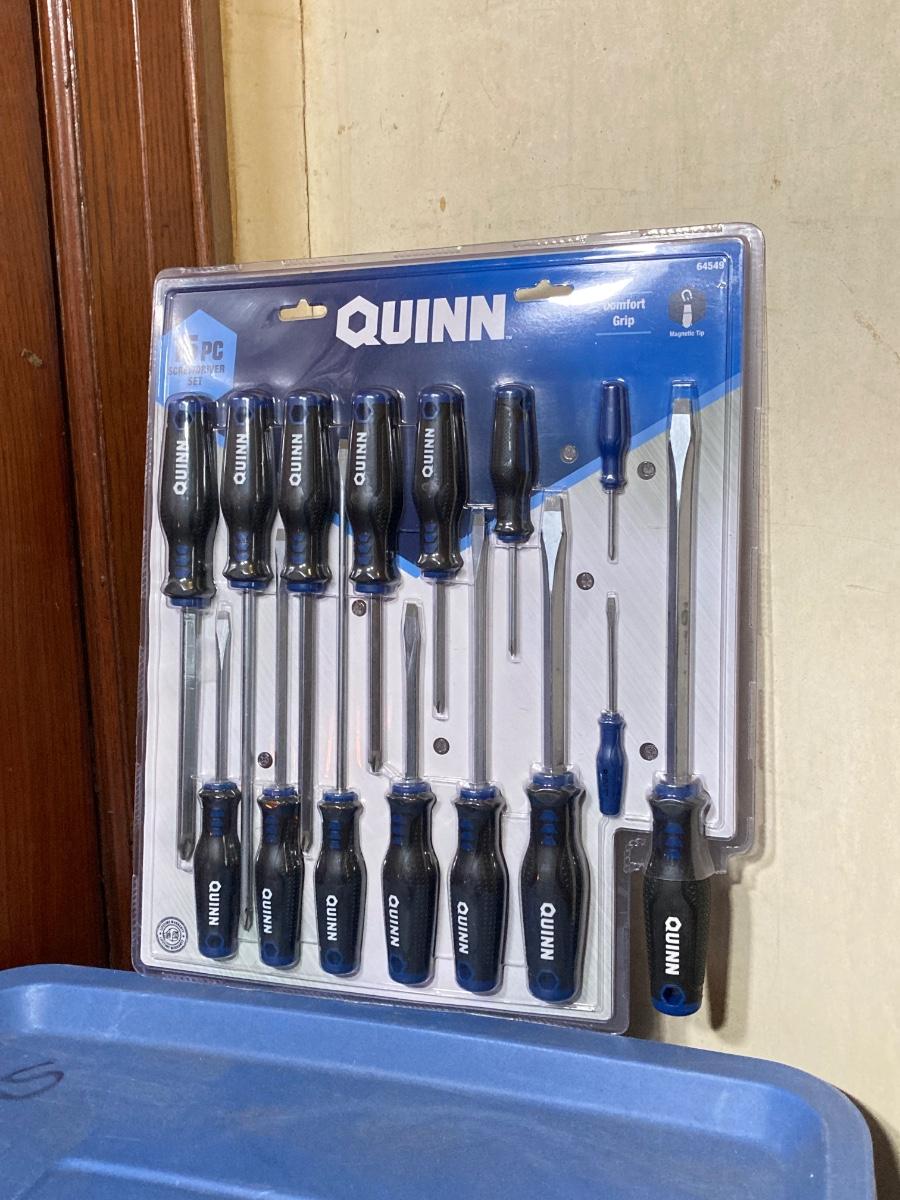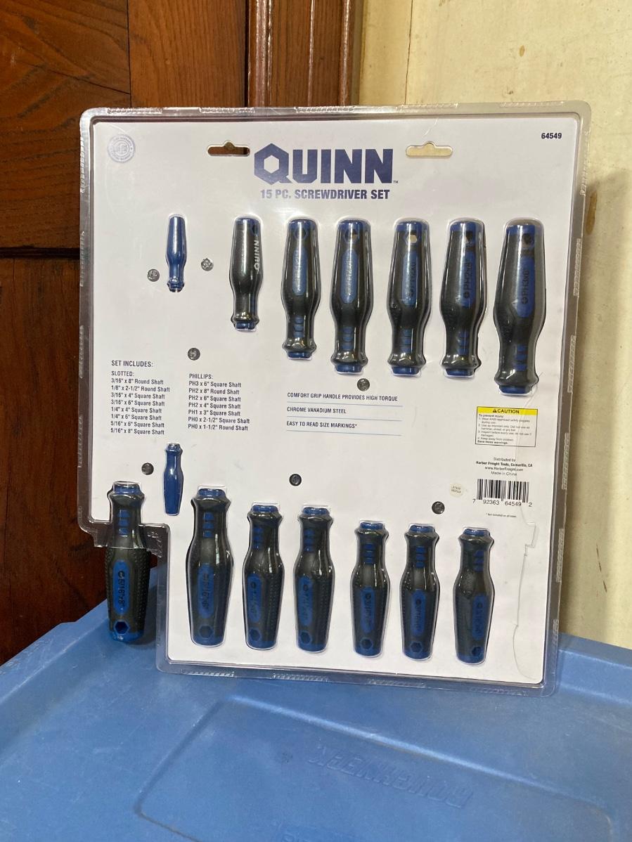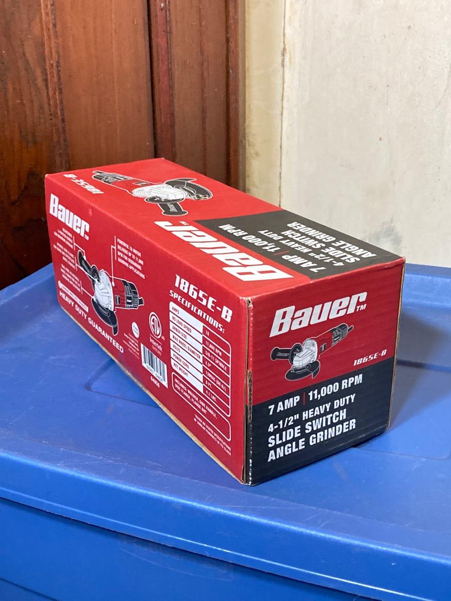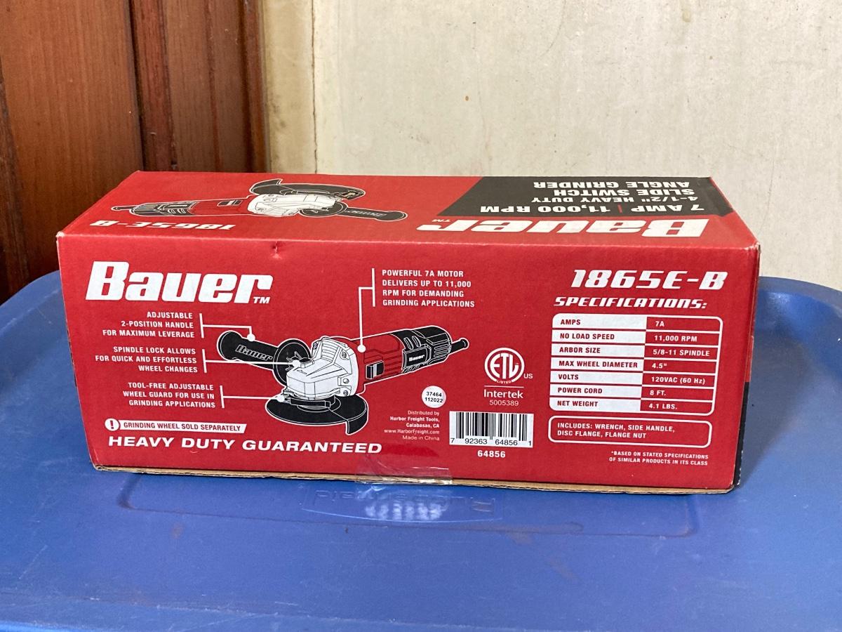 LOT 57: Bauer 4 1/2 Inch Heavy Duty Slide Switch Angle Grinder, Blades, Warrior Cut Off Wheels and Quinn 15 Piece Screwdriver Set (New in Package)