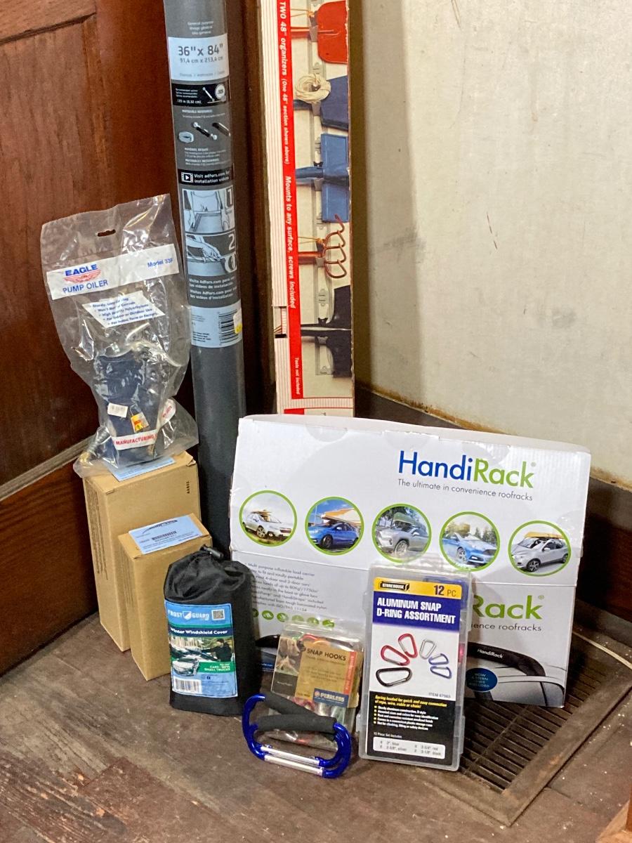 LOT 65: Automobile / Garage Collection - HandiRack Roofrack, Frost Guard Windshield Cover, Kool-Vue Honda Accord Parts, Selfix Garage and Tool Organizer and More