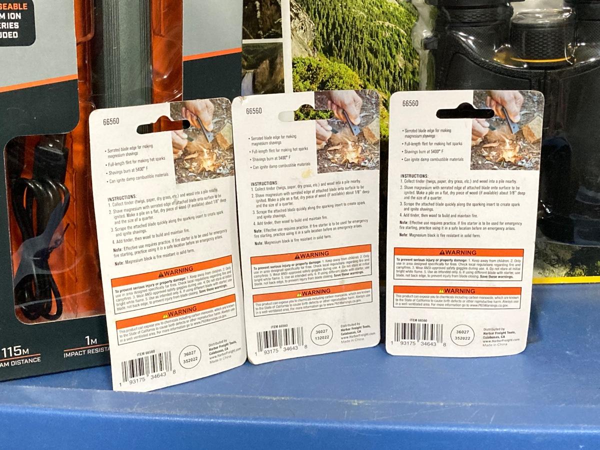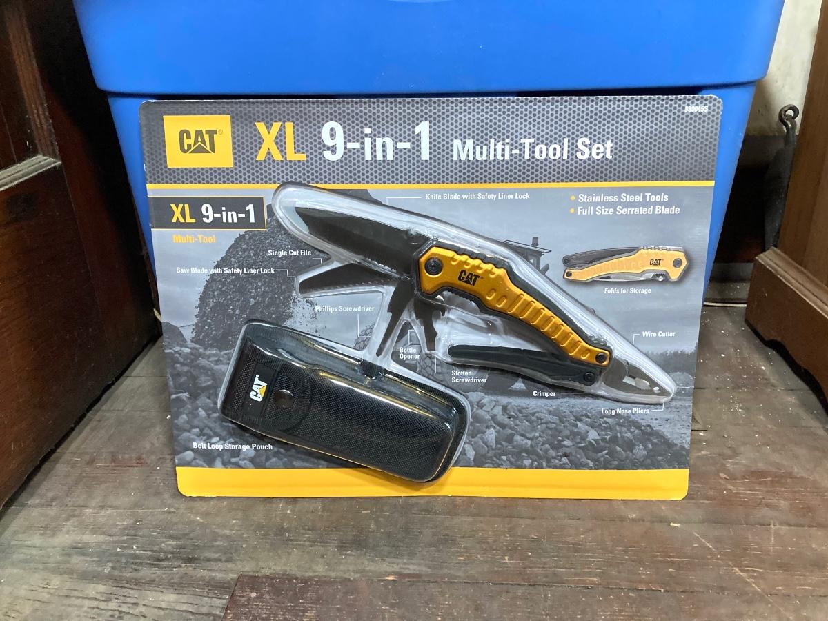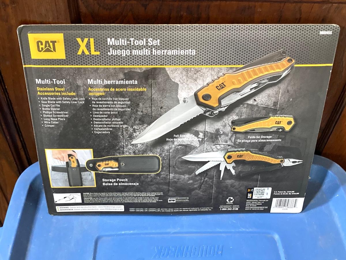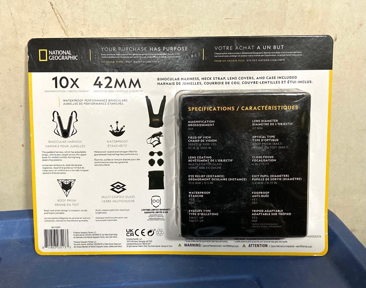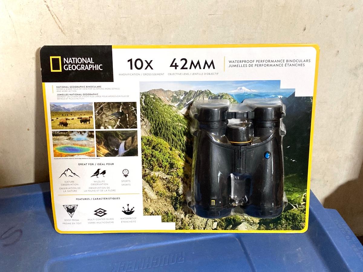 LOT 66: Bushnell Rechargeable Flashlight, CAT XL 9 in 1 Multi-Tool Set, National Geographic Binoculars and Three Magnesium Fire Starters (New in Package)