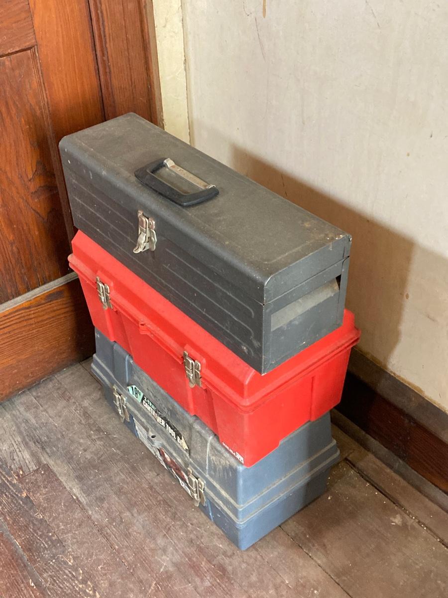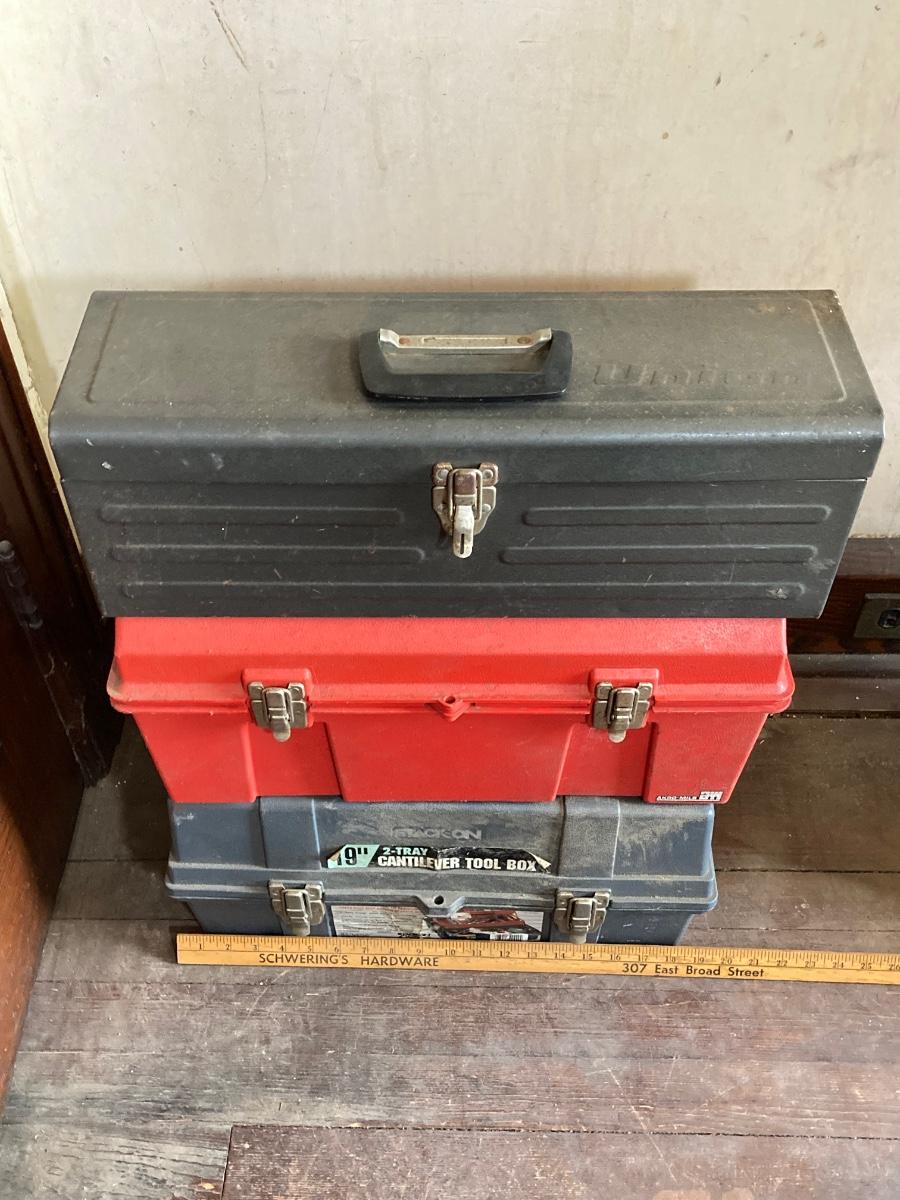 LOT 69: Three Toolboxes with Contents - One Union Metal and Two Plastic (Akro-Mils and Stack-On)