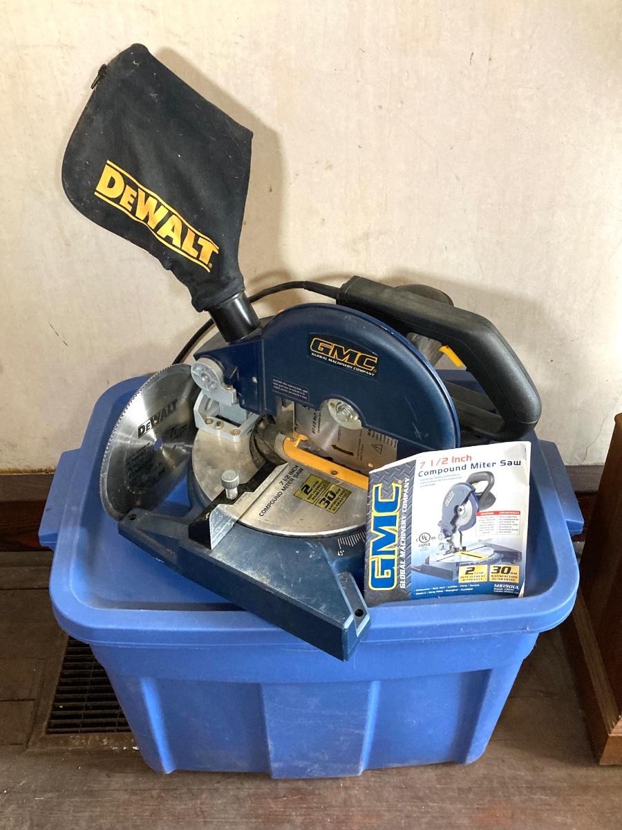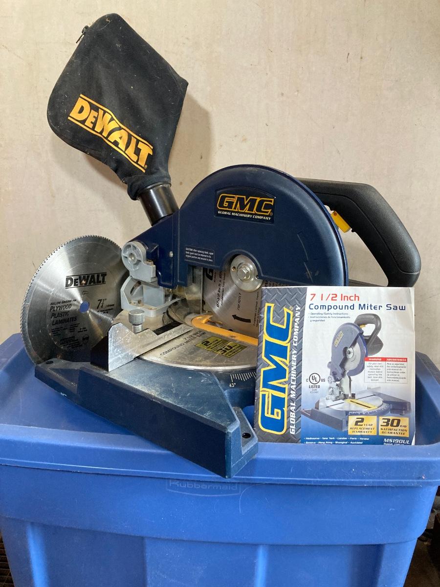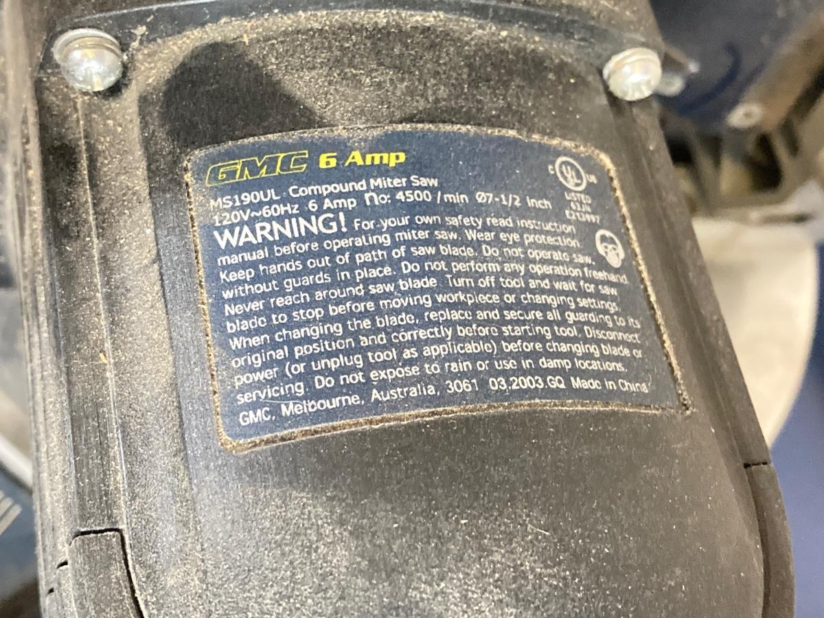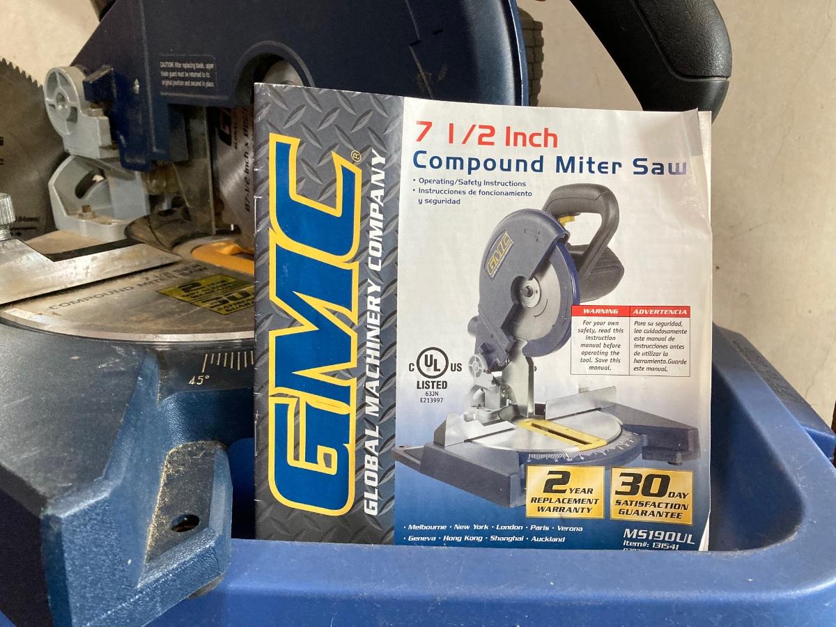 LOT 71: Global Machinery Company (GMC) Compound Miter Saw MS190UL with Extra DeWalt Blade