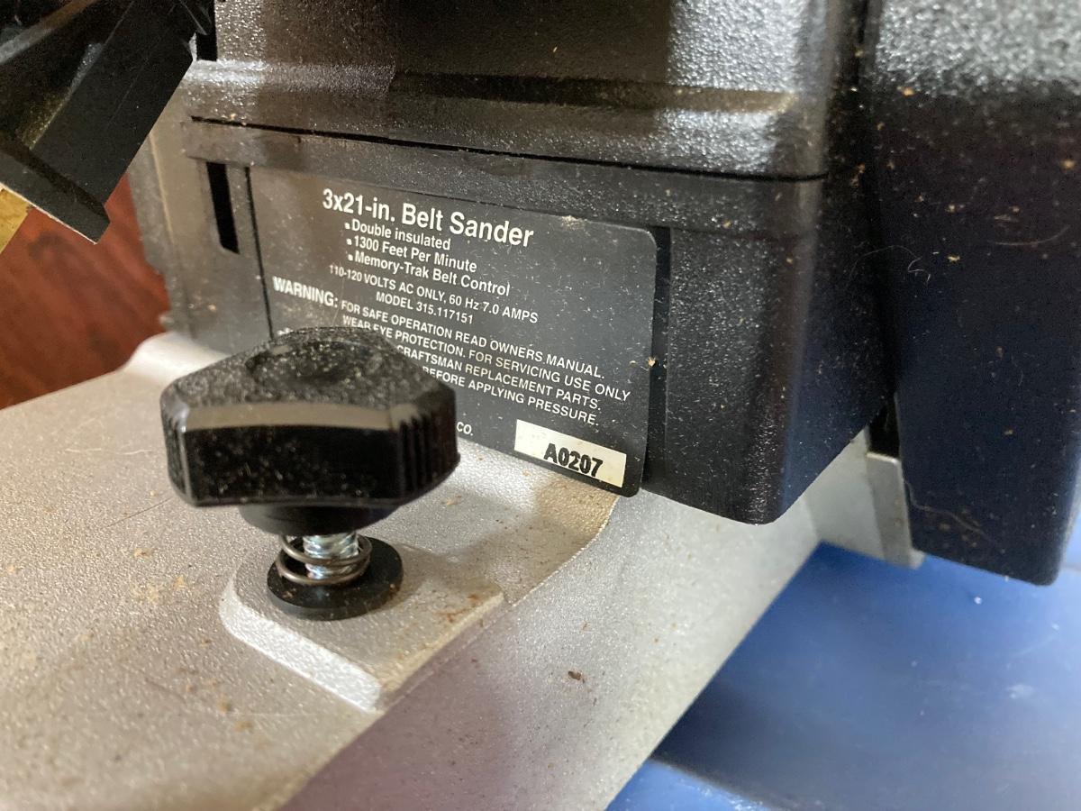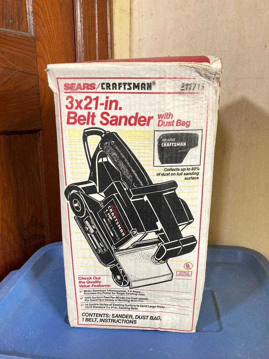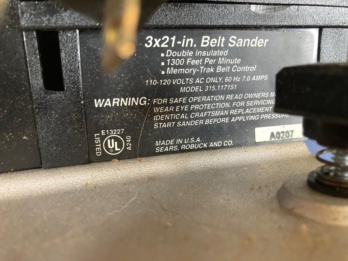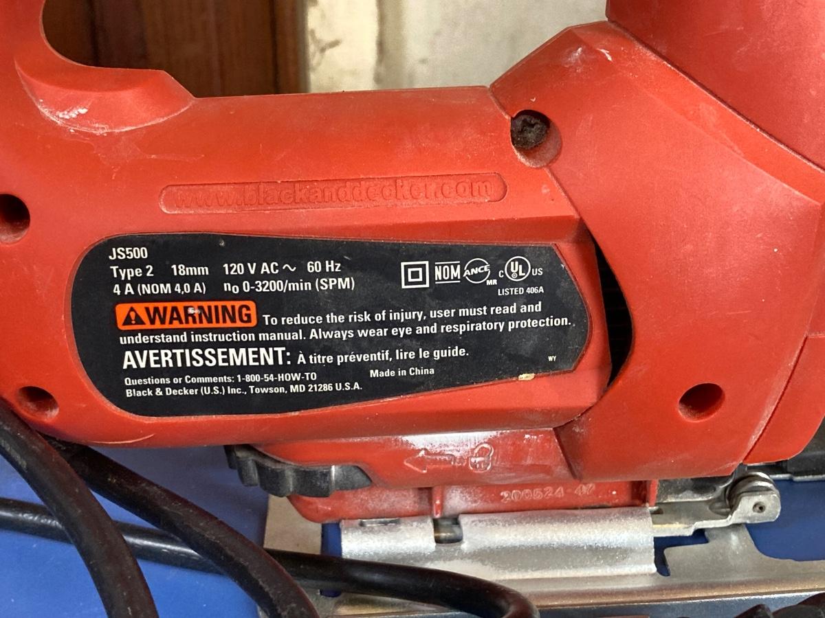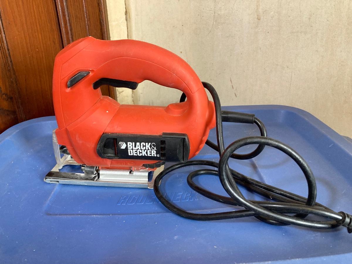 LOT 72: Sears / Craftsman Belt Sander Model # 315.117151, Black & Decker Jig Saw and Red Plastic Toolbox with Contents