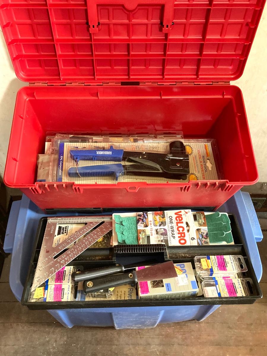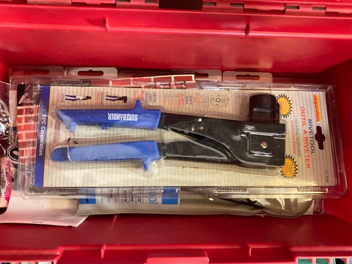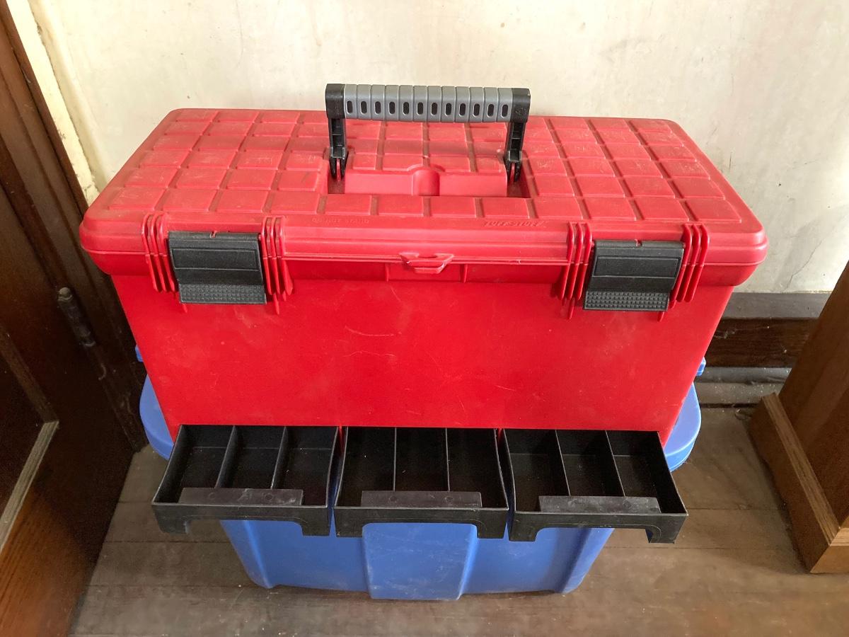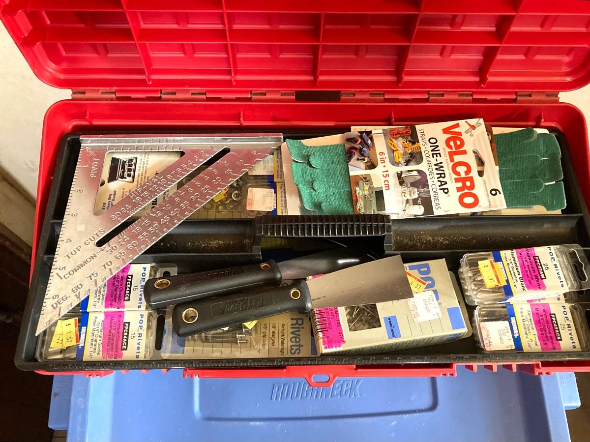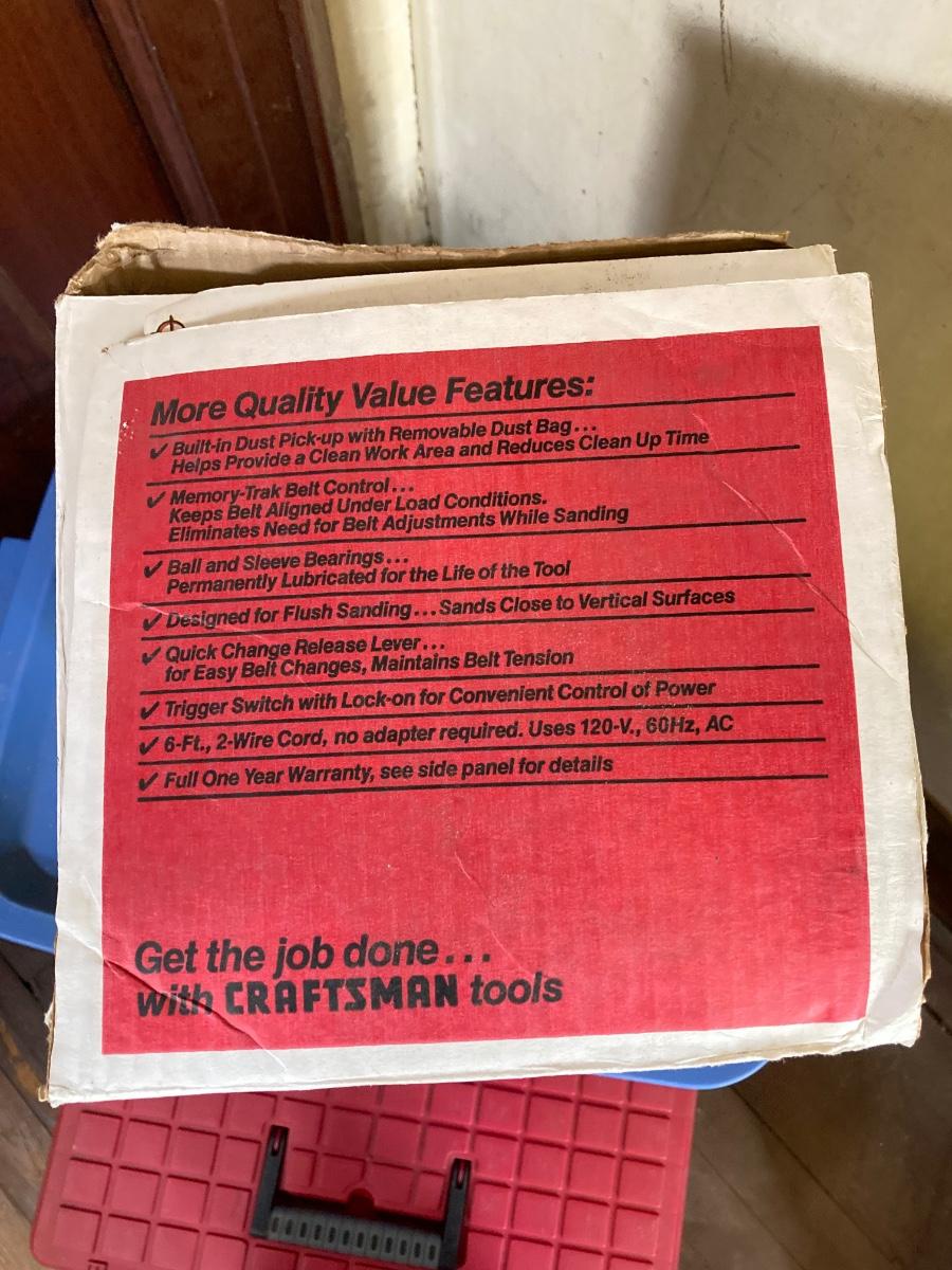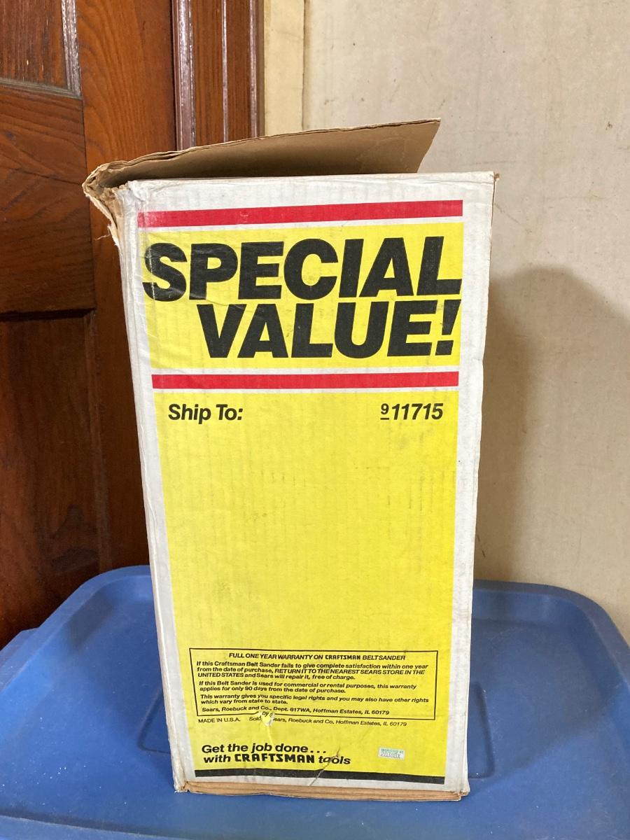 LOT 72: Sears / Craftsman Belt Sander Model # 315.117151, Black & Decker Jig Saw and Red Plastic Toolbox with Contents