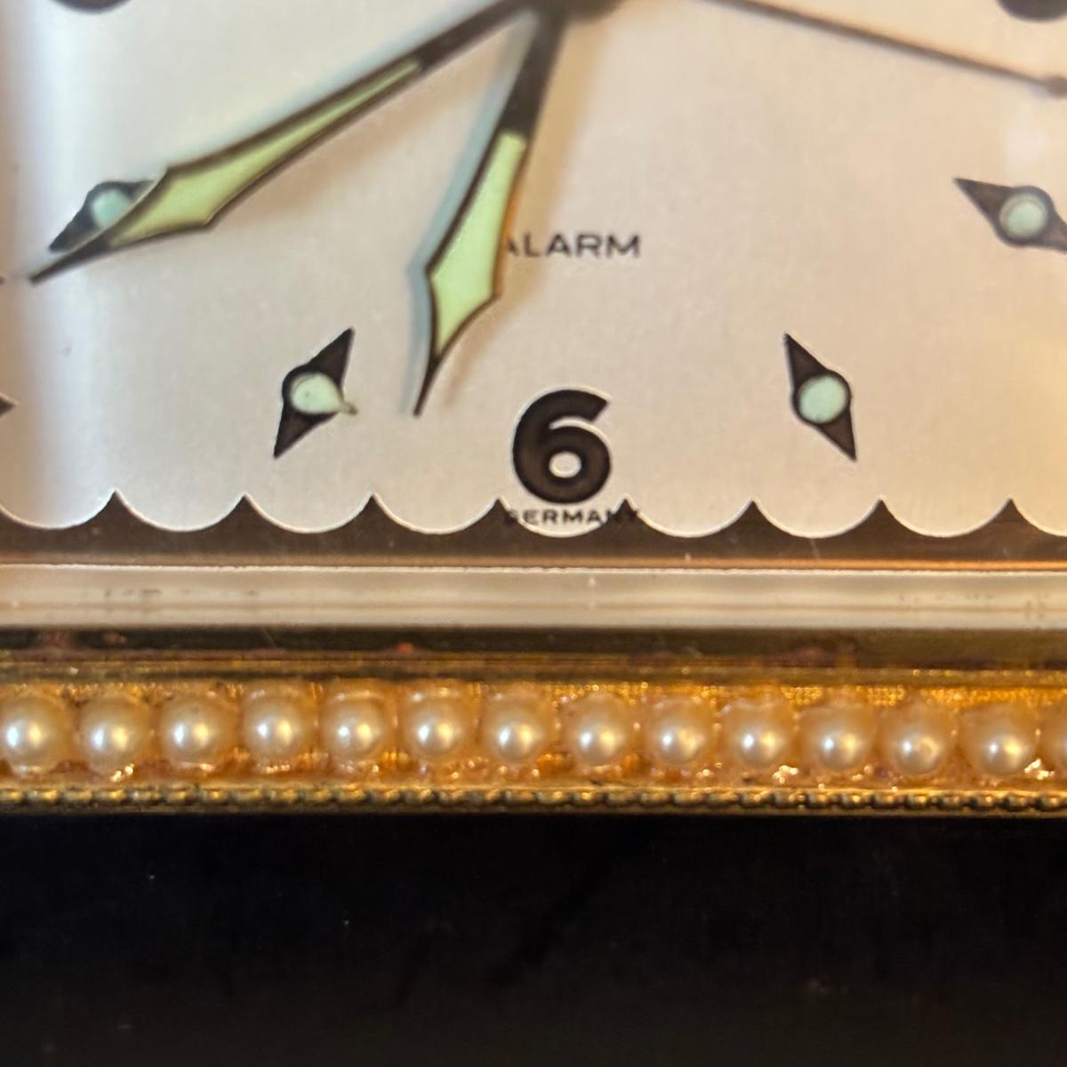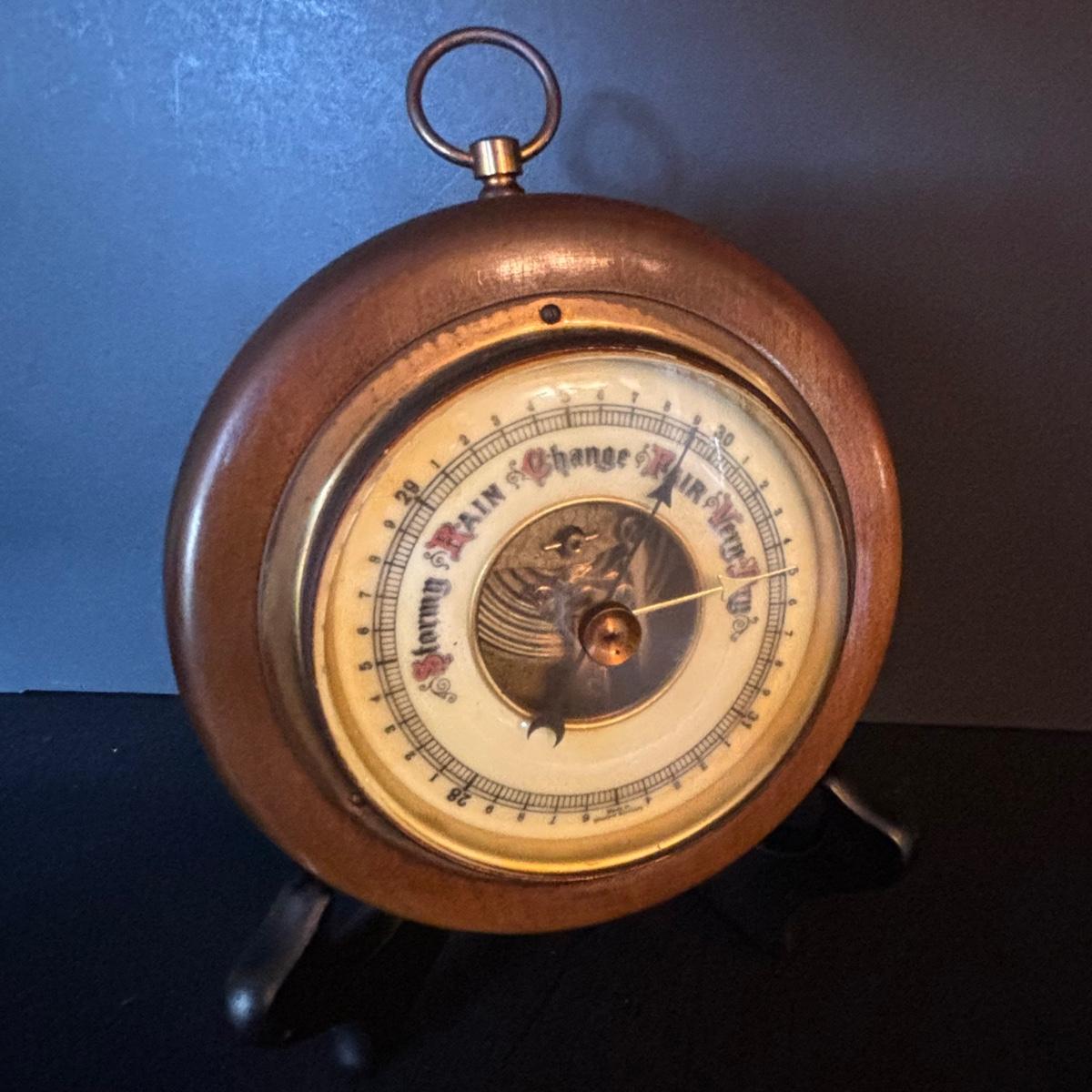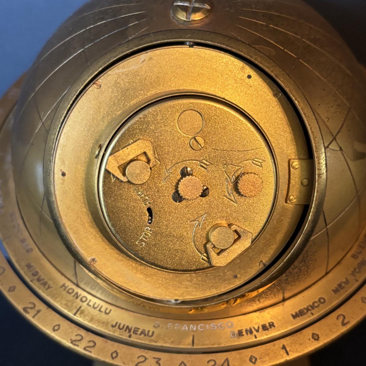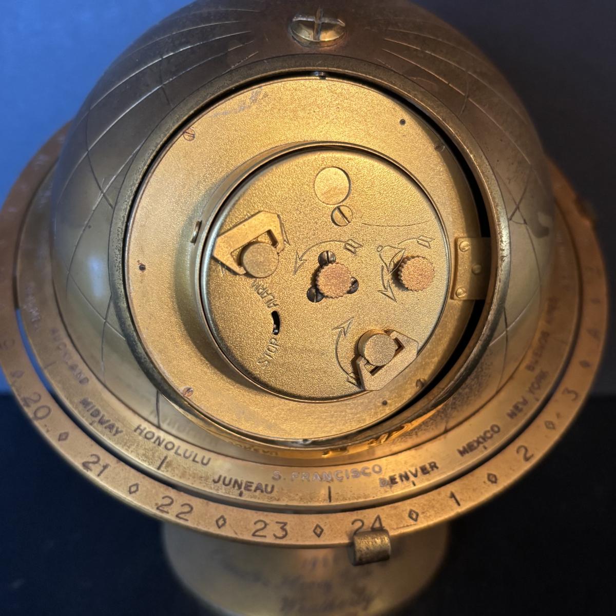 LOT 104: Vintage Imexal 18 Jewel 8-day World Clock, Florn Travel Alarm Clock, Bulova Swiss Made Alarm & Wooden Wall Barometer Made in Western Germany