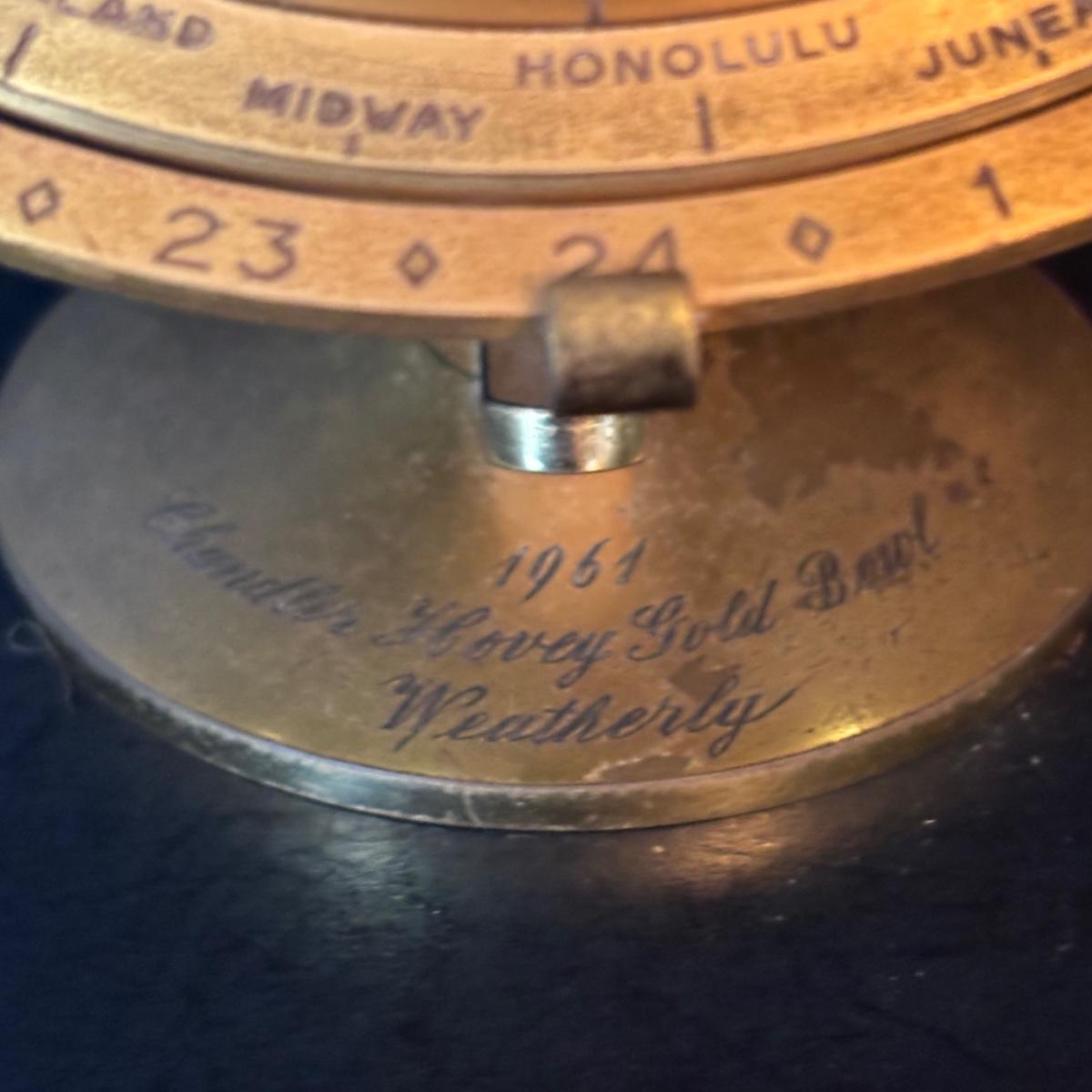Inscription on the Imexal Clock Reads: 1961 Chandler Fe Hovey Gold Bowl Weatherly.