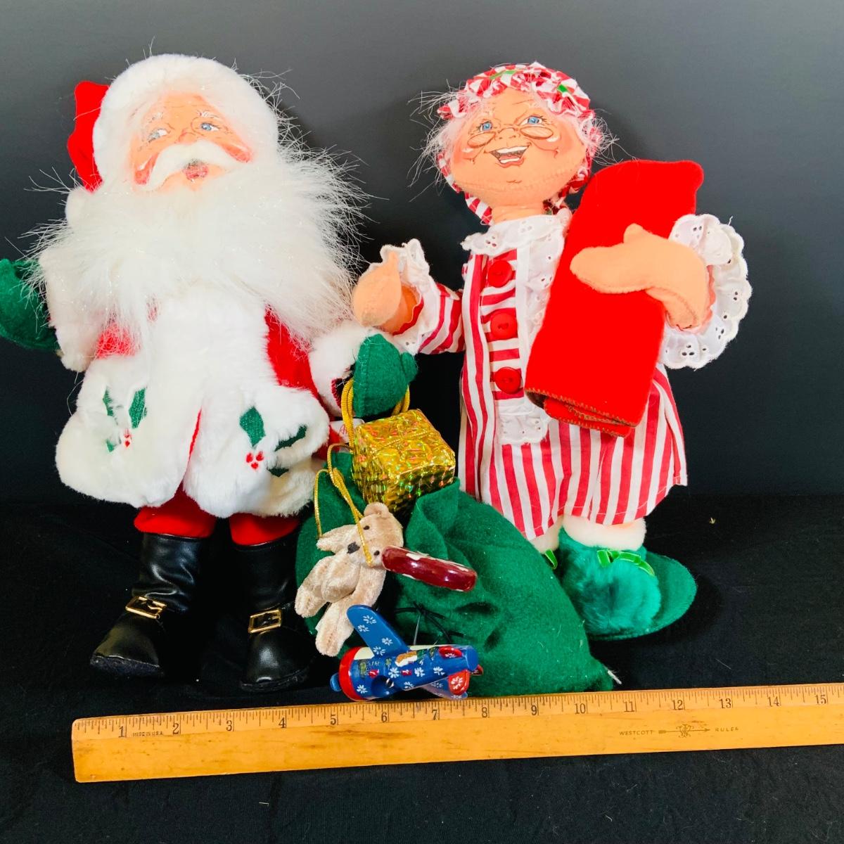LOT 166: Annalee Holiday Dolls Santa Claus with a Bag Full of Toys and Mrs Claus