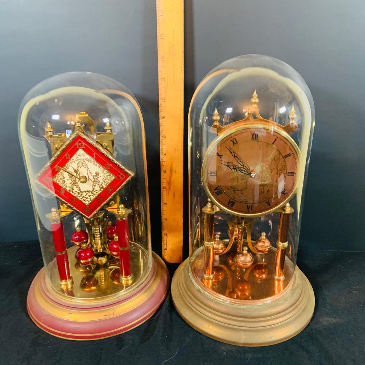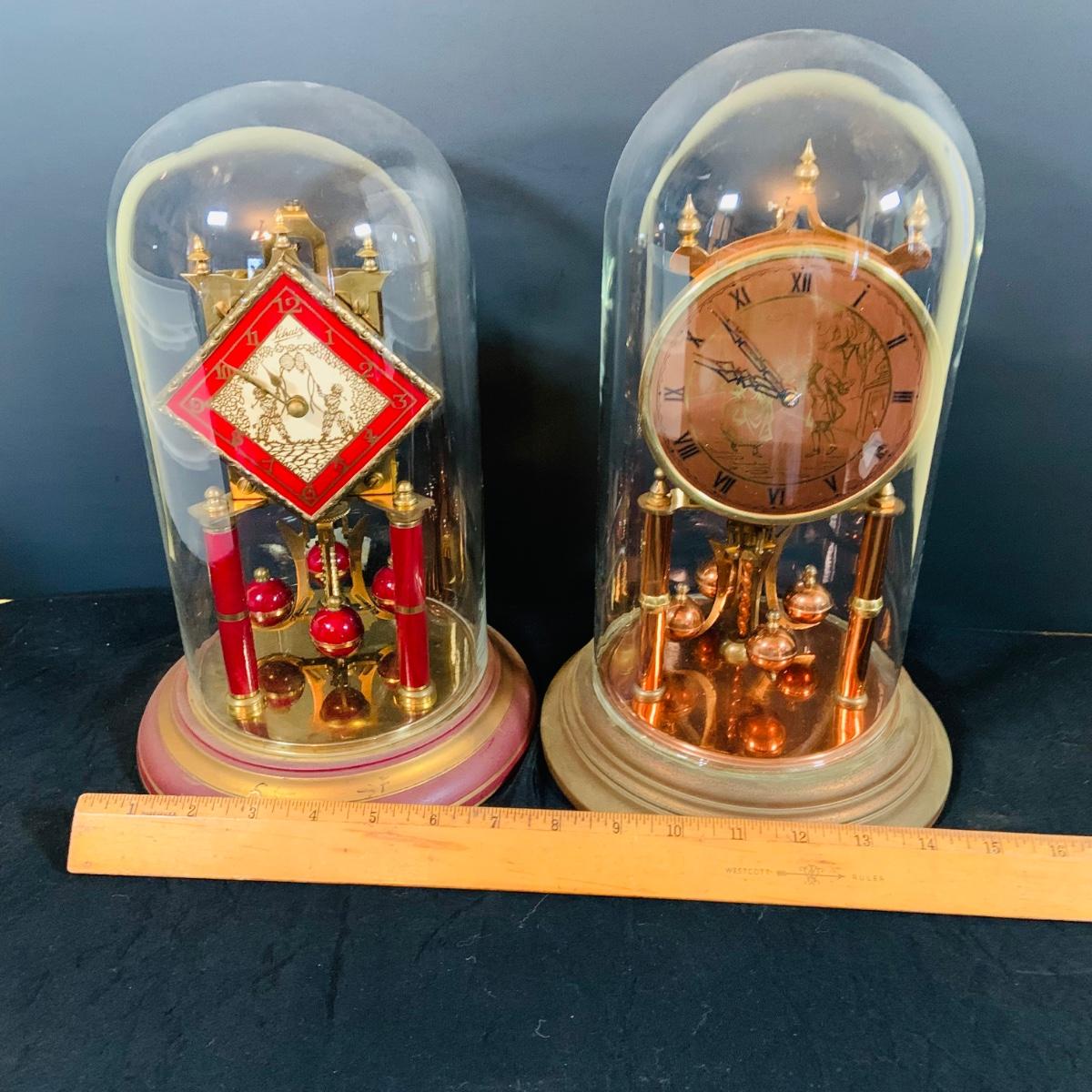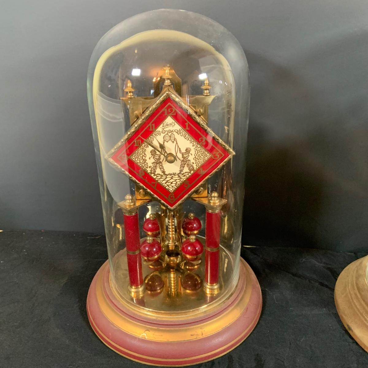 LOT 168; Collection of Two (2) Glass Domed Anniversary Clocks - Red Diamond Faced Clock by Schatz and Cooper Colored Clocky by Forestville Clock Co