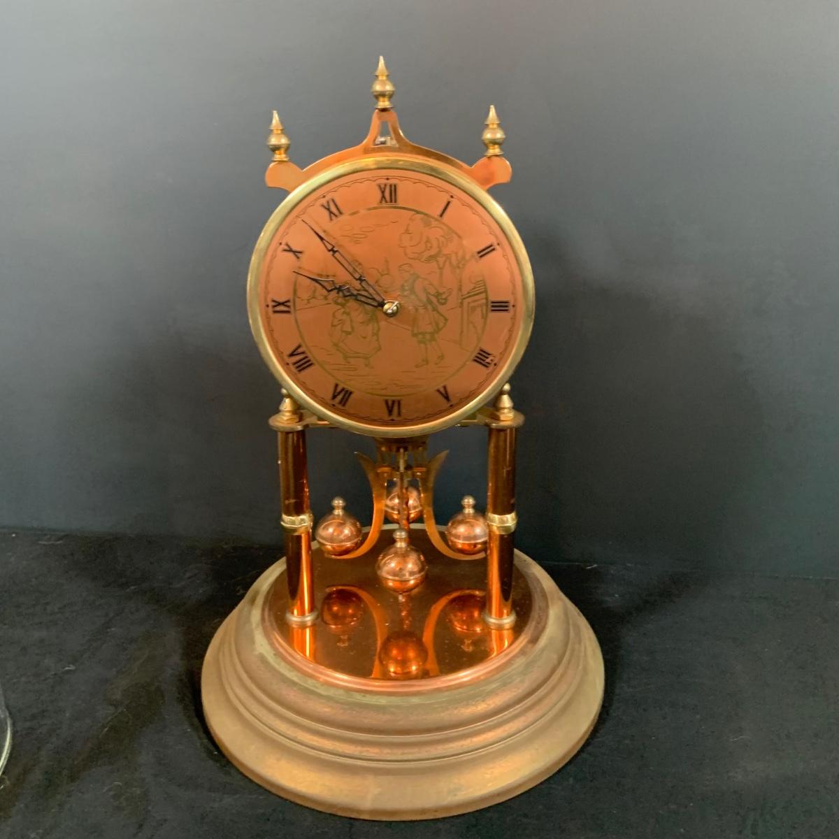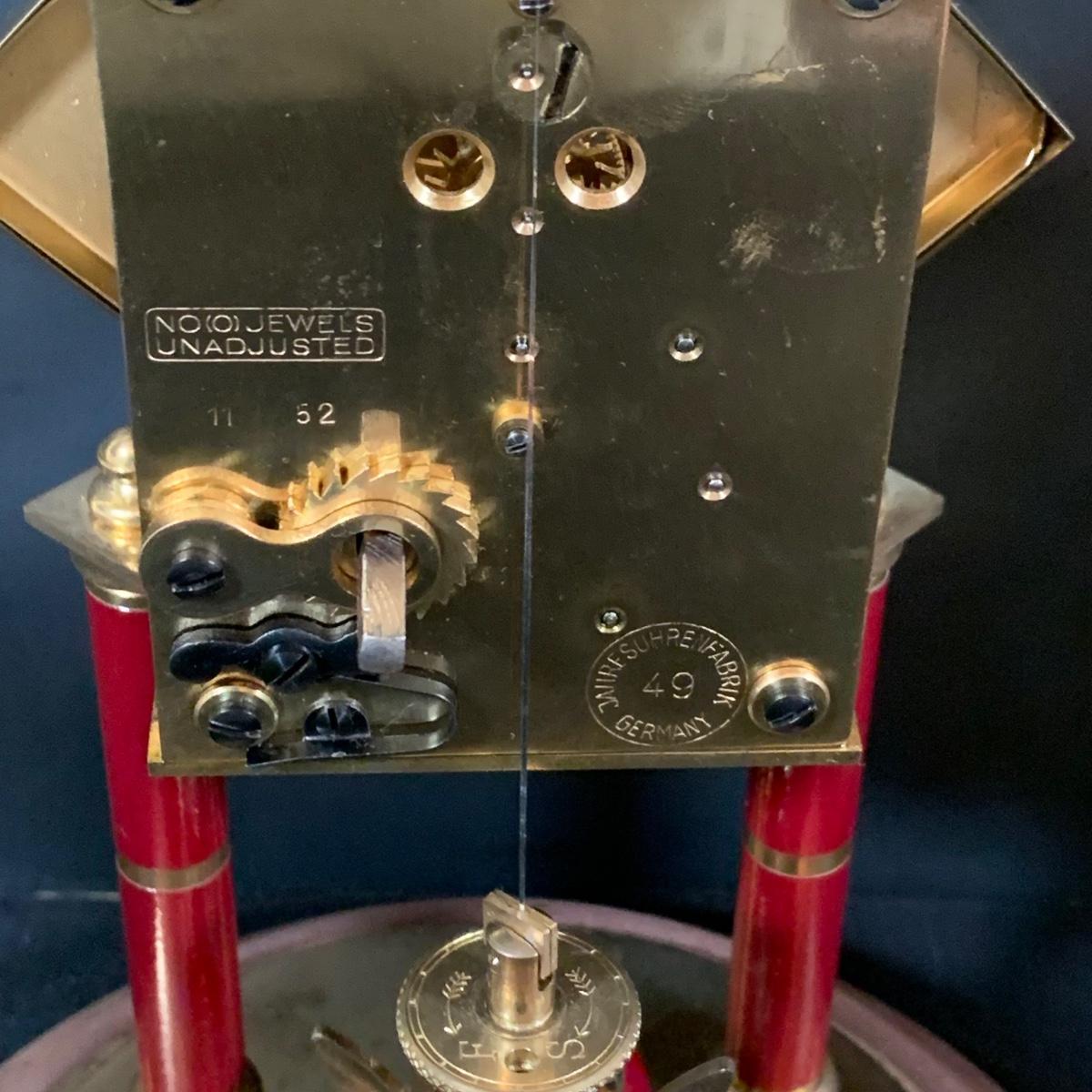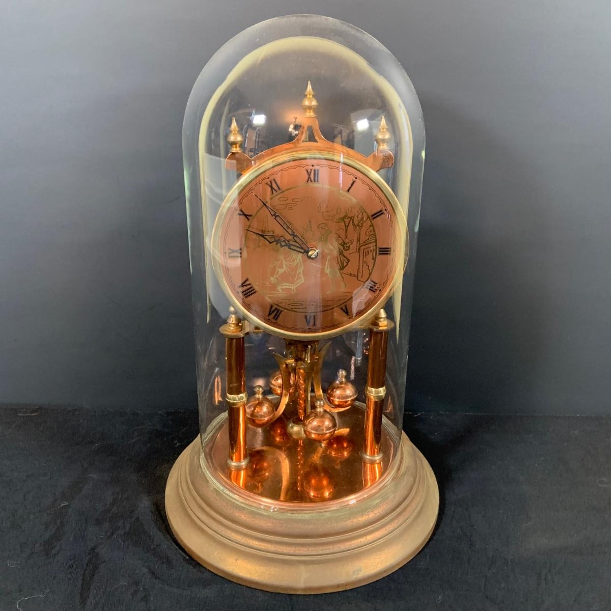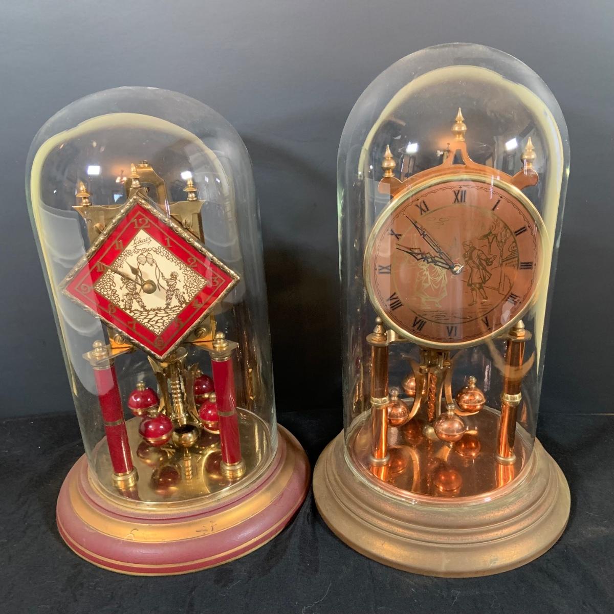 LOT 168; Collection of Two (2) Glass Domed Anniversary Clocks - Red Diamond Faced Clock by Schatz and Cooper Colored Clocky by Forestville Clock Co