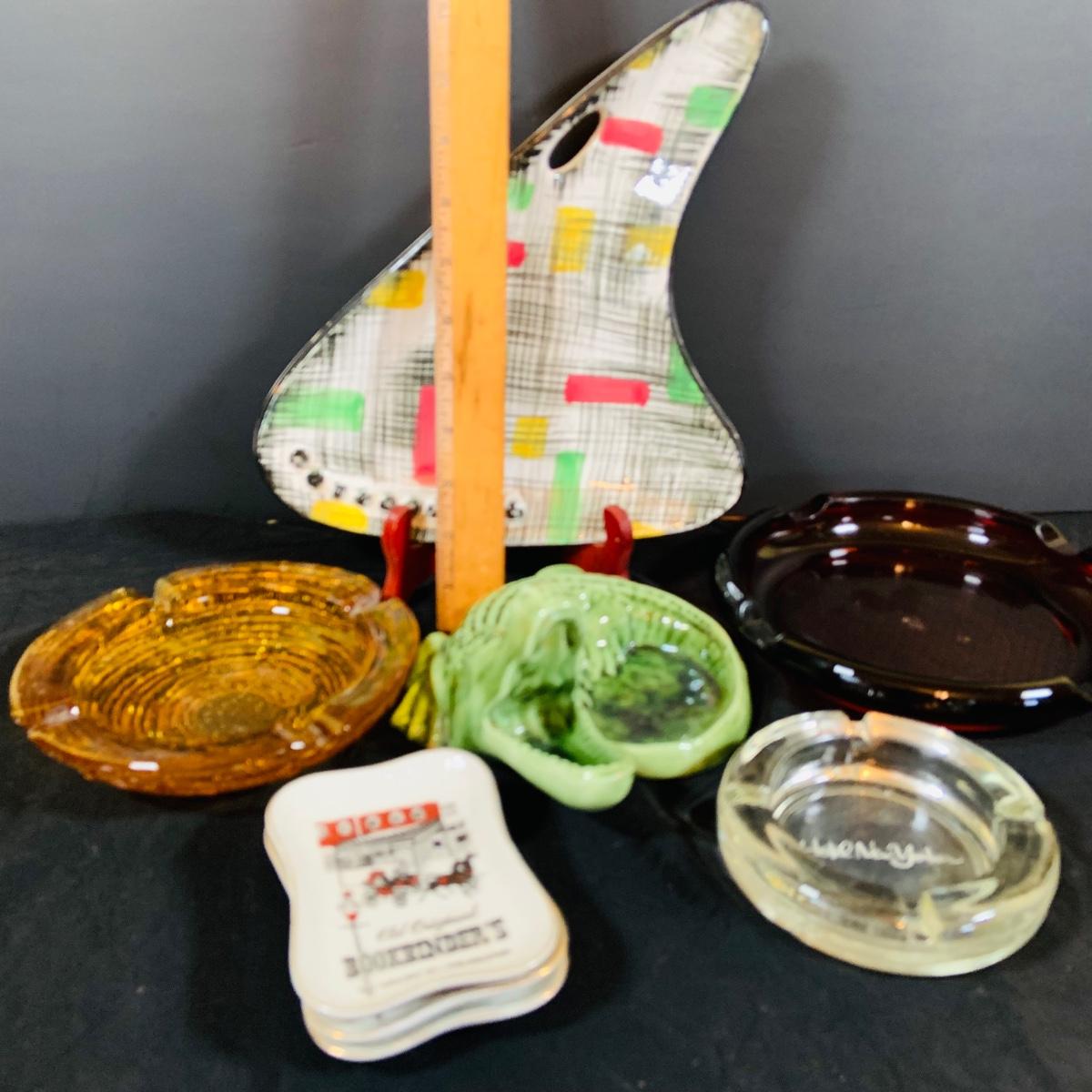 LOT 187: Collection of Vintage Ashtrays Including Amber Glass, Alligator, MCM Ceramic and More