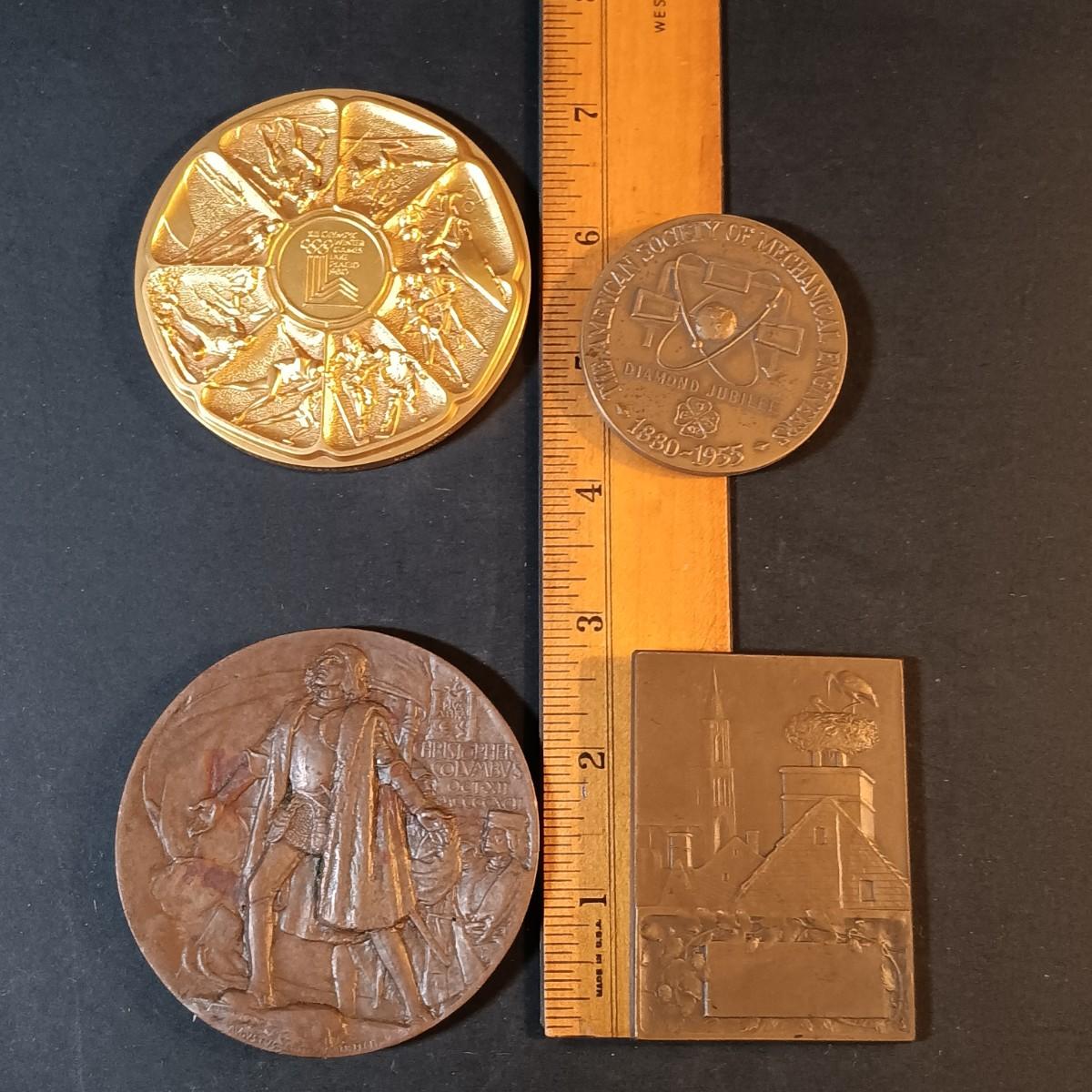 LOT 213: Set of (6) Bronze Medals- Alsace Medal, 1955 American Society of Engineers, 1980 Winter Olympics & More
