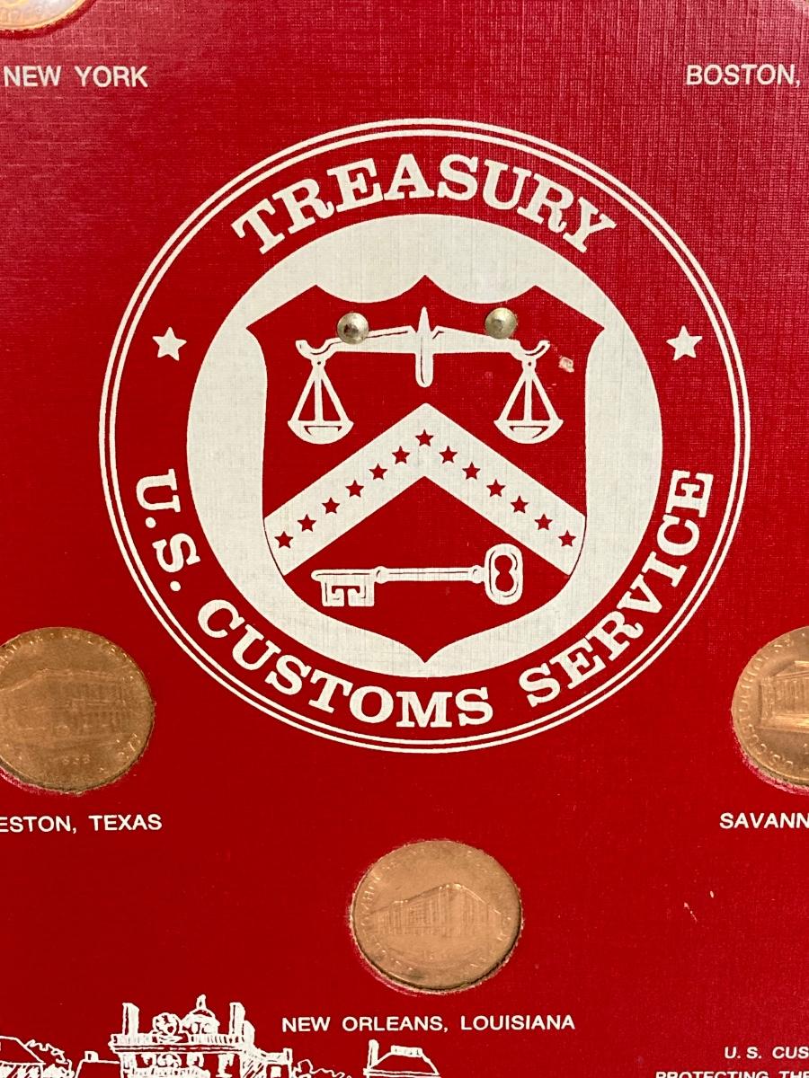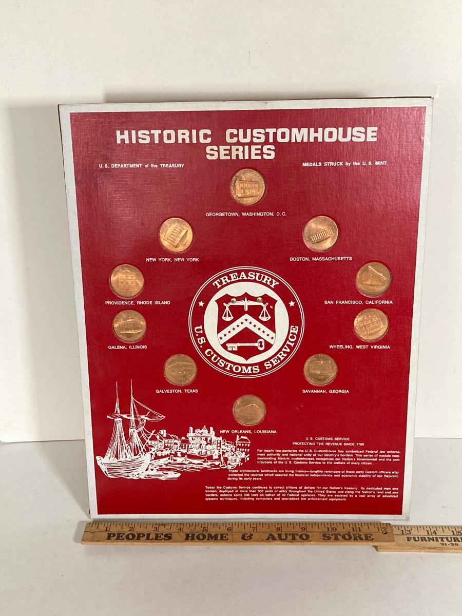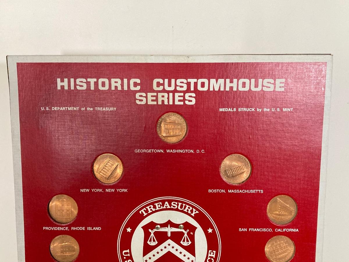 LOT 264: Vintage Historic Customhouse Series - Treasury U.S. Customs Service Coins with Display Board