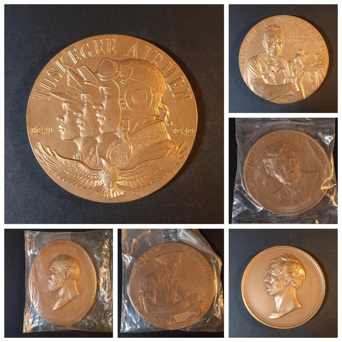 LOT 266: Set of (6) Bronze Medals- Tuskagee Airmen, Norman Borlaug, Kenneth Taylor & More