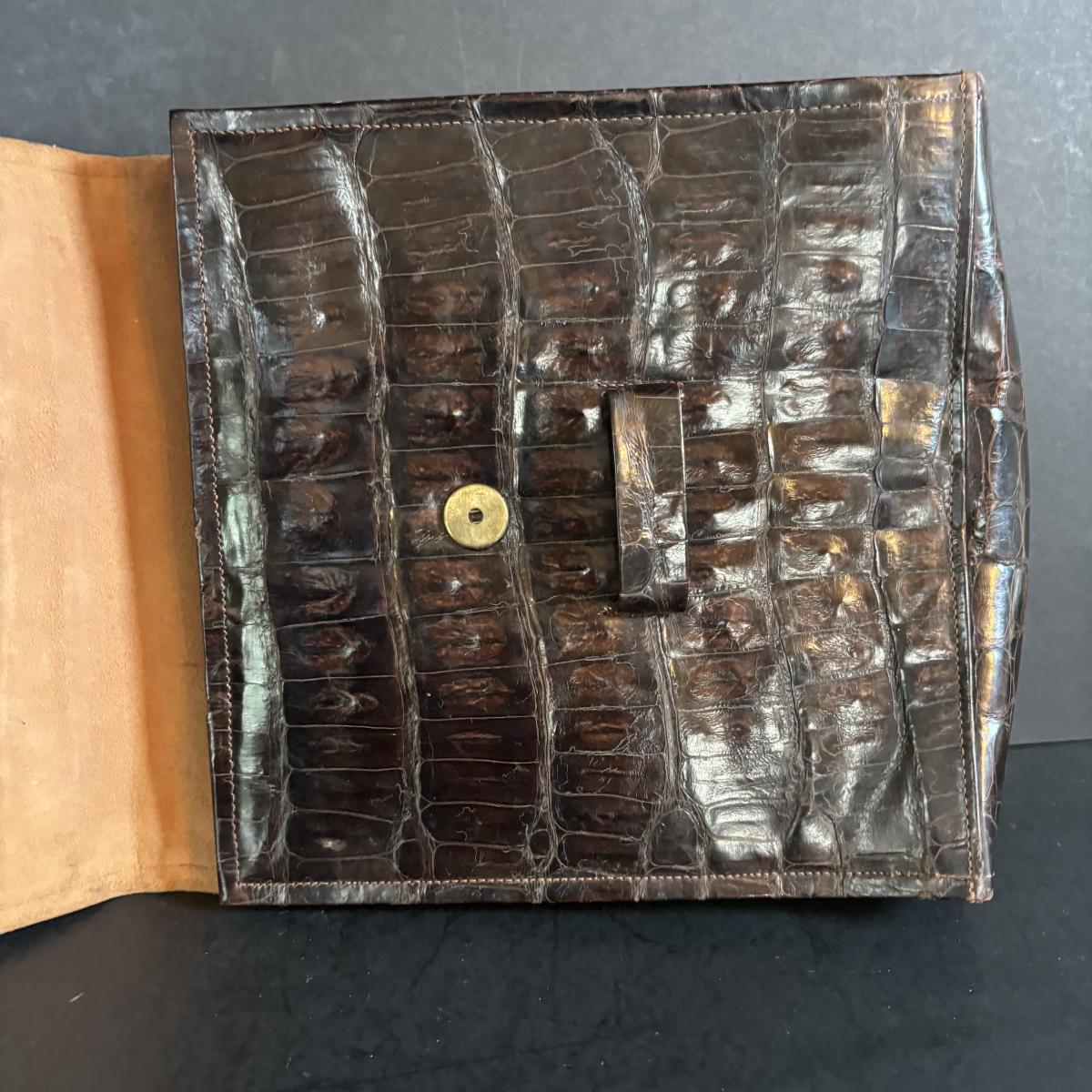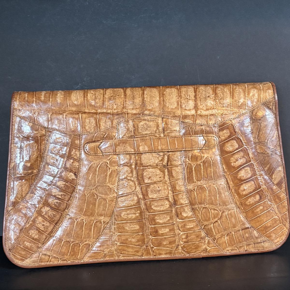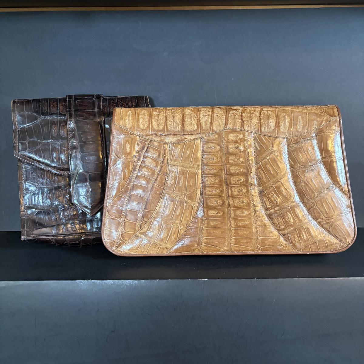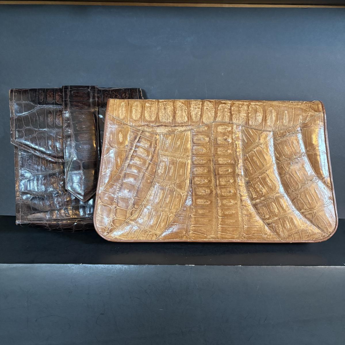 LOT 274: Unmarked Vintage Light Tan Alligator Clutch & Brown Clutch