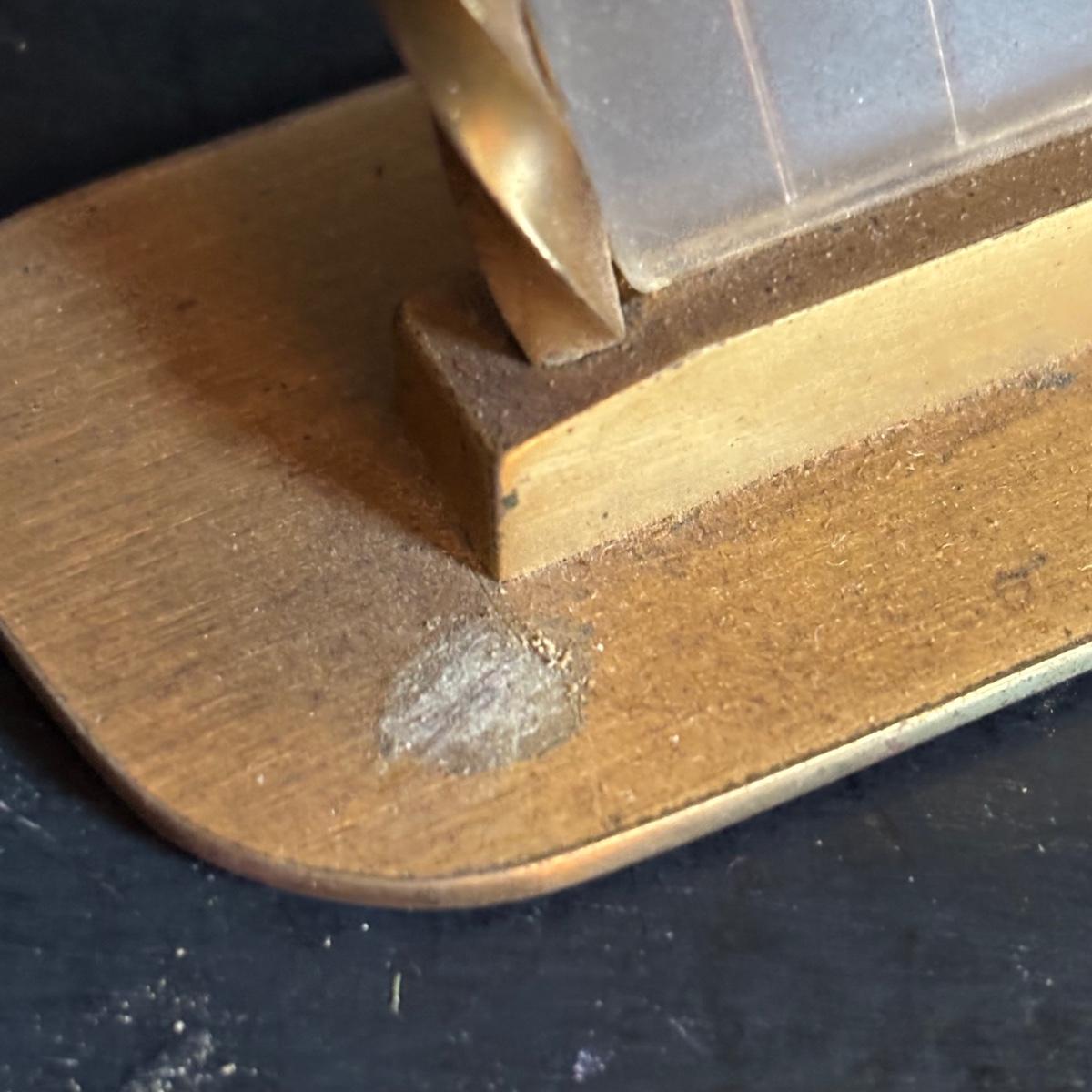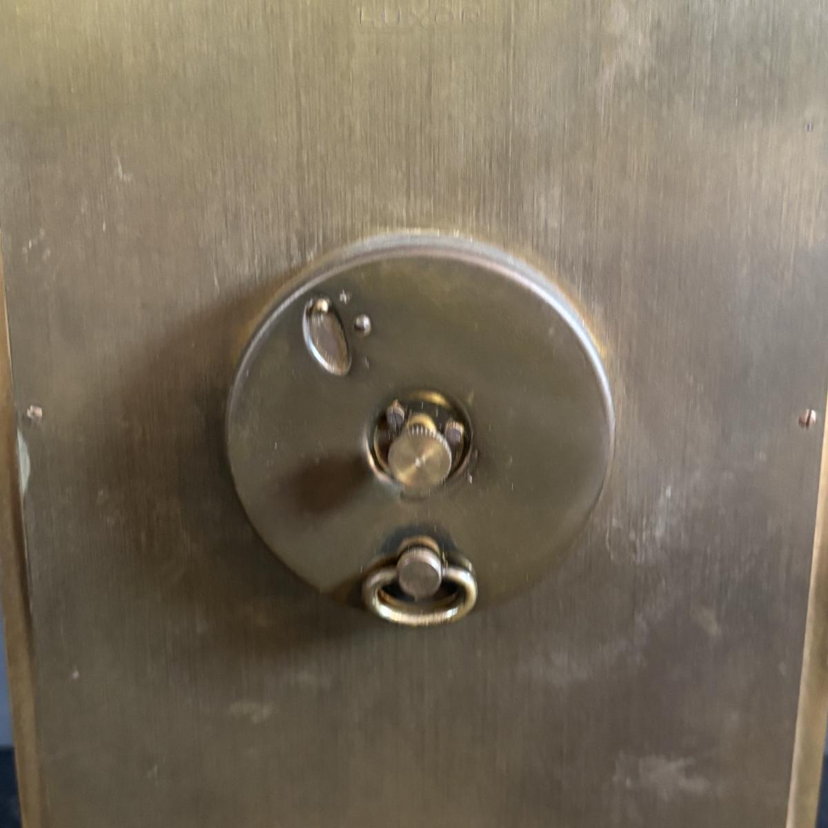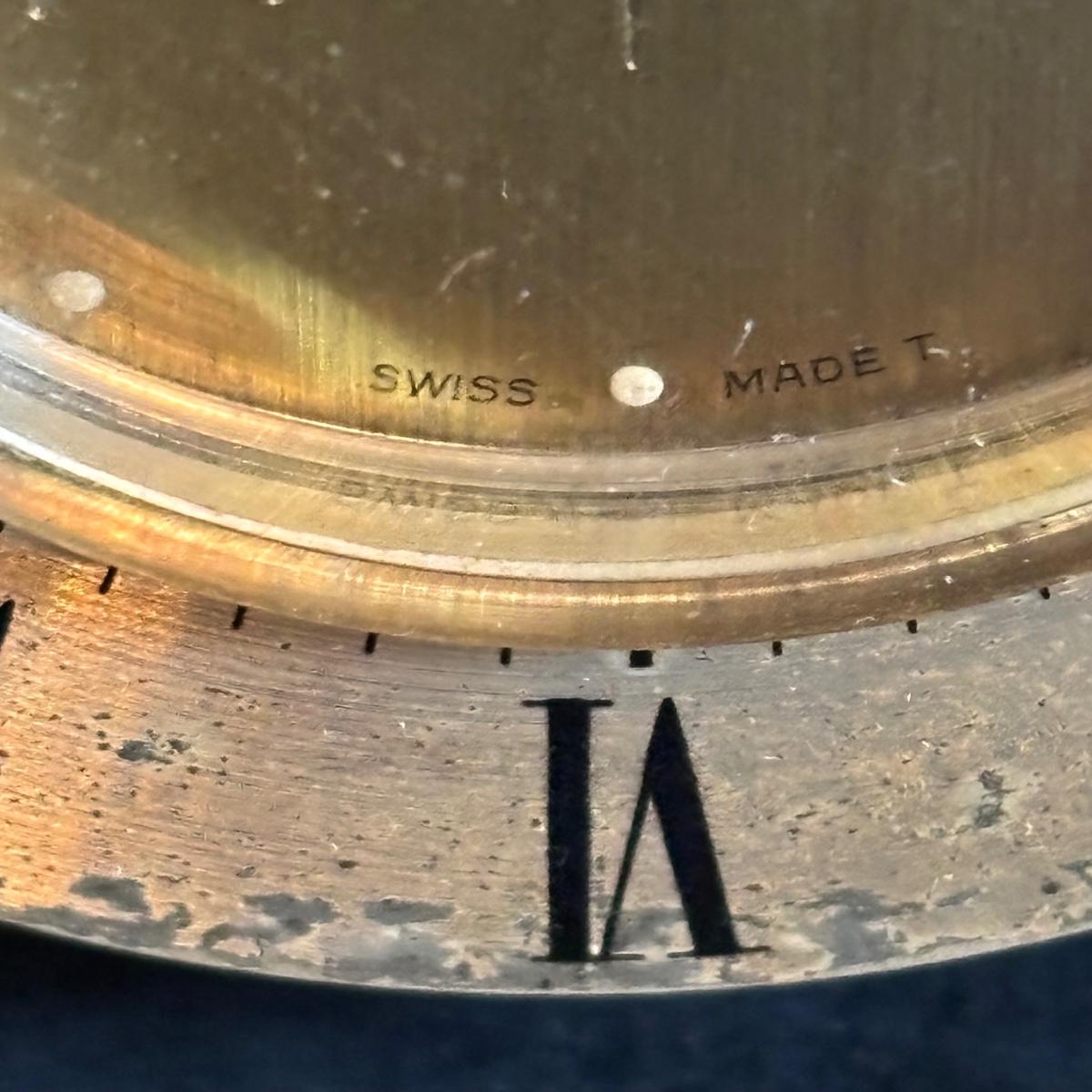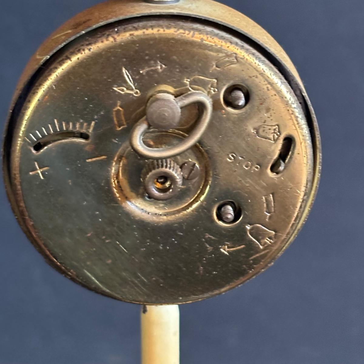 LOT 275: Vintage Linden Lucite Harp Alarm Clock, Luxor Desk Clock w/Scenic Dial, Brass Swiza 8-Day Travel Alarm Clock, & Kaiser Lamp Post Clock