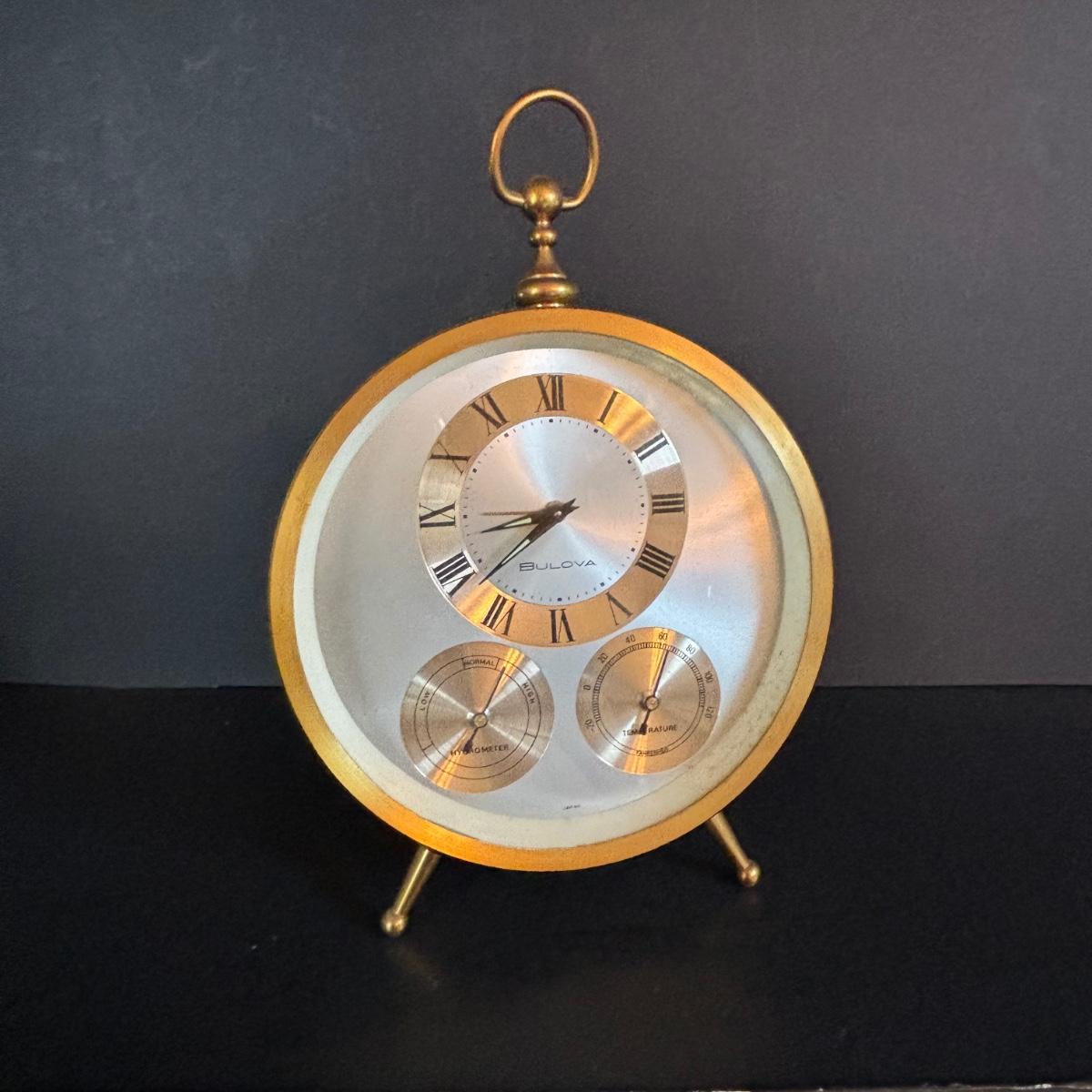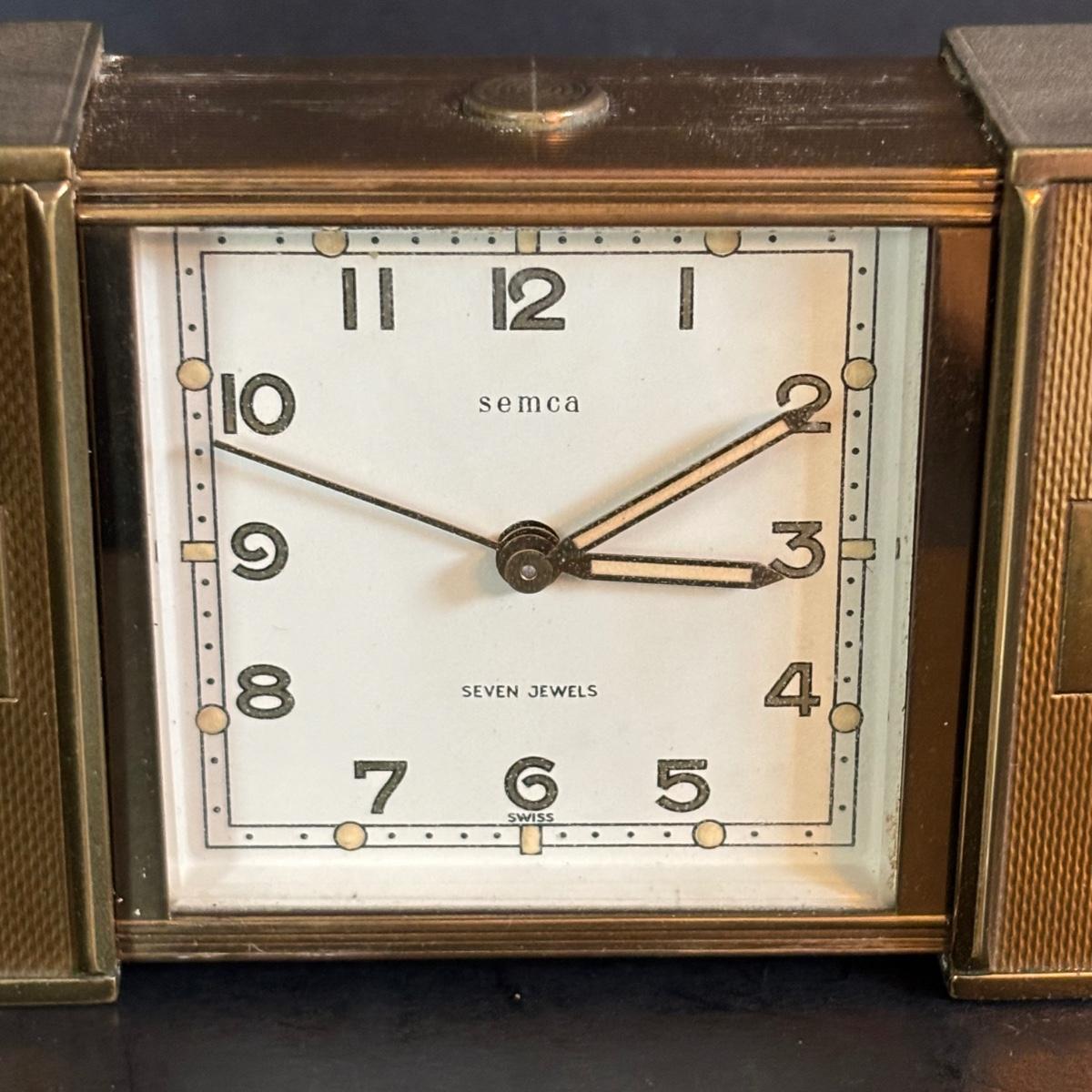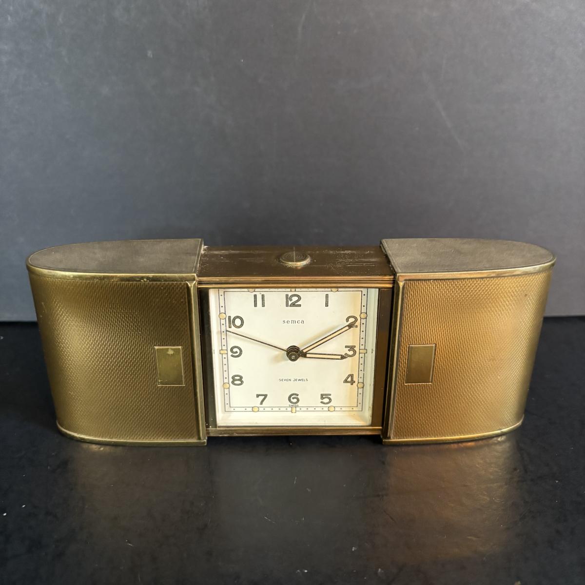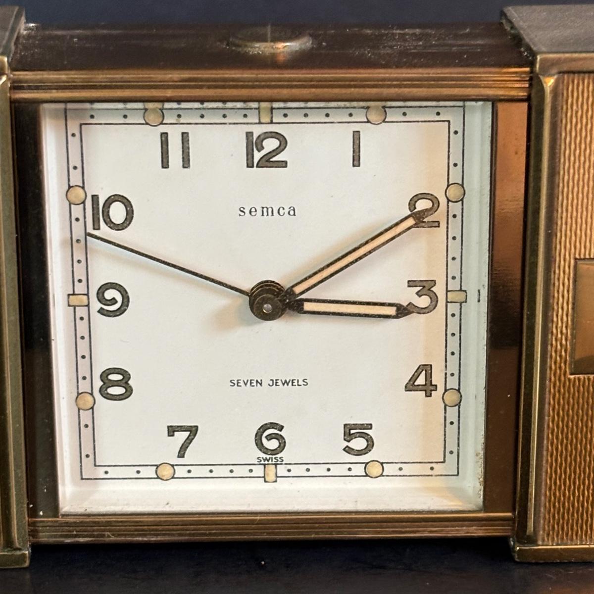 LOT 276: Vintage Art Deco Kundo Alarm Clock, Brass Semco 7 Jewels Travel Alarm Clock, Mid- Century Wind-Up Clock-Thermometer-Hydrometer & Brass Barometer
