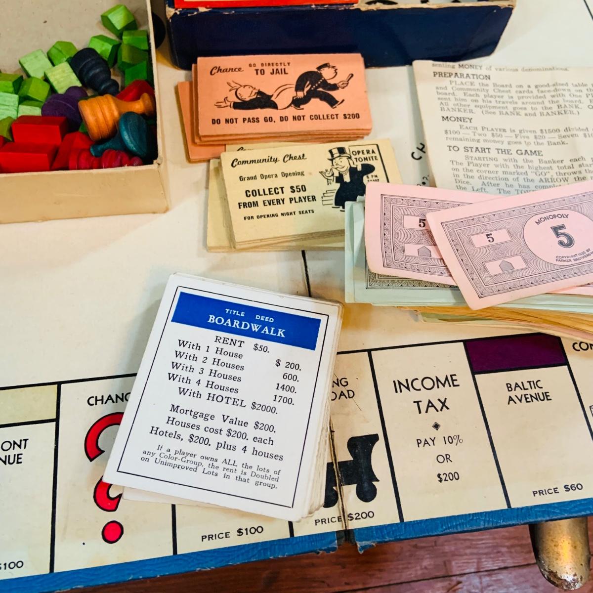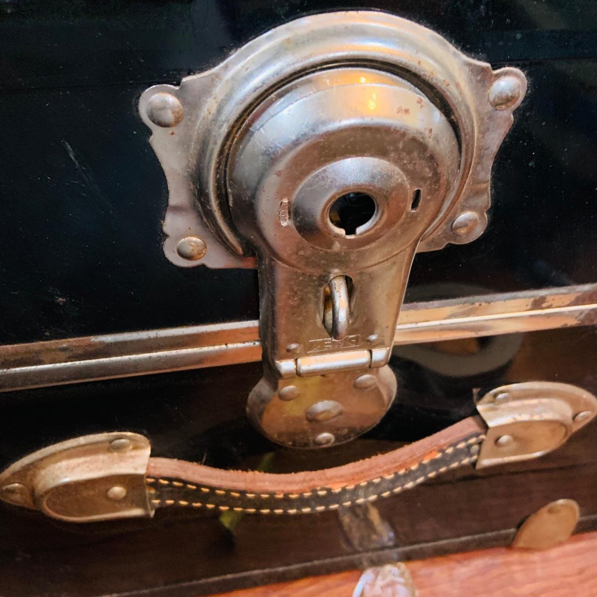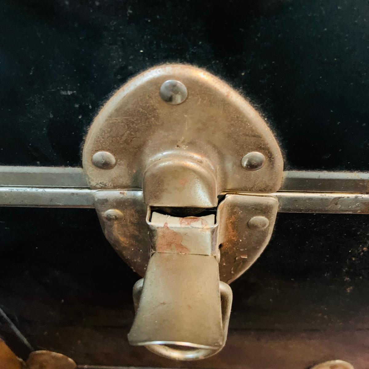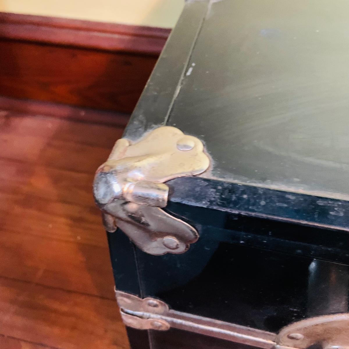 LOT 291: Black Steamer Trunk Loaded with Vintage Toys and Books Including Monopoly, Cribbage and More