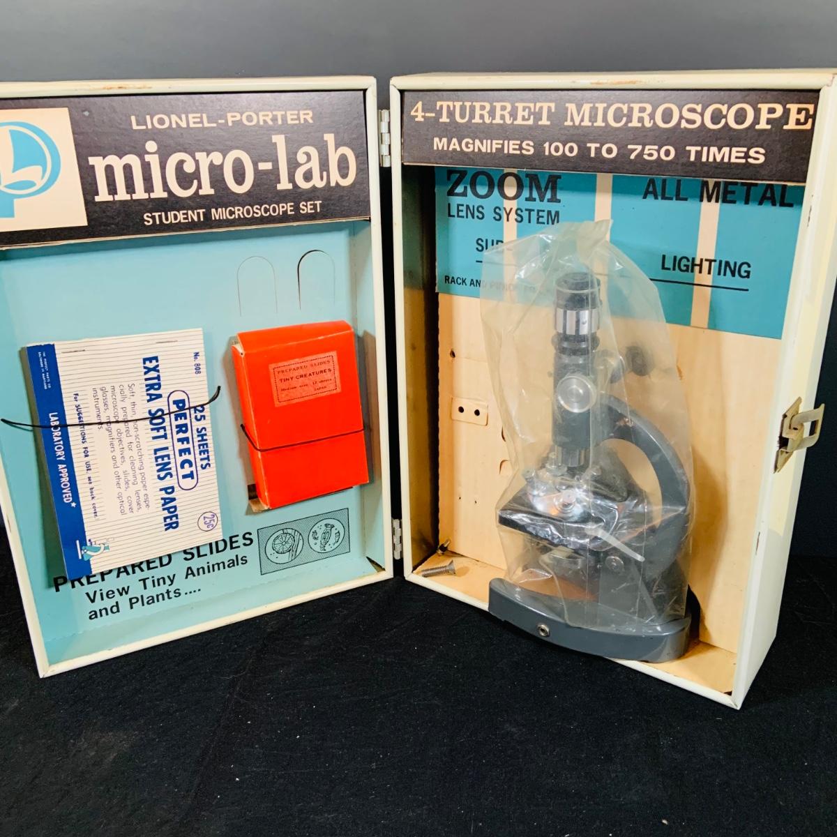 LOT 304: Lionel-Porter Micro-Lab Student Microscope Set with Slides and Metal Case