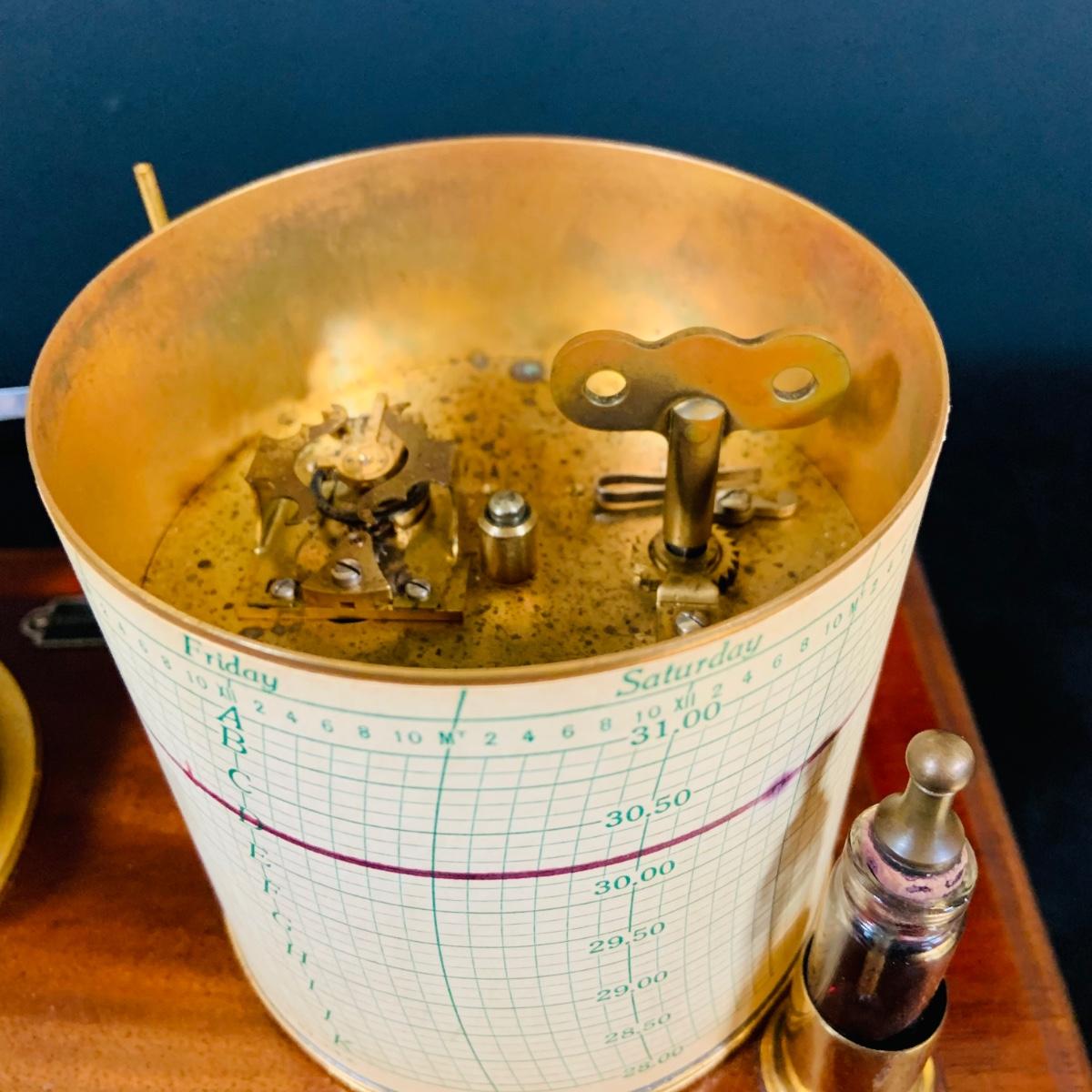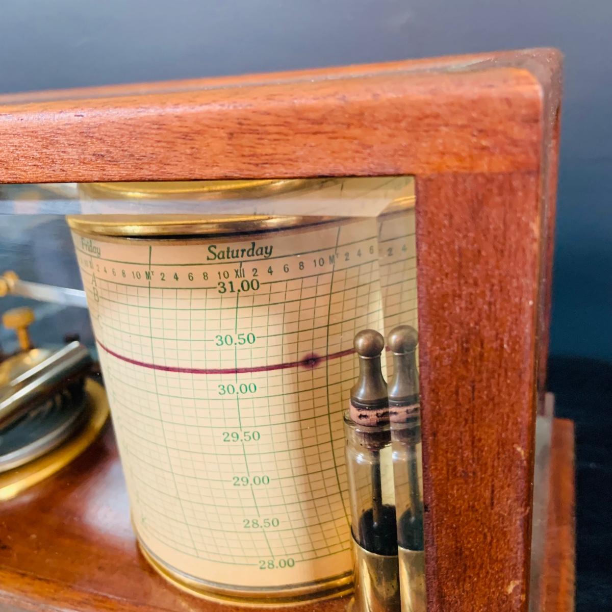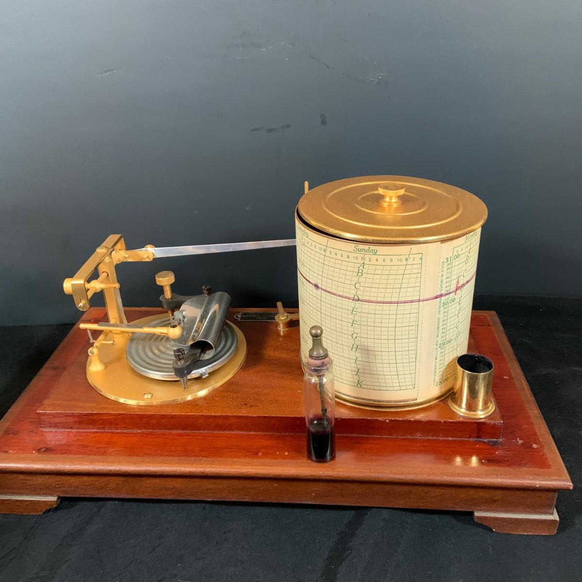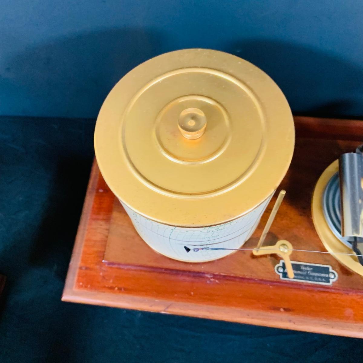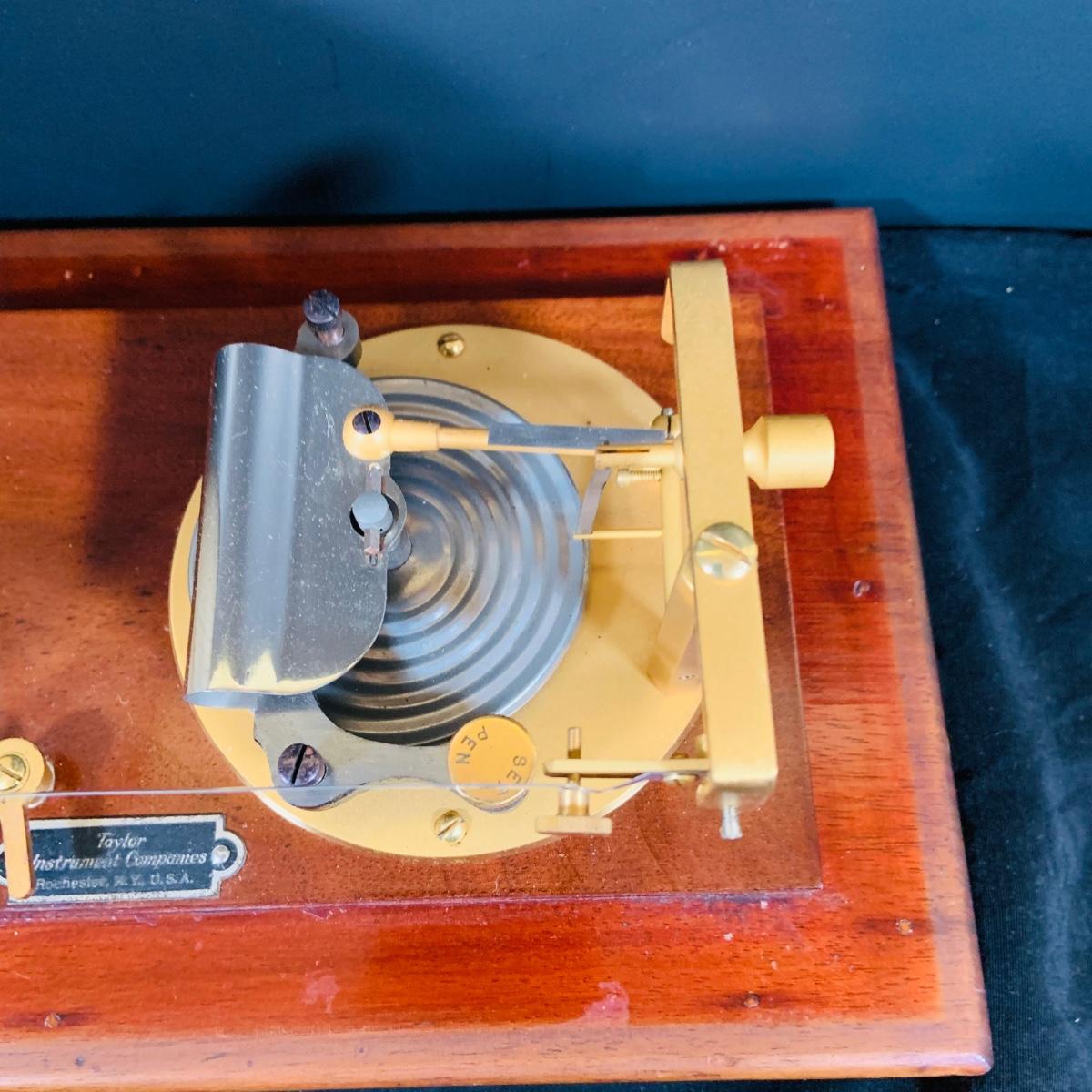 LOT 298; Antique Taylor Instruments Barograph Recording Barometer with Wood and Glass Case, Paper Ink and More
